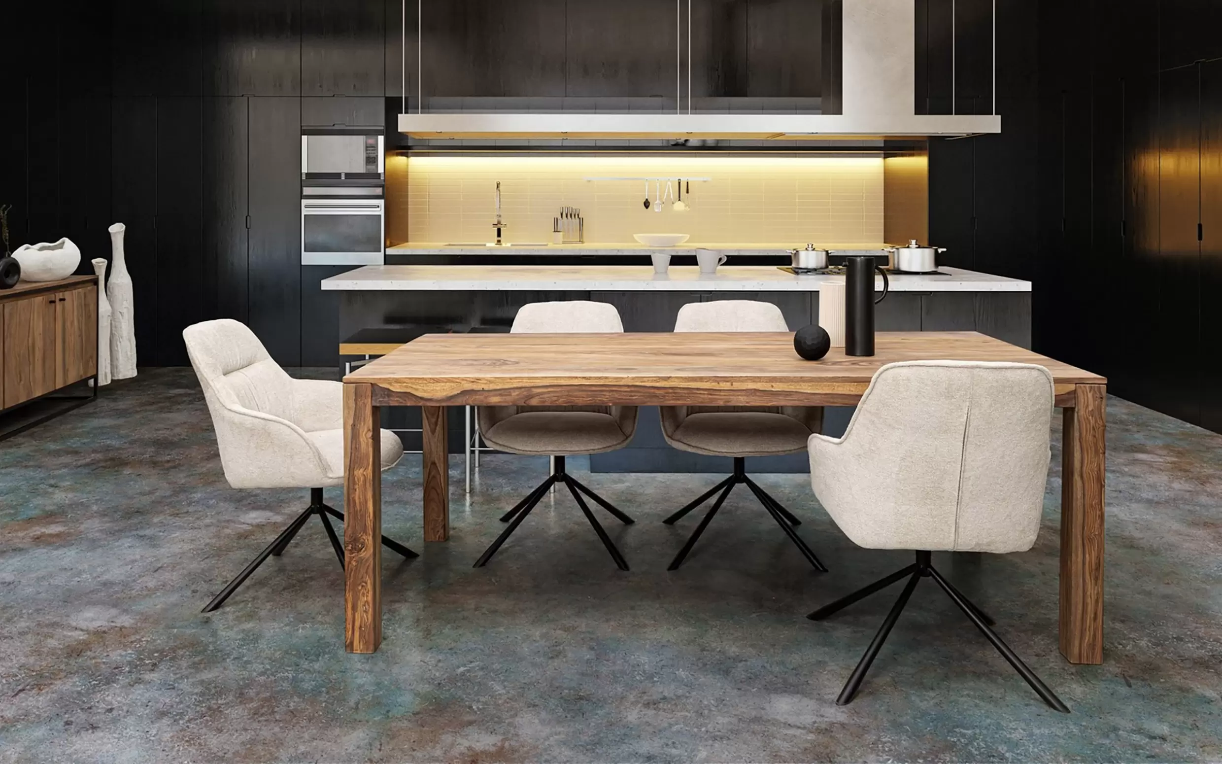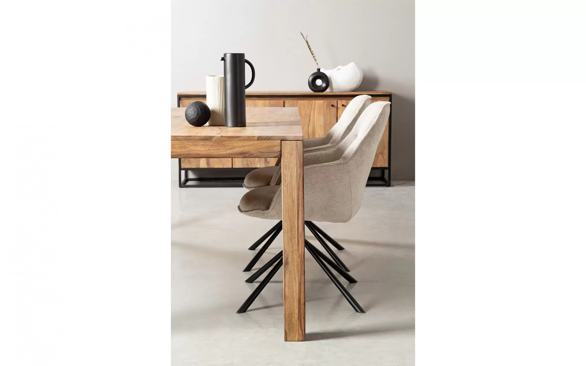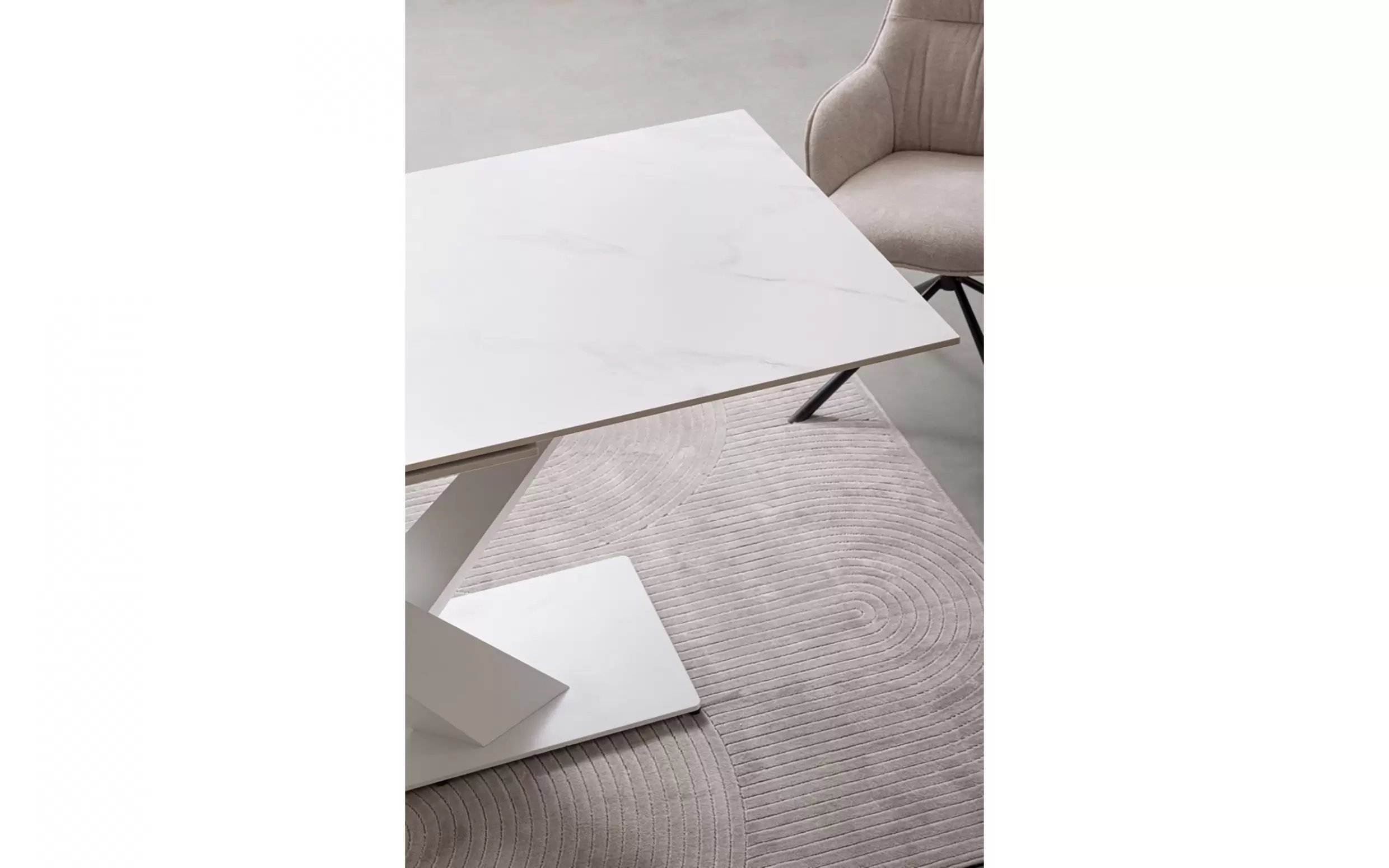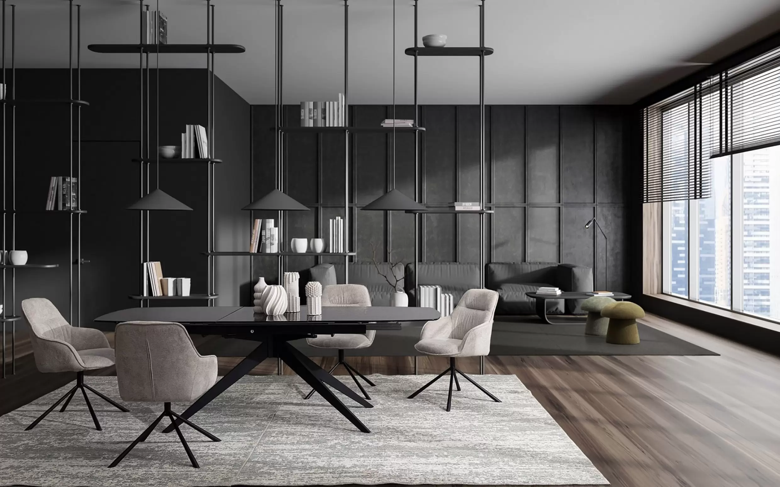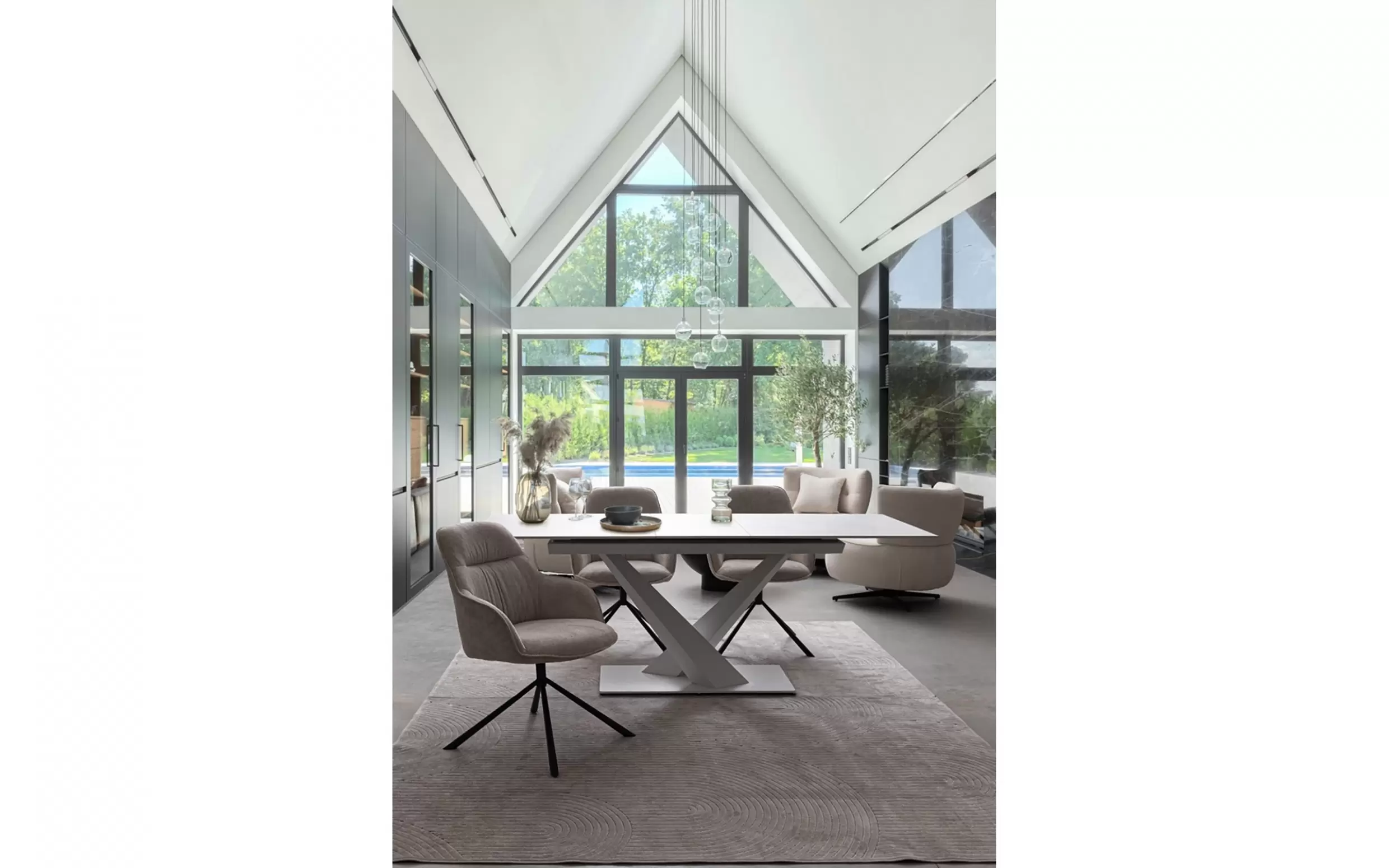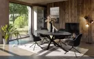 Nogi ze stali malowanej proszkowo żywicą epoksydową – odporne na korozję i zarysowania. Tapicerka z poliestru (wariant Avorio i Dark) – miękka, trwała, łatwa w pielęgnacji. Tapicerka z ekoskóry PU (wariant Grigio) – elegancka, odporna na wilgoć i zabrudzenia. Wypełnienie z pianki poliuretanowej – sprężyste i komfortowe.