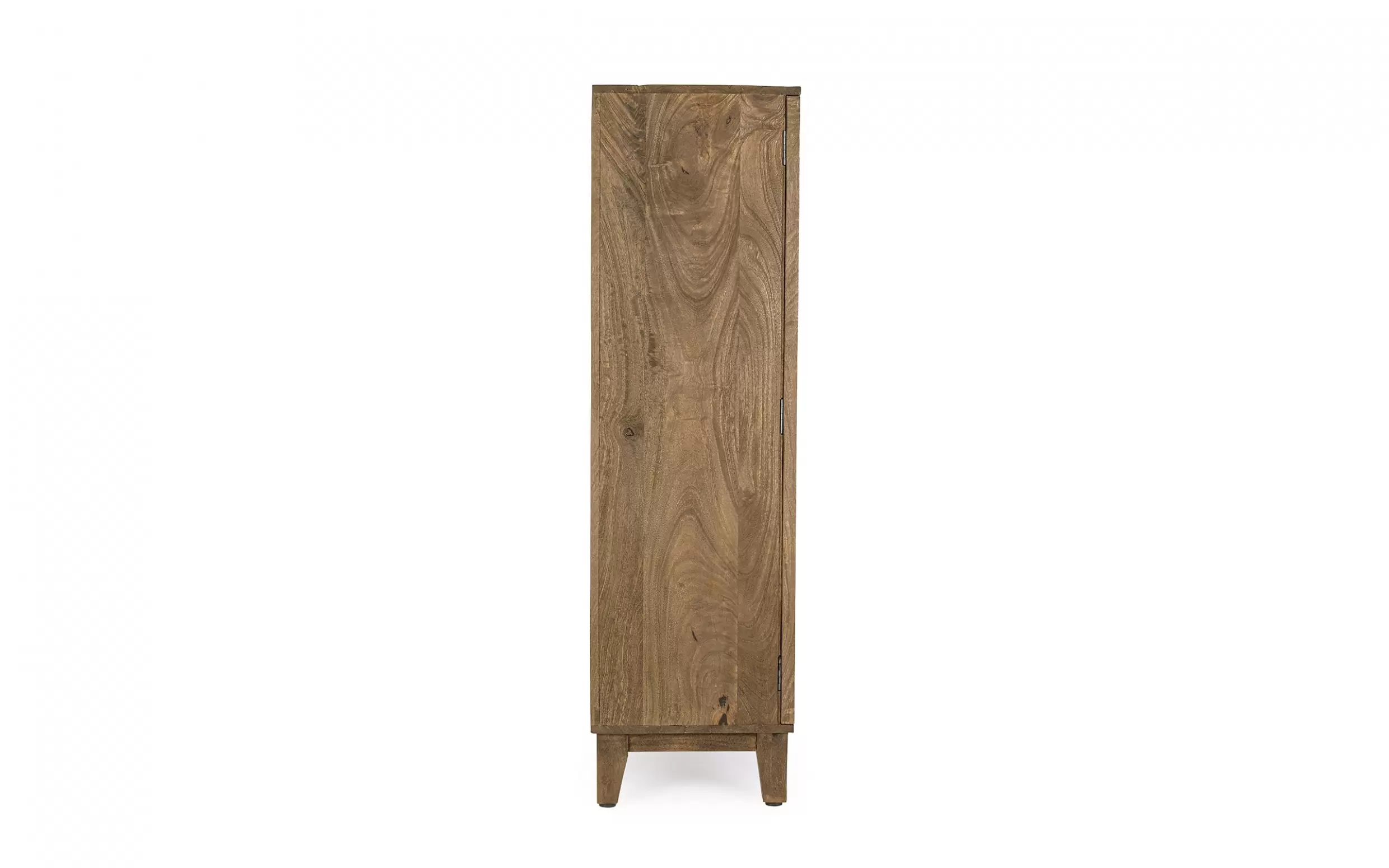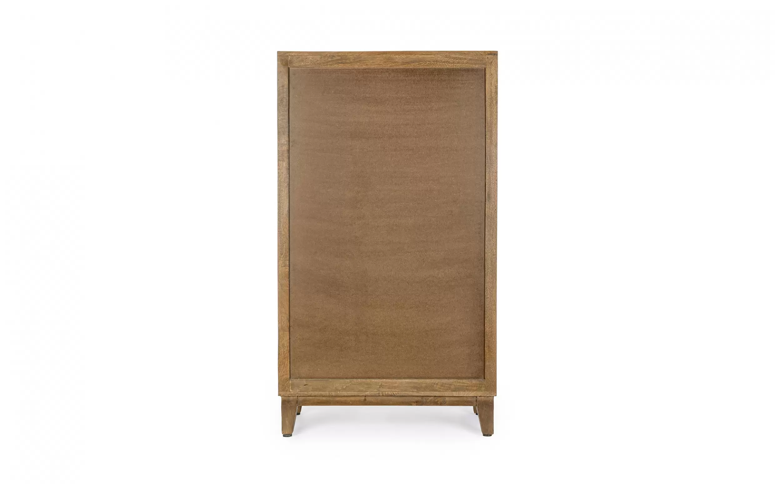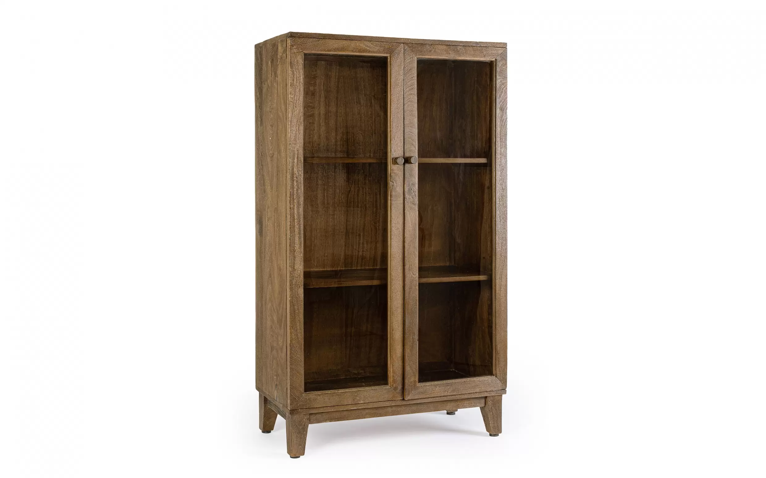 Witryna REMINGTON to stylowy mebel, który łączy naturalne drewno mango z eleganckim szkłem w bursztynowym odcieniu. Konstrukcja została wykończona lakierem nitrocelulozowym, co podkreśla piękno drewna i zwiększa jego trwałość. Wyposażona w 2 drzwi z przeszklonymi frontami, świetnie sprawdzi się jako miejsce do przechowywania i ekspozycji porcelany, szkła lub dekoracji. Jej wysokość 140 cm czyni ją idealnym kompromisem między niską a wysoką witryną.