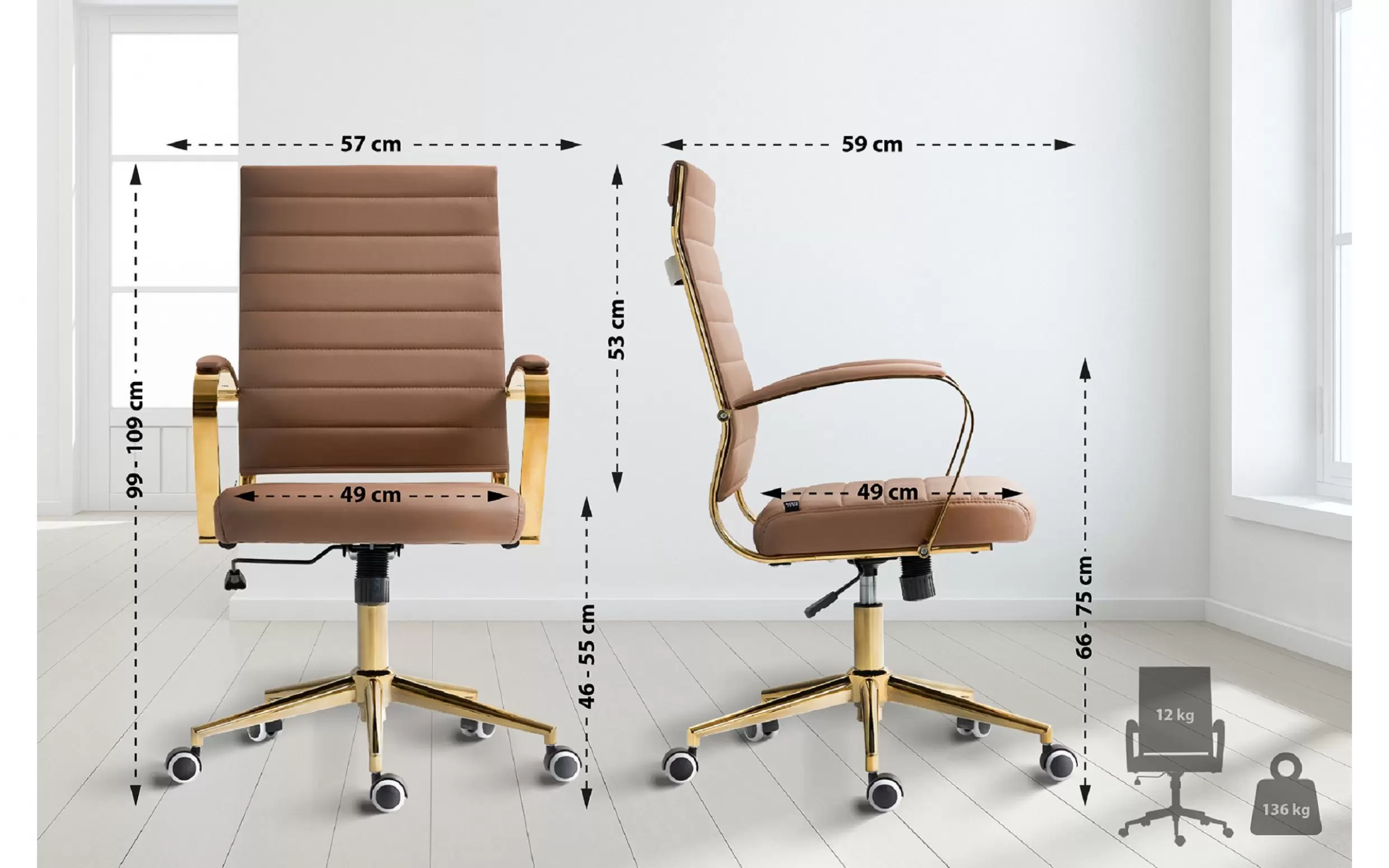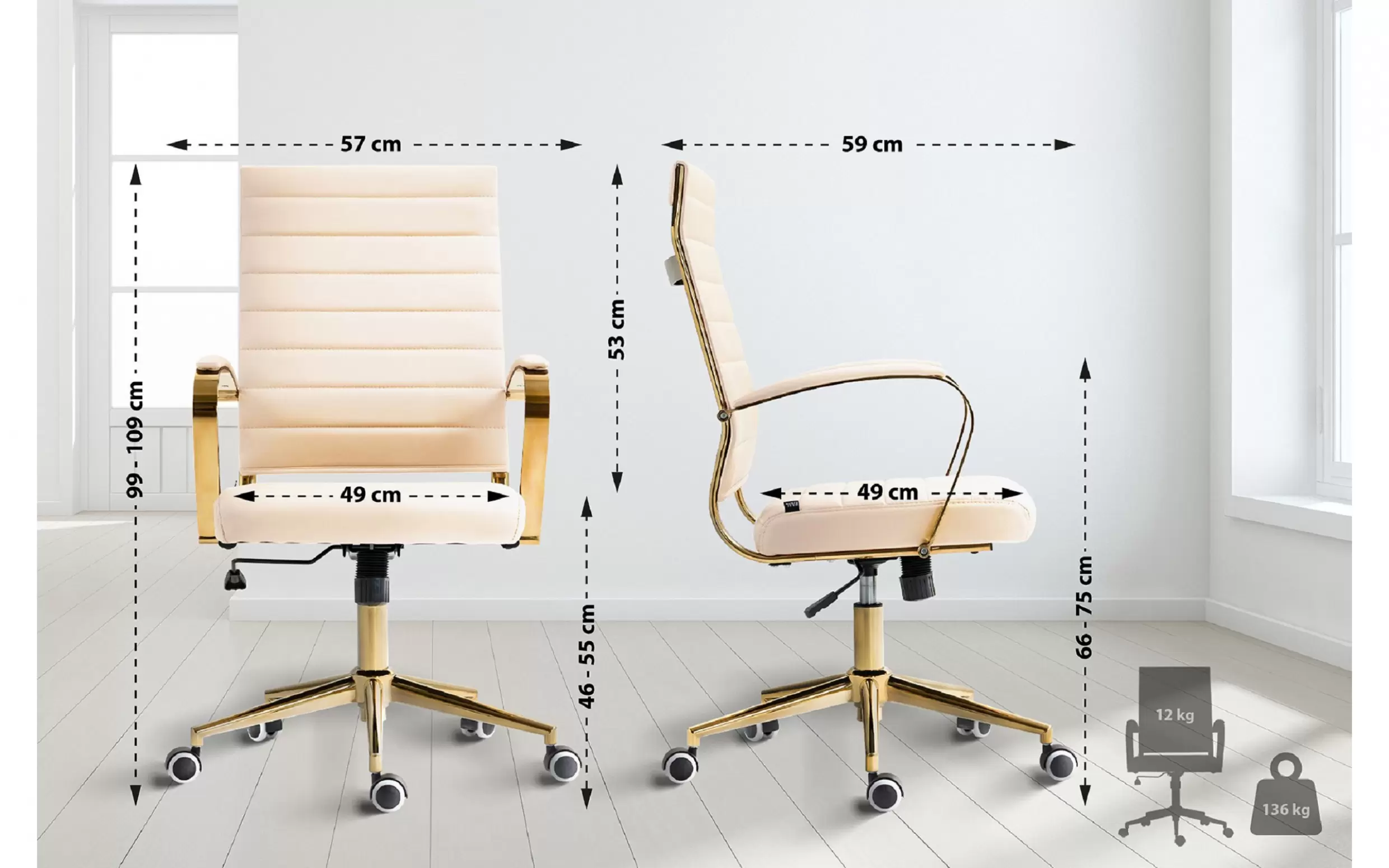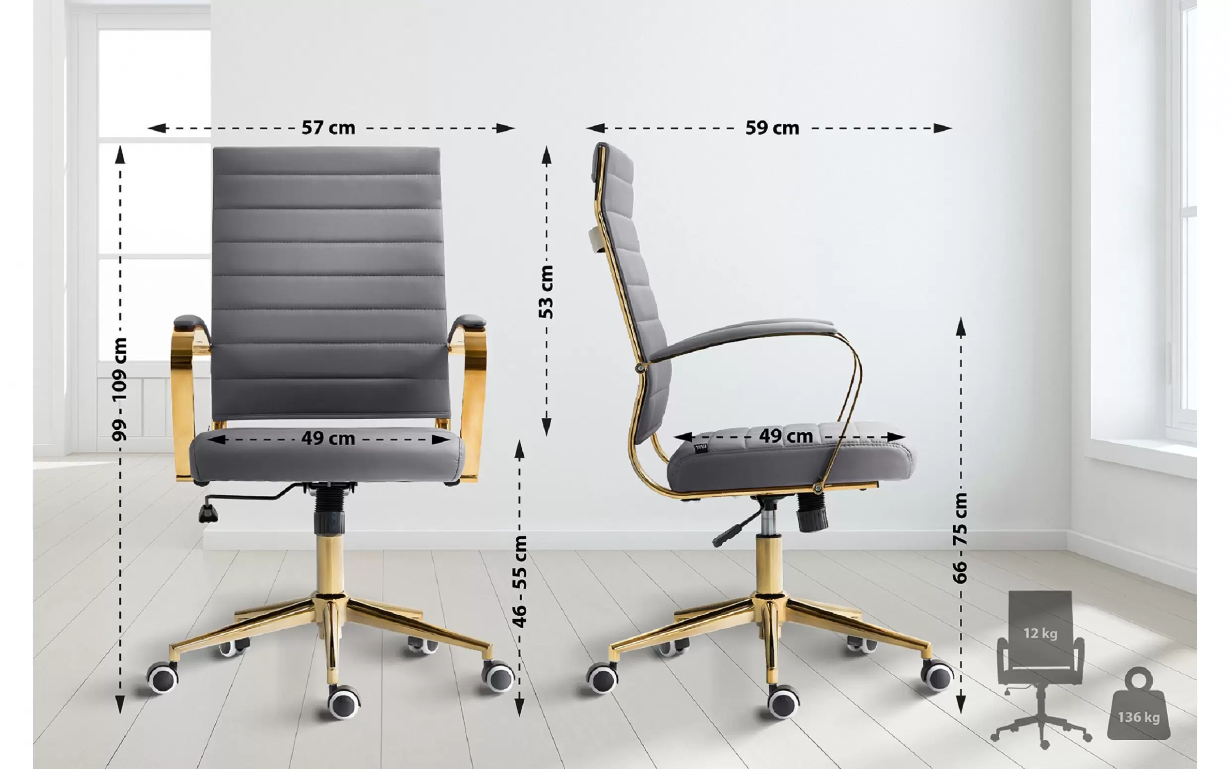 Stylowy złoty wygląd oraz gumowe kółka o niskim oporze chronią Twoją podłogę i nadają biuru odrobinę elegancji.