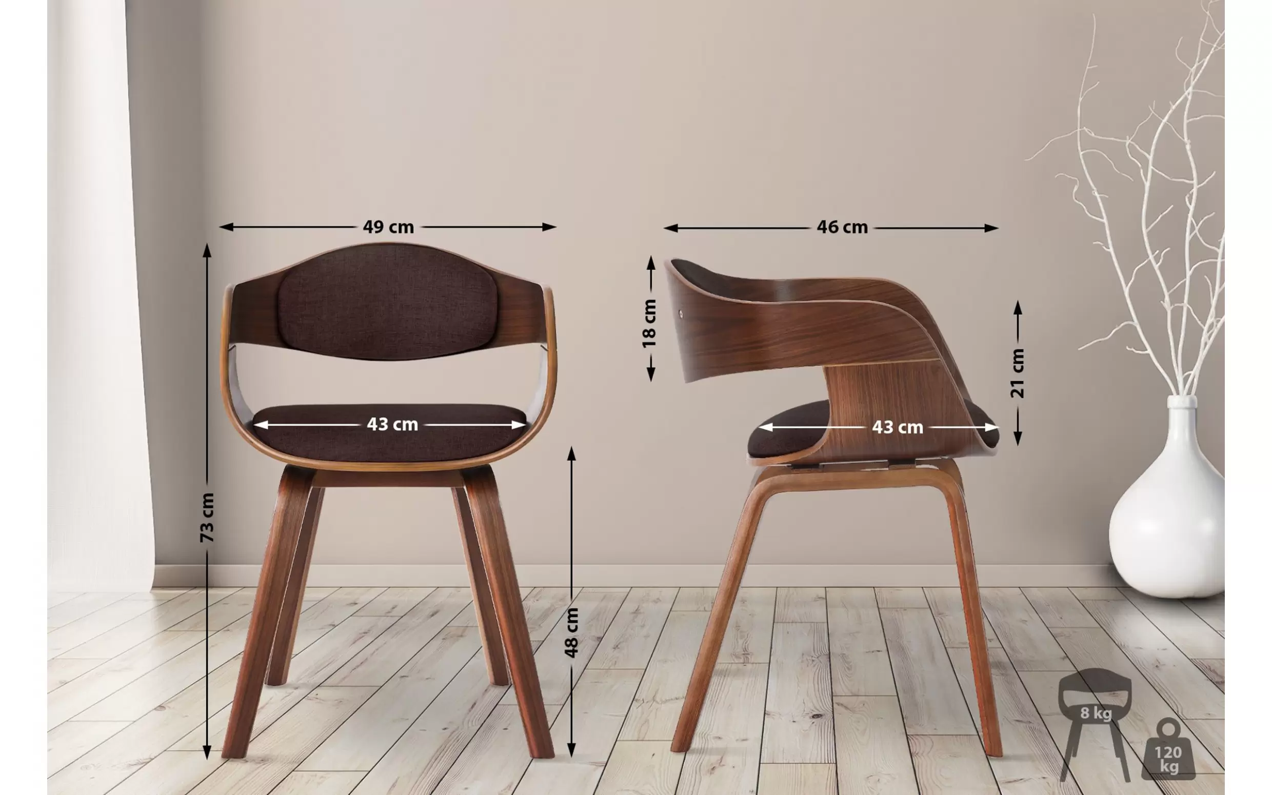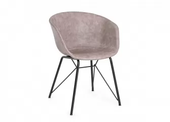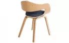 Podłokietniki, które przechodzą w oparcie, zapewniają przyjemny komfort siedzenia, a cztery nogi nadają dużą stabilność.