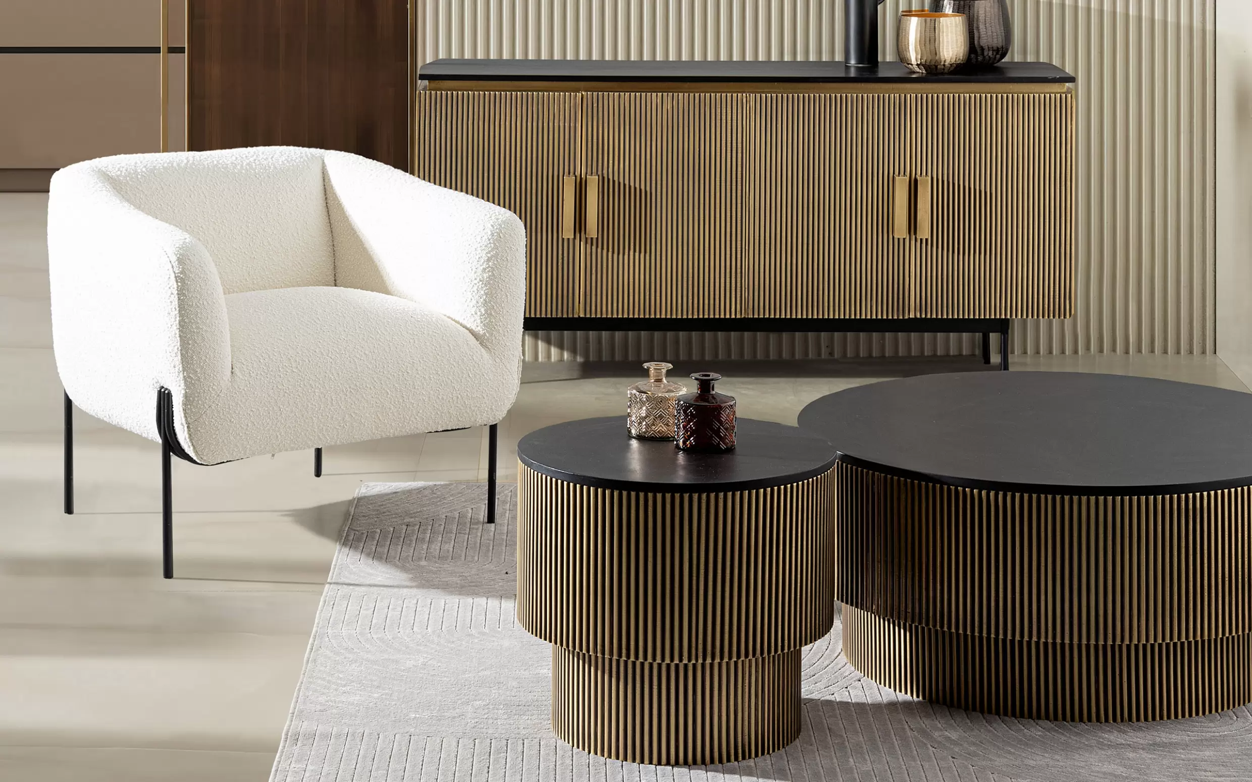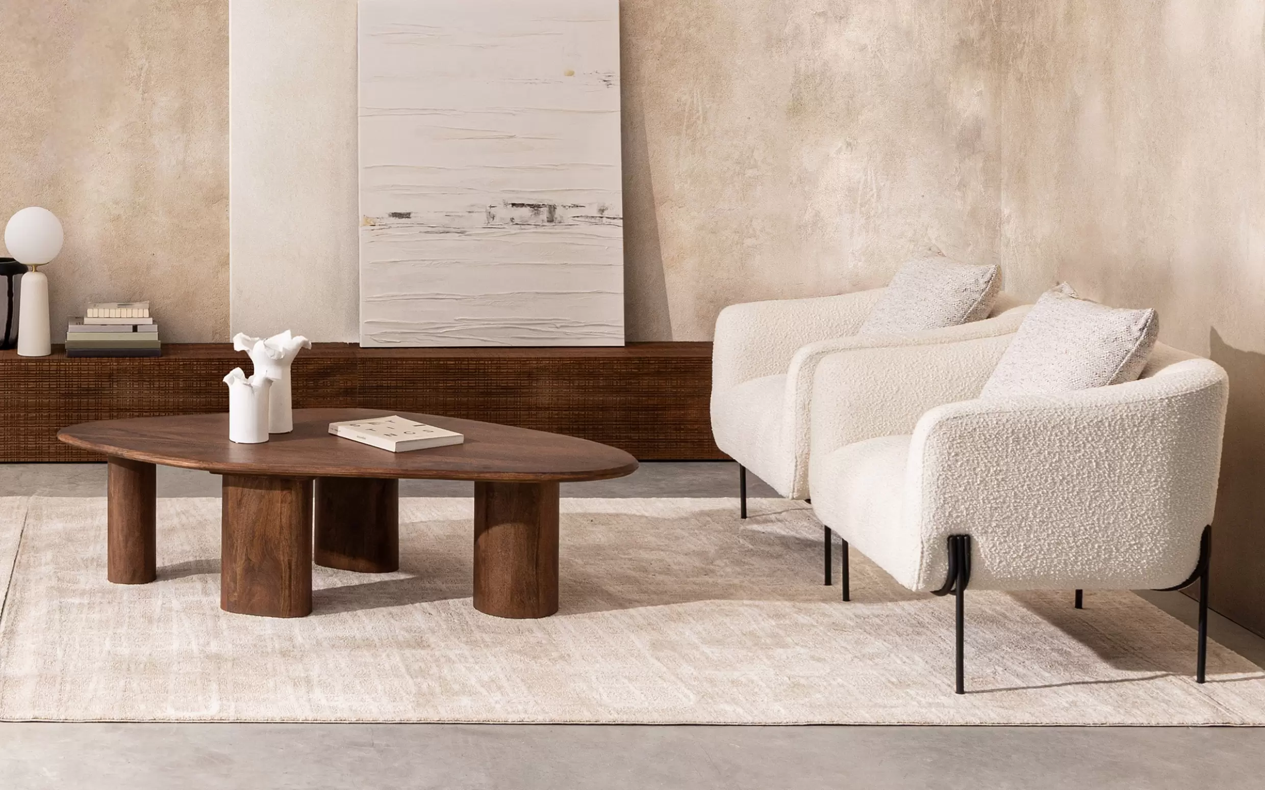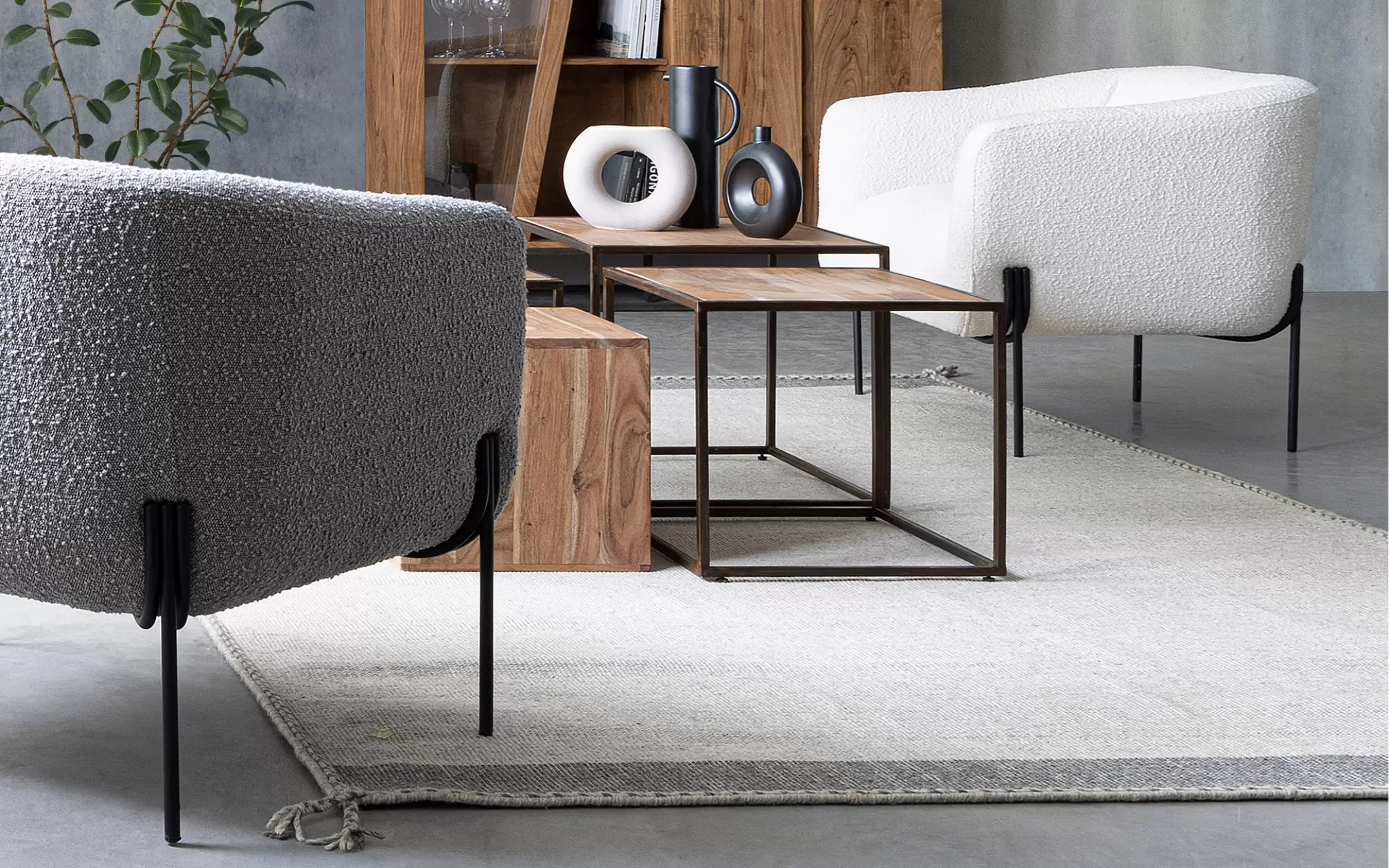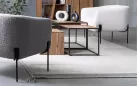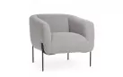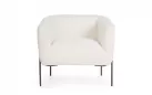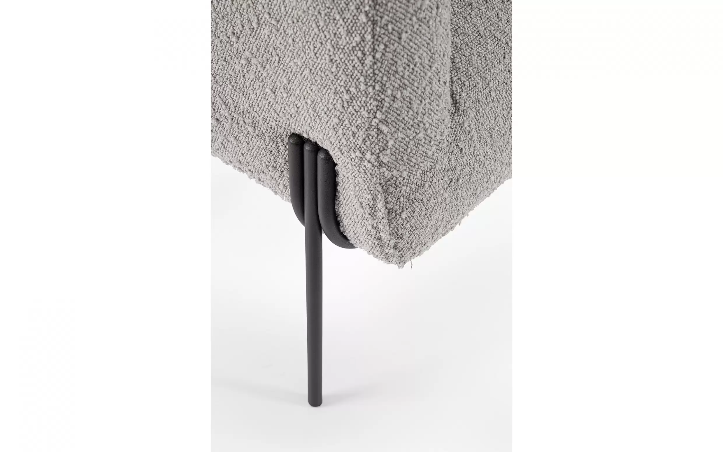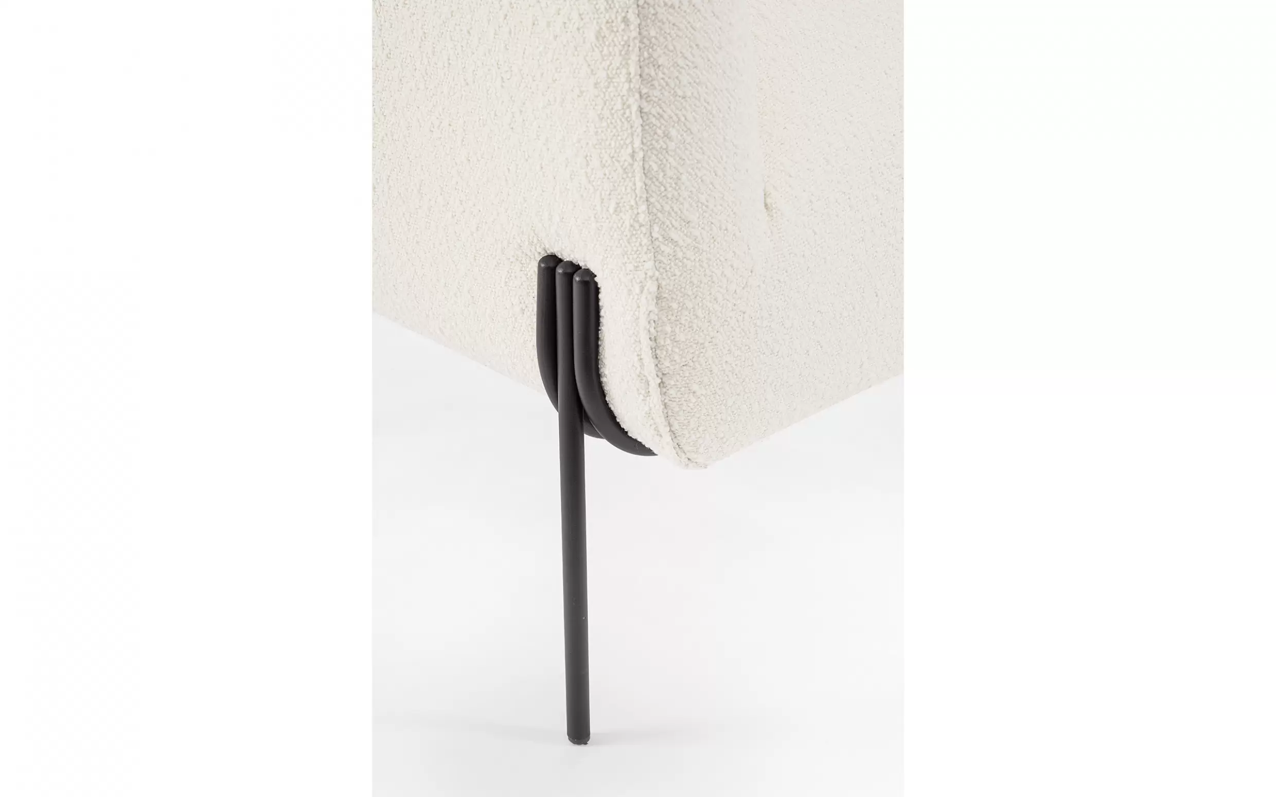 Fotel Claudine Bouclé marki Bizzotto to połączenie elegancji i wygody. Konstrukcja ze sklejki, stalowe nogi malowane proszkowo i tapicerka z poliestru o efekcie bouclé tworzą nowoczesny i przytulny design. Wypełnienie pianką poliuretanową (siedzisko 28 kg/m³, oparcie 20 kg/m³) gwarantuje komfort użytkowania.
