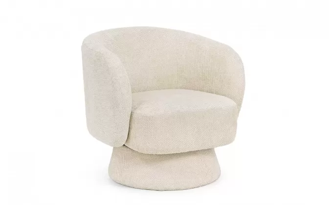 Fotel Julienne marki Bizzotto to połączenie wygody i nowoczesnej formy. Solidna konstrukcja ze sklejki, miękka pianka poliuretanowa oraz przyjemna w dotyku tapicerka poliestrowa zapewniają wysoki komfort siedzenia. Stabilna podstawa obrotowa 360° pozwala na pełną swobodę ruchu, dzięki czemu fotel idealnie sprawdzi się w salonie, sypialni czy gabinecie.