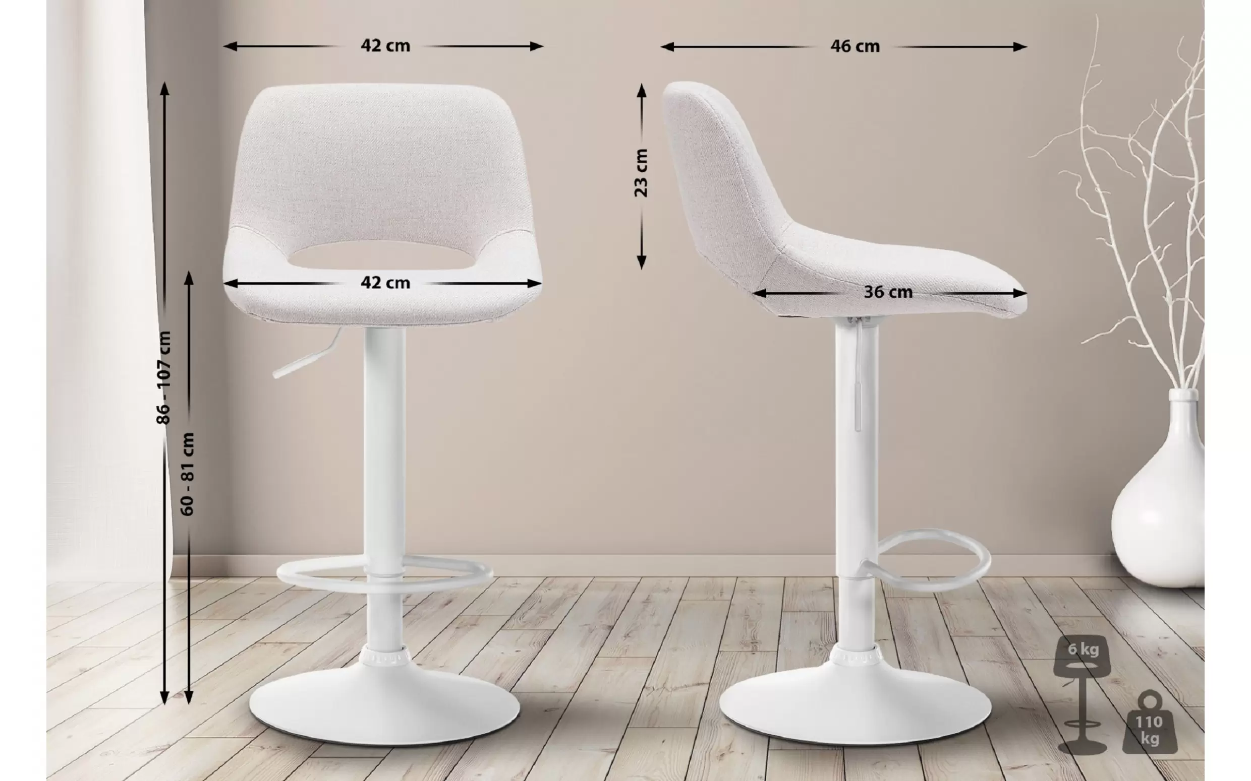 Możliwość regulacji wysokości metalowej podstawy pozwala znaleźć idealną wysokość siedzenia, a funkcja obrotu o 360 stopni zapewnia dużą swobodę ruchów.