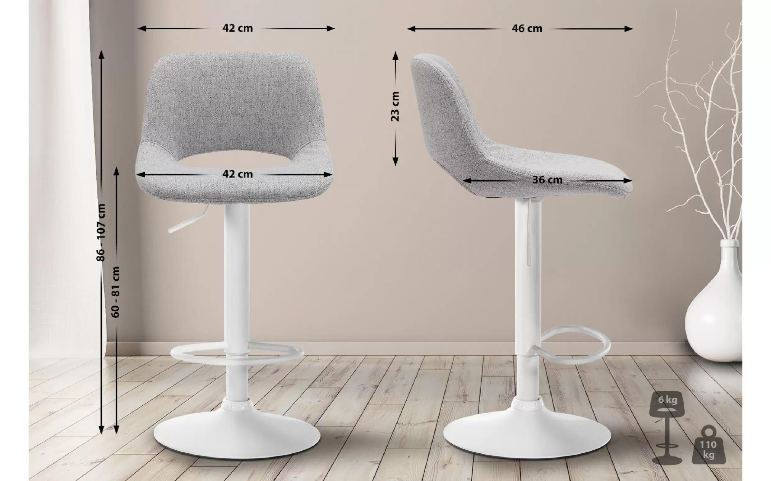 Możliwość regulacji wysokości metalowej podstawy pozwala znaleźć idealną wysokość siedzenia, a funkcja obrotu o 360 stopni zapewnia dużą swobodę ruchów.