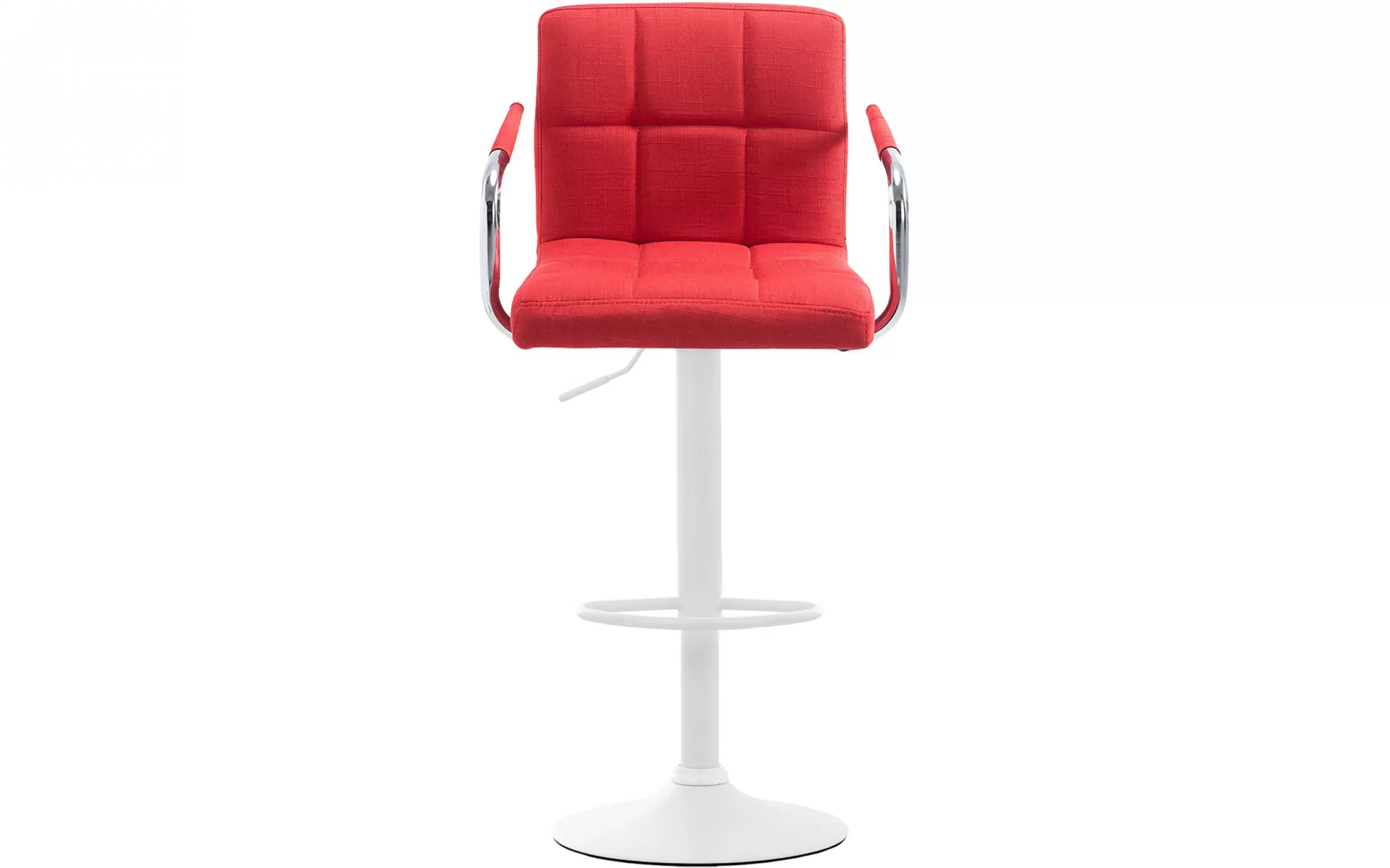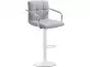 Hoker barowy z oparciem i podłokietnikami. Siedzisko pokryte jest materiałem i wykończone misternymi ozdobnymi przeszyciami. Za pomocą siłownika gazowego model ten można bezstopniowo ustawić na żądaną wysokość, dzięki czemu idealnie nadaje się do każdej wysokości blatu. Podnóżek, który zapewnia bardzo dobry komfort siedzenia, można regulować synchronicznie z wysokością siedziska. Siedzisko można obracać o 360 ° wraz z podnóżkiem. Rama wykonana jest z metalu o chromowanym wyglądzie, pod stopką trąbki znajdują się ochraniacze na podłogę, które zapobiegają zarysowaniu podłogi.