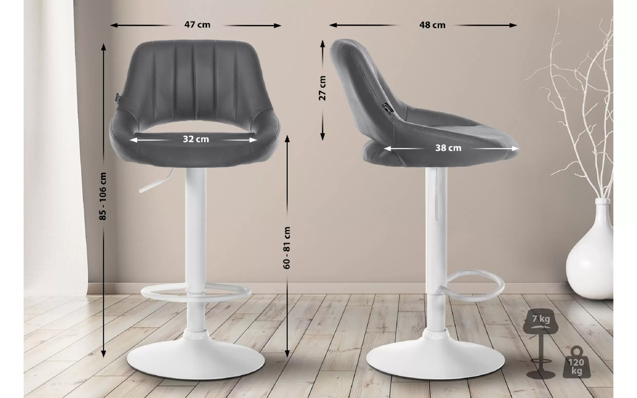 Hoker barowy Milet wyróżnia się solidną metalową konstrukcją, zapewniającą odpowiednią stabilność. Wysokość siedziska można elastycznie regulować, co pozwala na optymalne dopasowanie do wysokości stołu, a funkcja obrotu o 360 stopni umożliwia wszechstronne wykorzystanie.