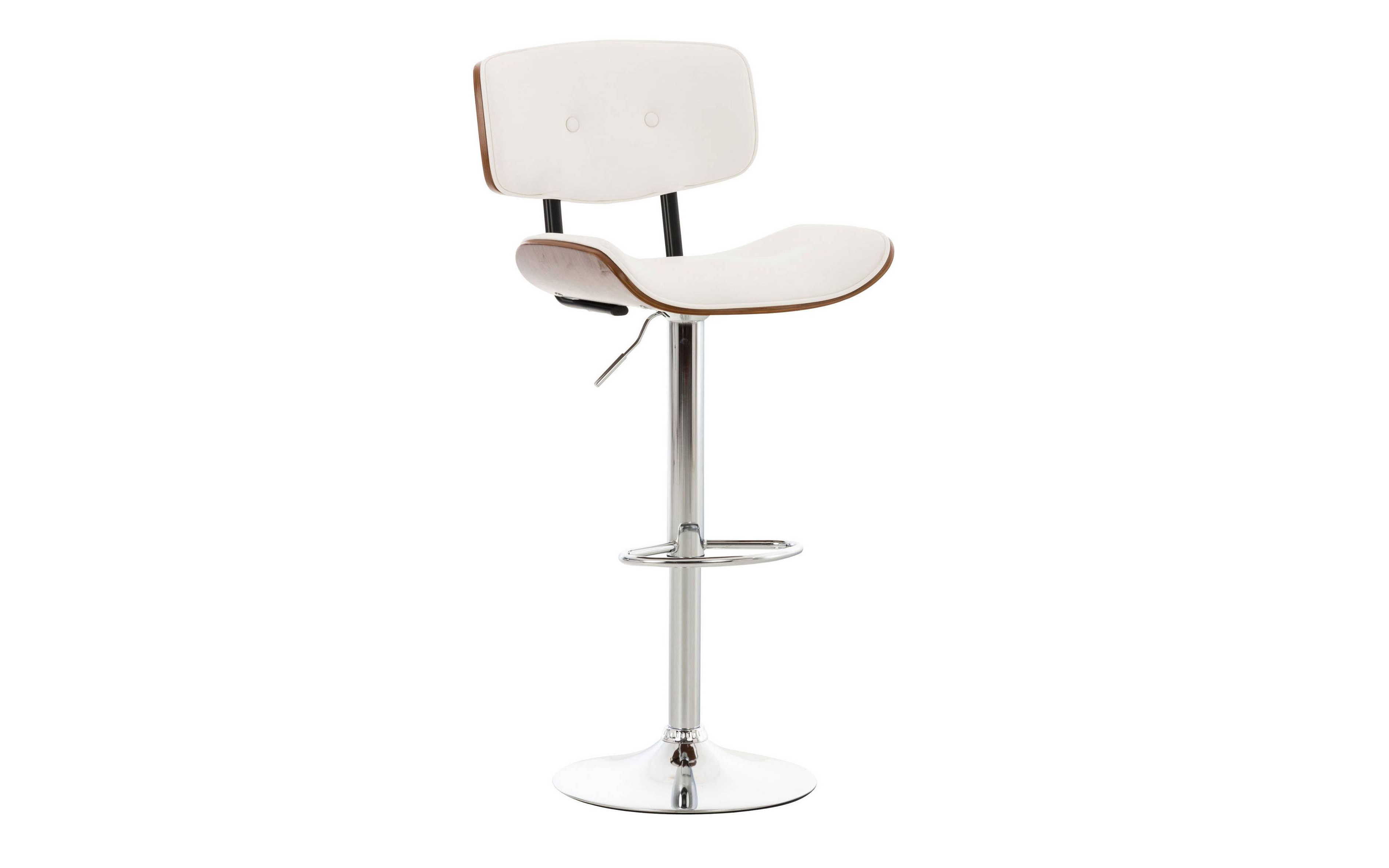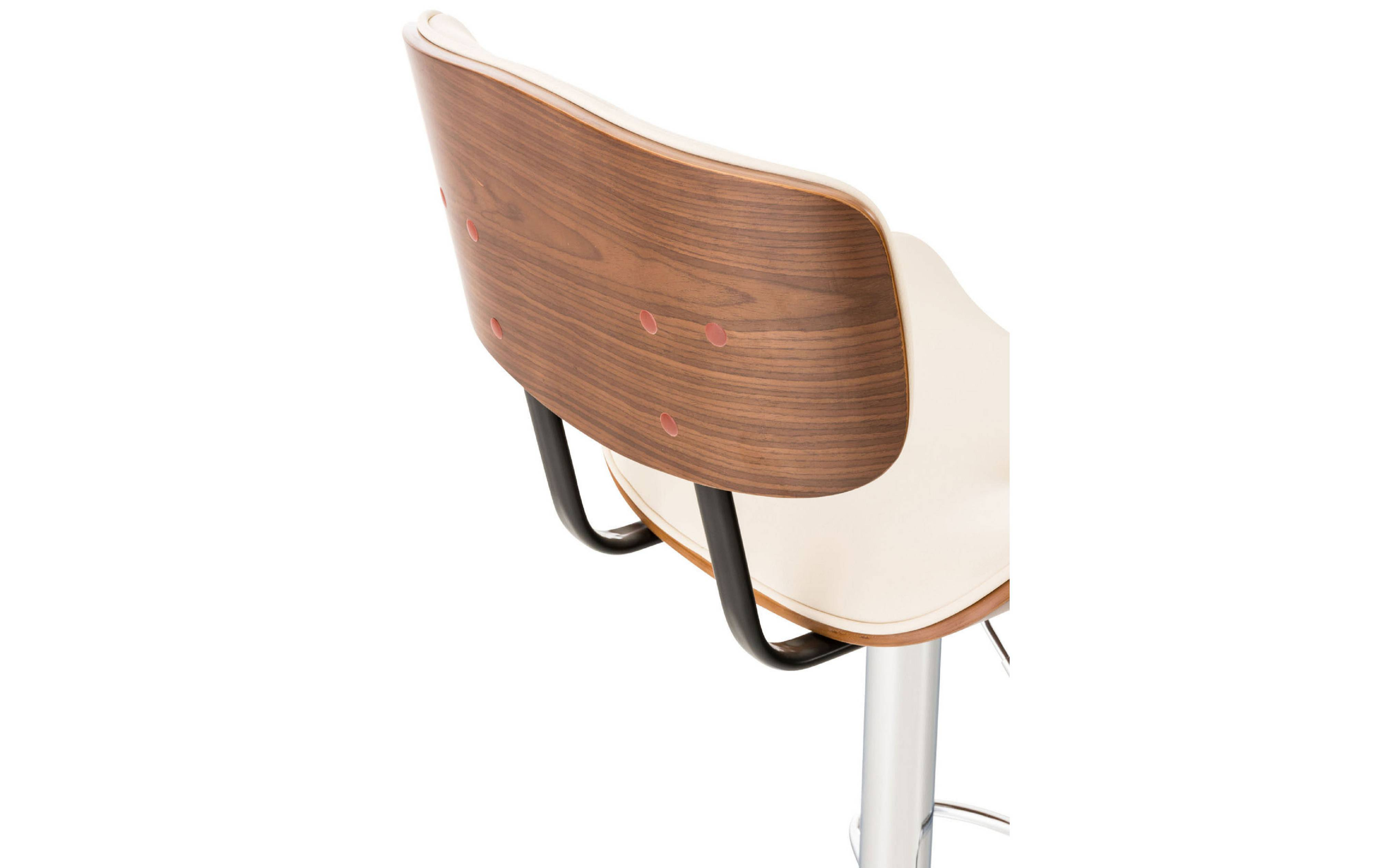 Stołek, który doda elegancji każdemu barowi. Charakteryzuje się nie tylko wygodnym siedzeniem dzięki ergonomicznemu kształtowi, ale także nowoczesnym designem. Zakrzywione siedzisko i oparcie z giętego drewna jest tapicerowane i obite sztuczną skórą. Ozdobne guziki na poszyciu. Rama jest wykonana z polerowanego metalu o chromowanym wyglądzie - można ją szybko i łatwo wyczyścić. Hoker ma płynną regulację wysokości za pomocą podnośnika gazowego. Siedzisko można obracać o 360°.