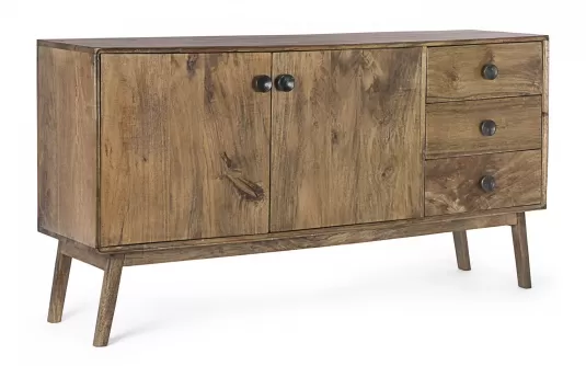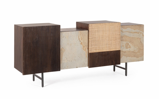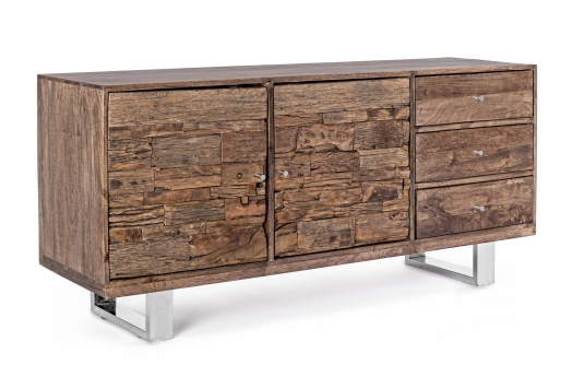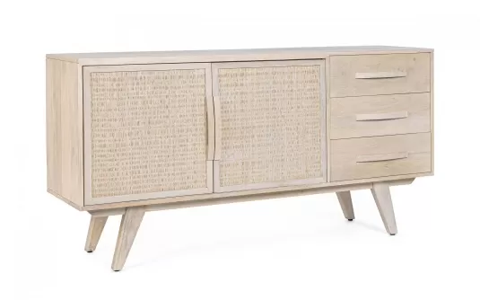 Komody Bizzotto wyróżniają się dbałością o szczegóły i wysoką jakością wykończenia. Producent stosuje różnorodne materiały – od litego drewna mango i akacji, poprzez forniry z jesionu czy dębu, aż po elementy z płyt MDF, stali i szkła hartowanego. W wielu modelach wykorzystano drewno recyklingowane, co nadaje im niepowtarzalny charakter i podkreśla ekologiczne podejście marki.