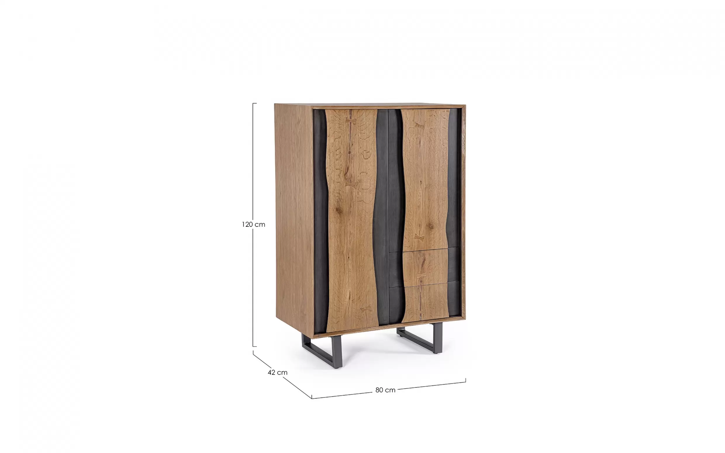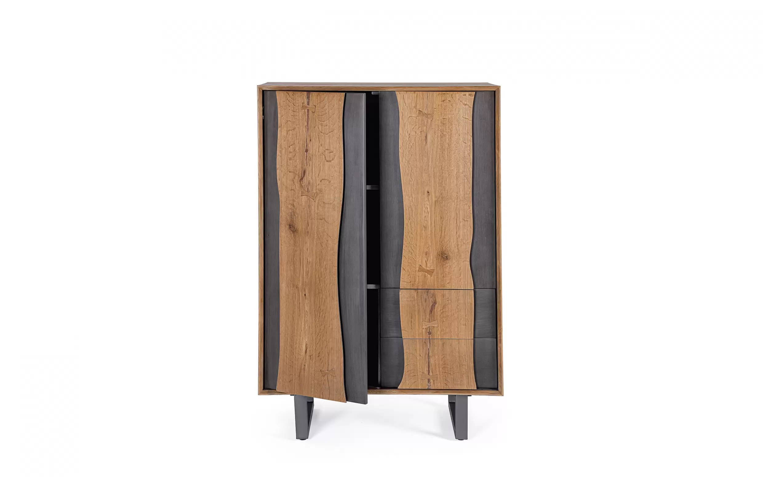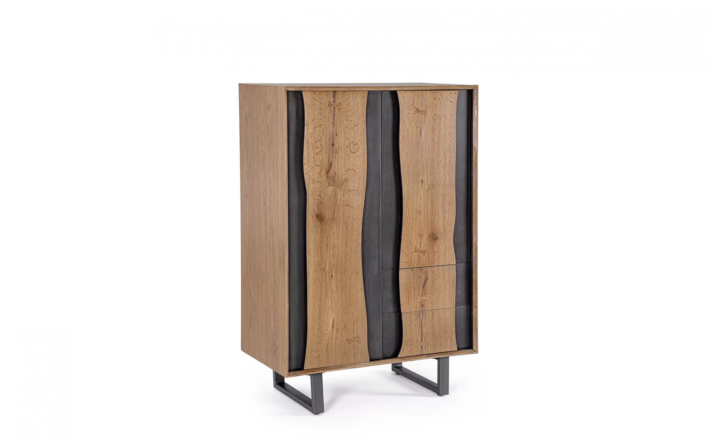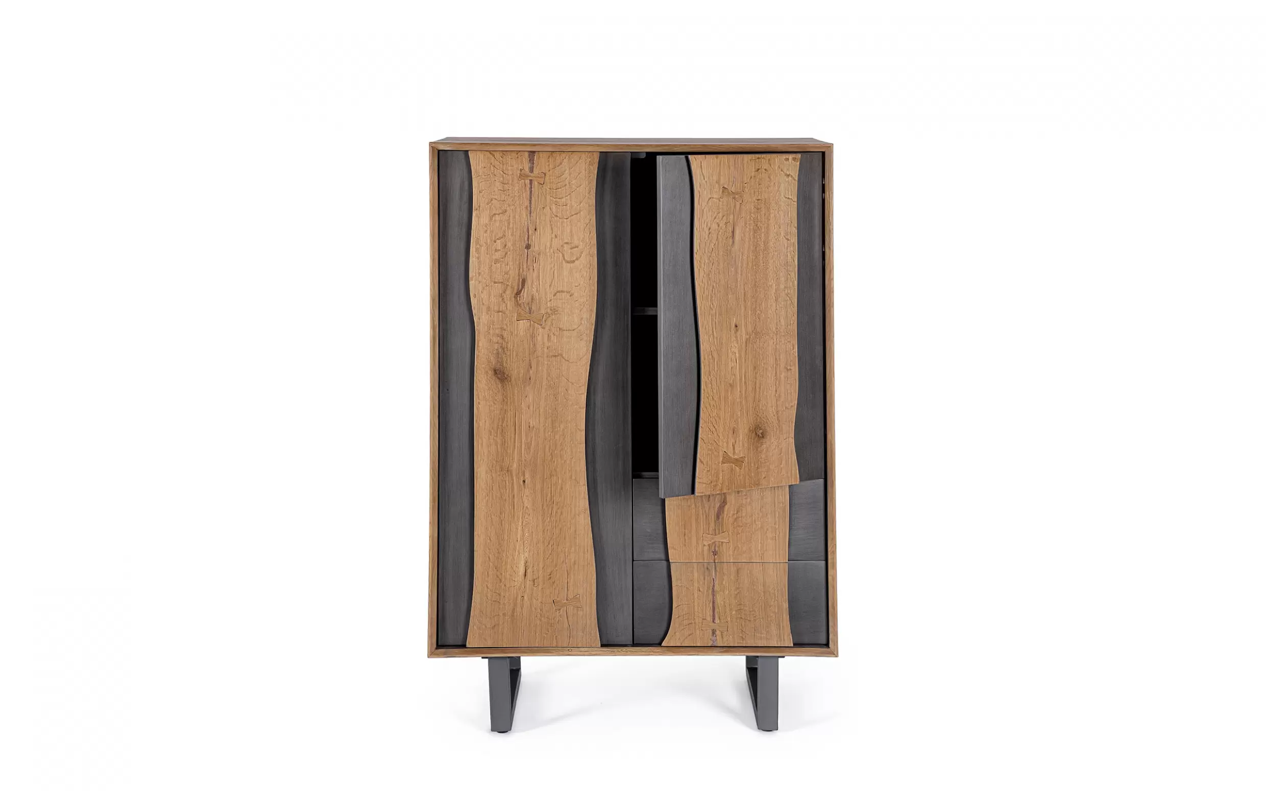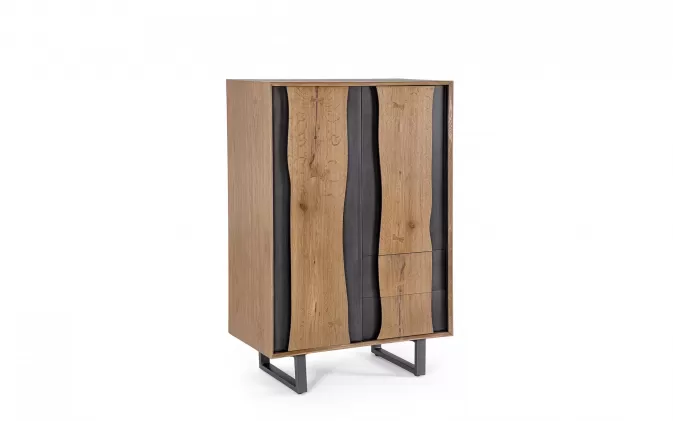 Komoda GARWOOD to nowoczesny mebel, który łączy elegancję naturalnego drewna z funkcjonalnością. Wykonana została z MDF fornirowanego dębem i pokryta wykończeniem na bazie wody, co podkreśla piękno drewna i zapewnia trwałość. Wnętrze w kolorze antracytowym wyposażono w system cichego domyku, który zwiększa komfort użytkowania. Stabilność gwarantują stalowe nogi malowane proszkowo. Komoda sprawdzi się zarówno w salonie, jak i w gabinecie czy jadalni.