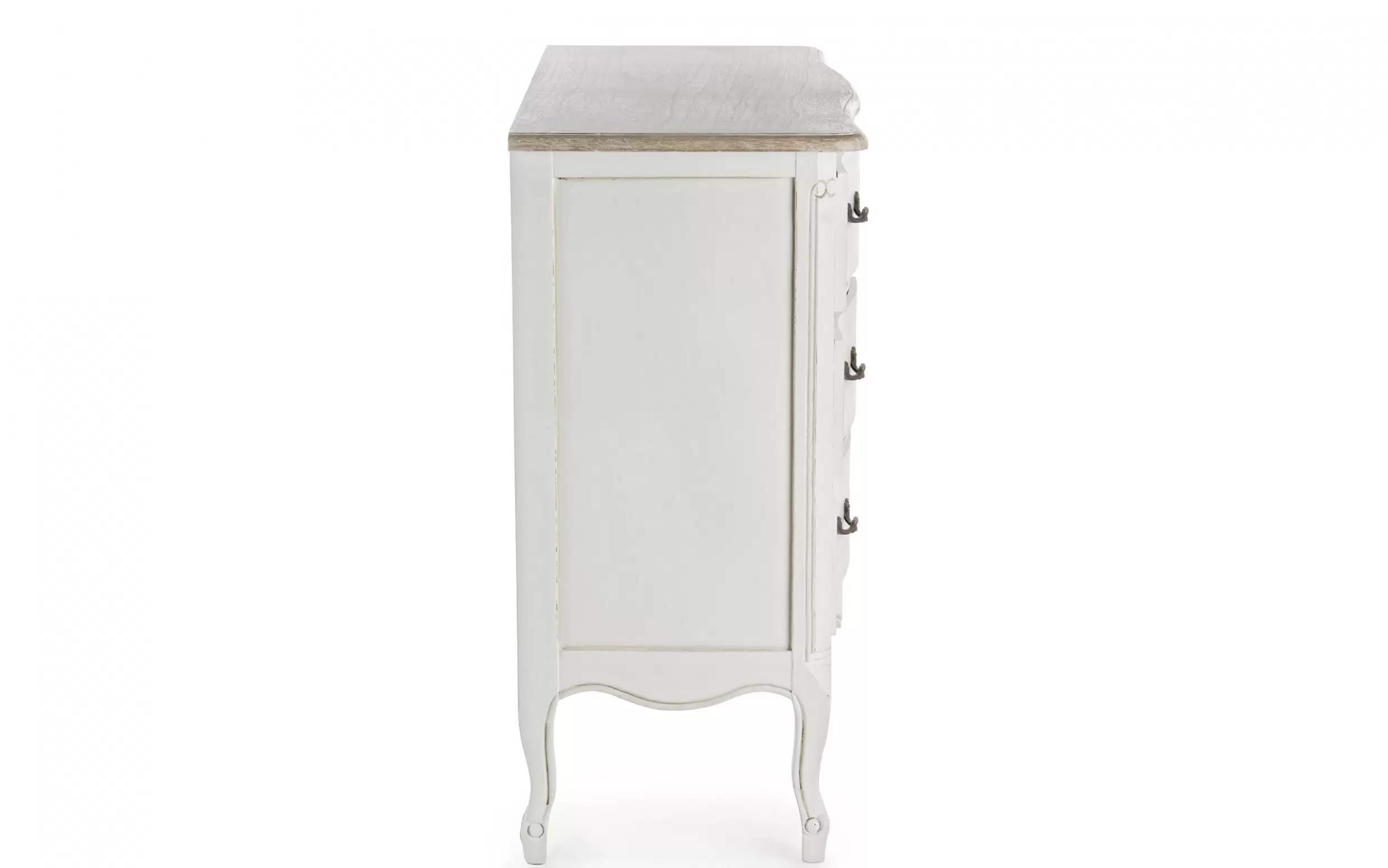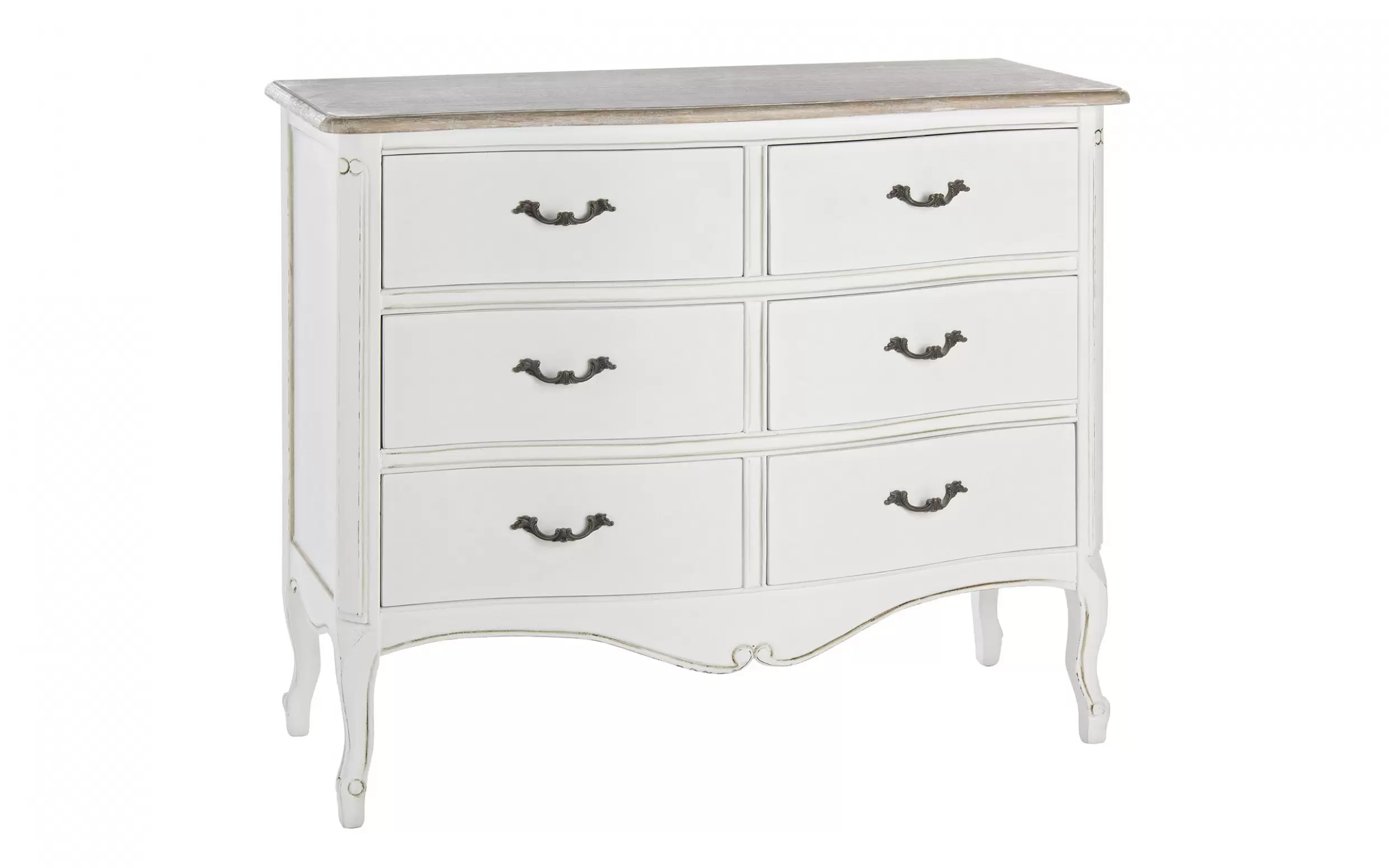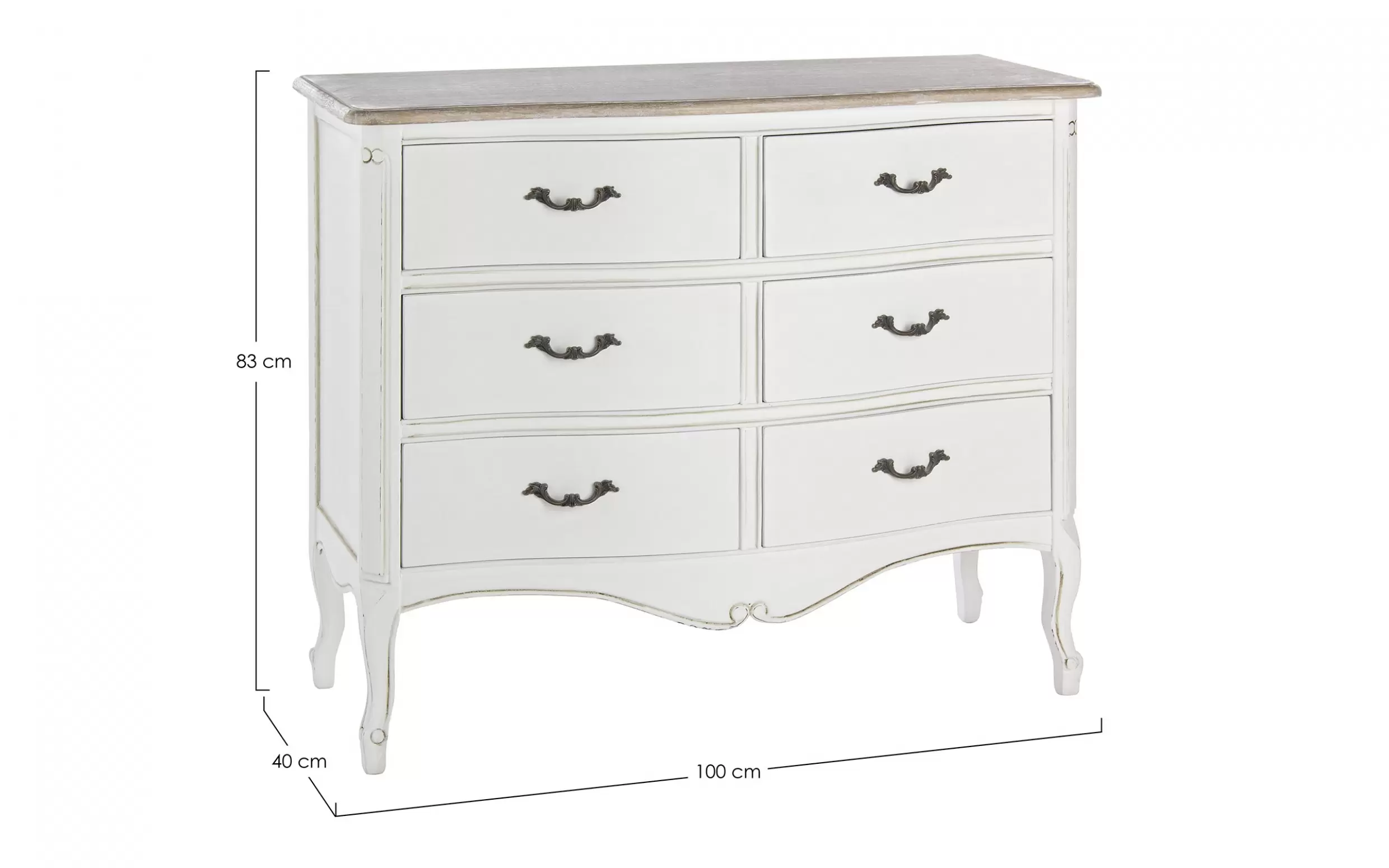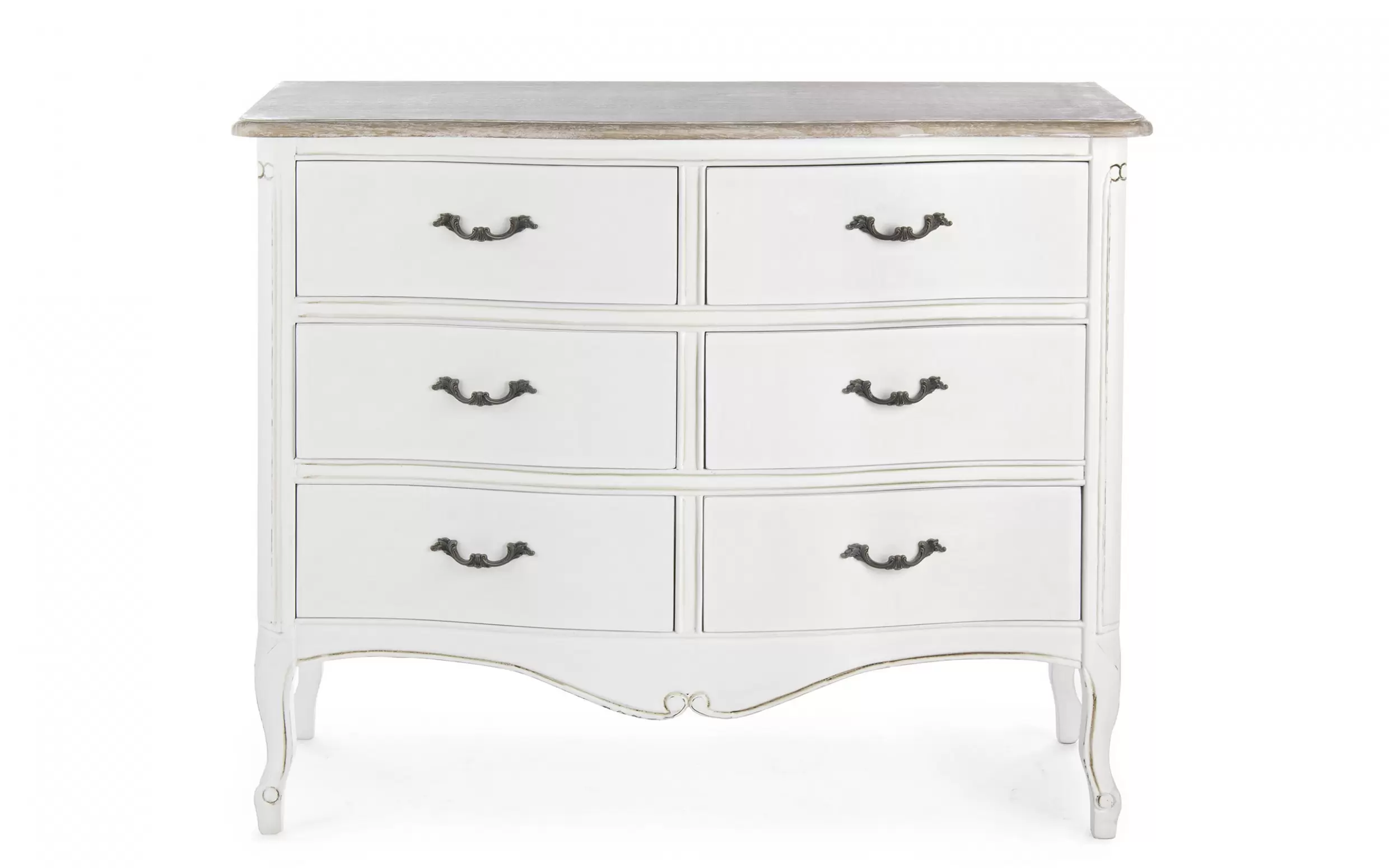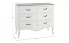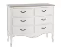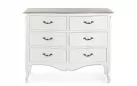 Komoda JUSTINE 6DR to funkcjonalny mebel o szerokości 100 cm i wysokości 83 cm. Wykonana z drewna paulownia i MDF, wyposażona w 6 pojemnych szuflad. Stalowe uchwyty podkreślają jej prostą elegancję, a wykończenie wodne nadaje subtelny wygląd. Idealna do nowoczesnych wnętrz.