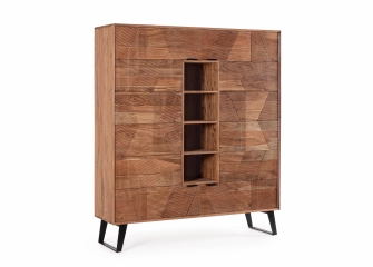 Komoda MANCHESTER to wyjątkowy mebel o industrialnym charakterze. Jej konstrukcja została wykonana z połączenia drewna mango i stali, a plecy z płyty sklejki. Fronty drzwi i szuflad mają unikalne wykończenia – z drewna recyklingowanego, blachy stalowej lub cementu włóknistego – co nadaje każdemu egzemplarzowi indywidualny wygląd. Dzięki ręcznemu wykonaniu każdy mebel ma inne układy słojów, kolorów i faktur, przez co staje się unikatowy. Całość zabezpieczono akrylową powłoką ochronną, a regulowane nóżki ułatwiają dopasowanie do podłoża.