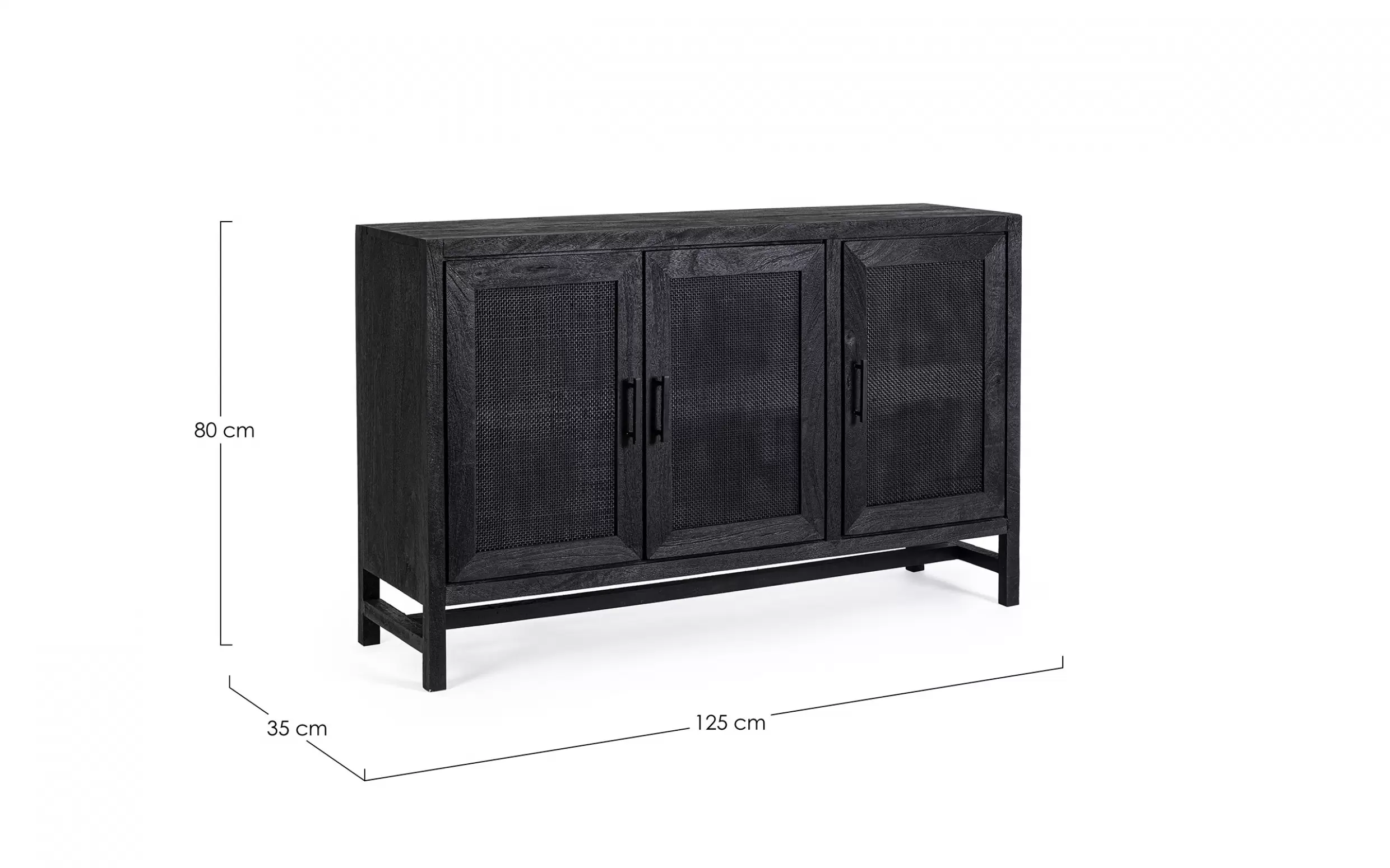Komoda WESTON to wyjątkowy mebel, który łączy naturalny charakter drewna mango z subtelną lekkością rattanu. Rama została wykończona lakierem nitrocelulozowym, który podkreśla ciepły odcień drewna. Plecy wykonano z MDF, a drzwi zdobią eleganckie rattanowe wstawki. Model wyposażono w 3 drzwi z wewnętrznymi półkami, które zapewniają praktyczne przechowywanie. Komoda doskonale wpisuje się w styl boho, naturalny i kolonialny.