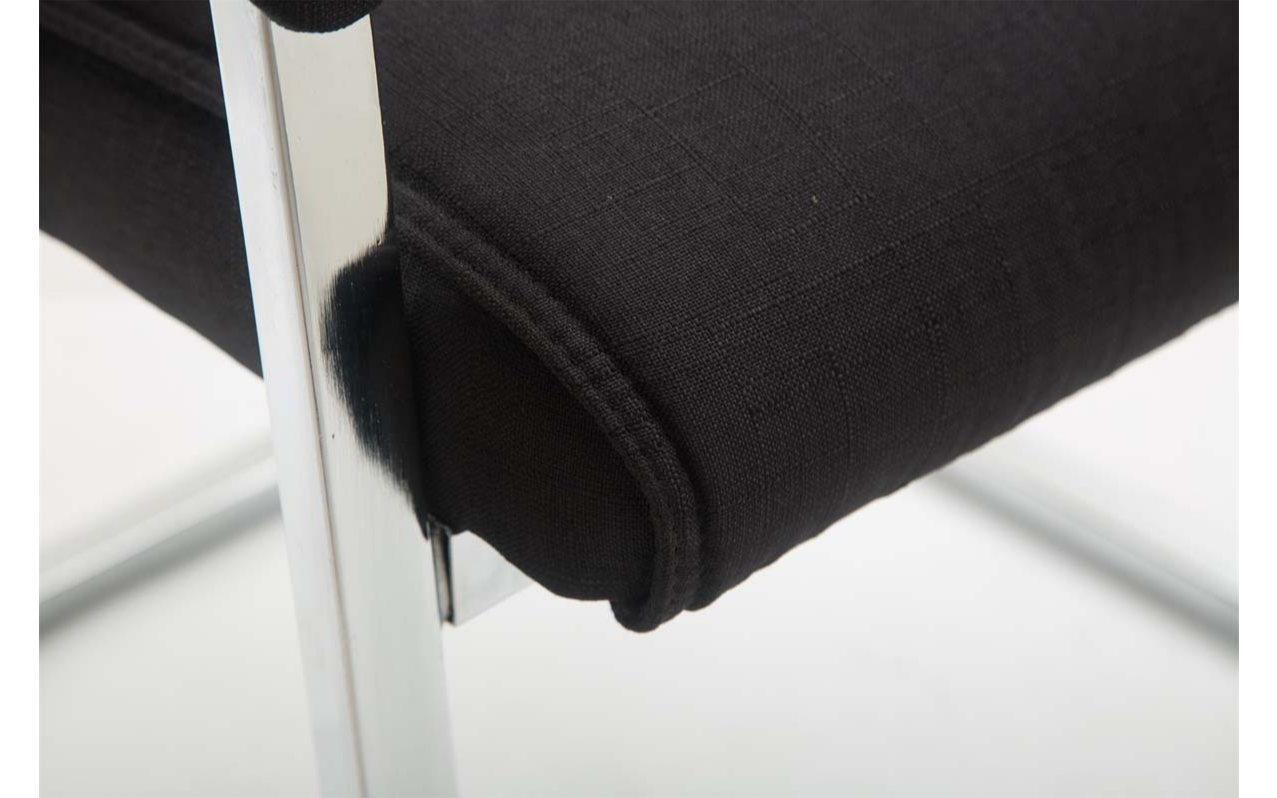 Zakrzywiona podstawa ze stali nierdzewnej i stabilna geometria krzesła zapewniają wygodne siedzenie.