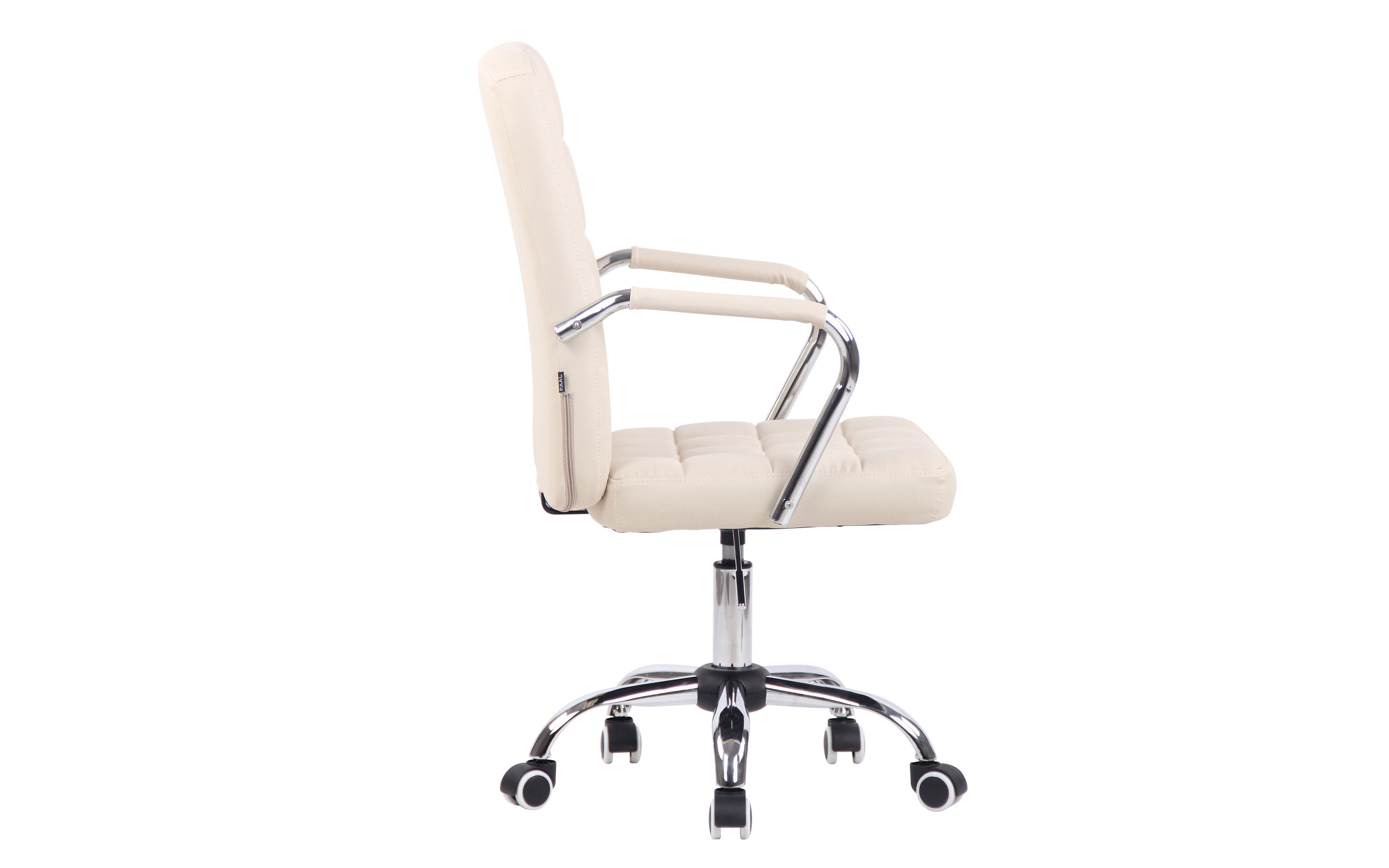 Krzesło biurowe zachwyca nowoczesnym designem i zapewnia wysoki komfort pracy dzięki wysokiemu oparciu i podłokietnikom. Obrotowe krzesło posiada bardzo wysokiej jakości tapicerkę i pokryte jest skórą syntetyczną lub tkaniną. Elegancka chromowana rama i solidne zakrzywione podłokietniki z osłoną nadają całości nowoczesnego stylu. Wysokość siedziska można płynnie regulować za pomocą dźwigni pod siedziskiem. Fotel biurowy jest stabilny na metalowej ramie w chromowanym wyglądzie z pięcioma lekko poruszającymi się kółkami. Niezależnie od tego, czy chodzi o podłogę twardą, czy wyłożoną wykładziną - zawsze możesz toczyć się lekko i luźno po podłodze.