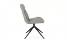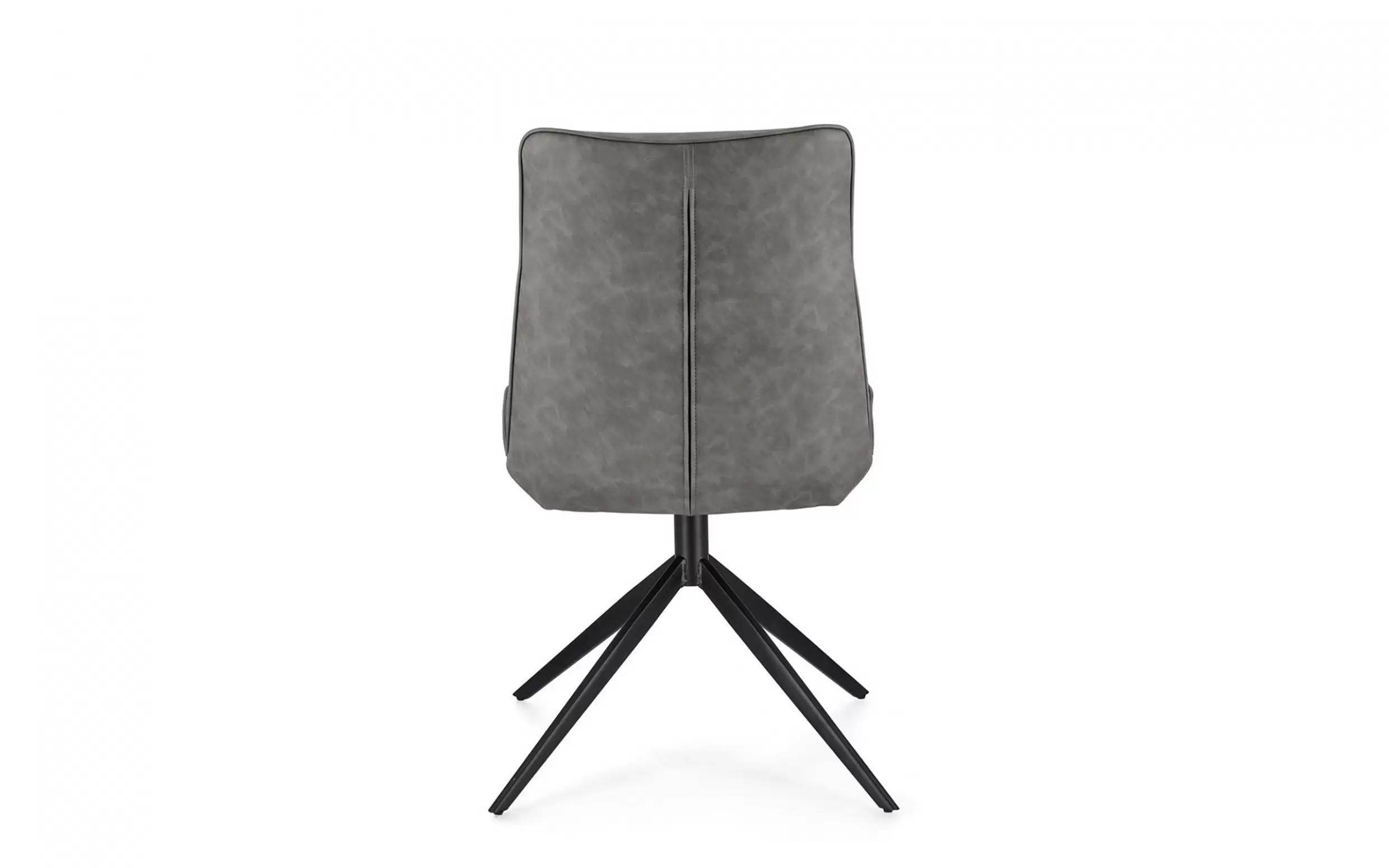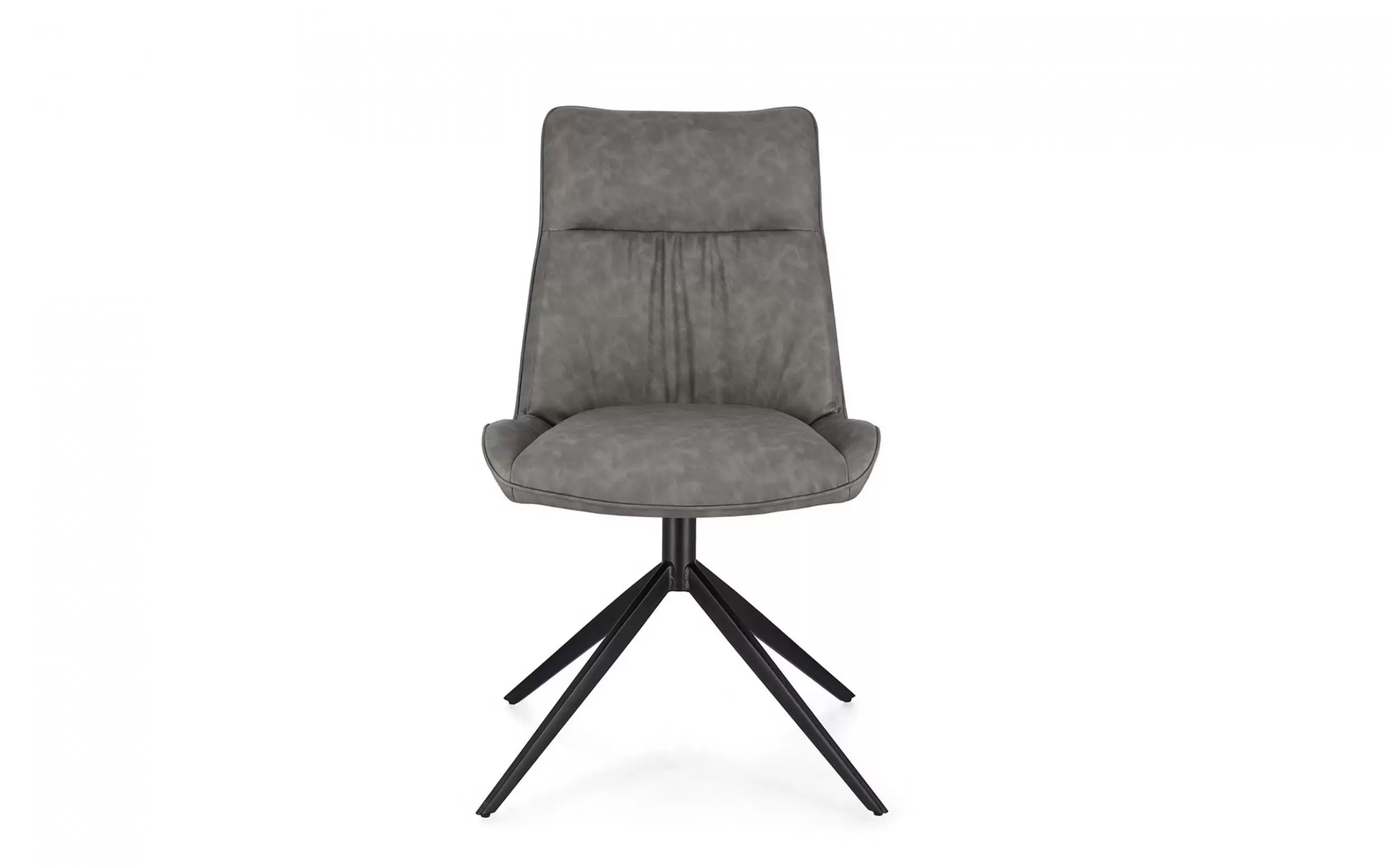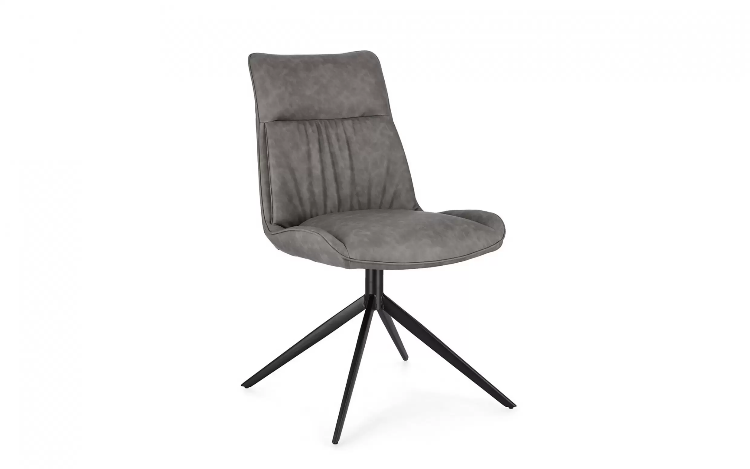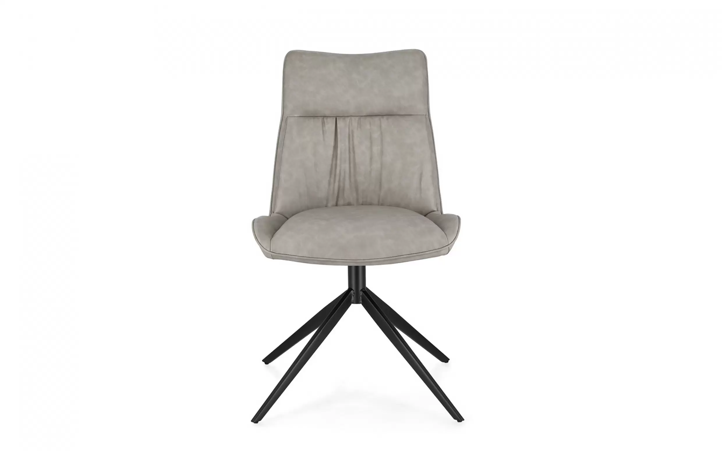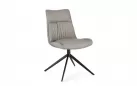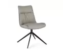 Krzesło JORDAN marki Bizzotto to nowoczesna propozycja do jadalni, biura lub przestrzeni komercyjnych. Tapicerka z ekoskóry PU o subtelnej fakturze dostępna jest w dwóch wersjach kolorystycznych: taupe oraz szarej. Pionowe przeszycia na oparciu dodają elegancji, a ergonomiczna forma zapewnia komfort użytkowania. Krzesło osadzone jest na czarnej metalowej podstawie z czterema rozchodzącymi się nogami i funkcją obrotu, co zwiększa jego funkcjonalność.