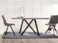 Krzesło nowoczesne w stylu skandynawskim z czarnymi nogami i siedziskiem tapicerowanym z obiciem z ekoskóry.