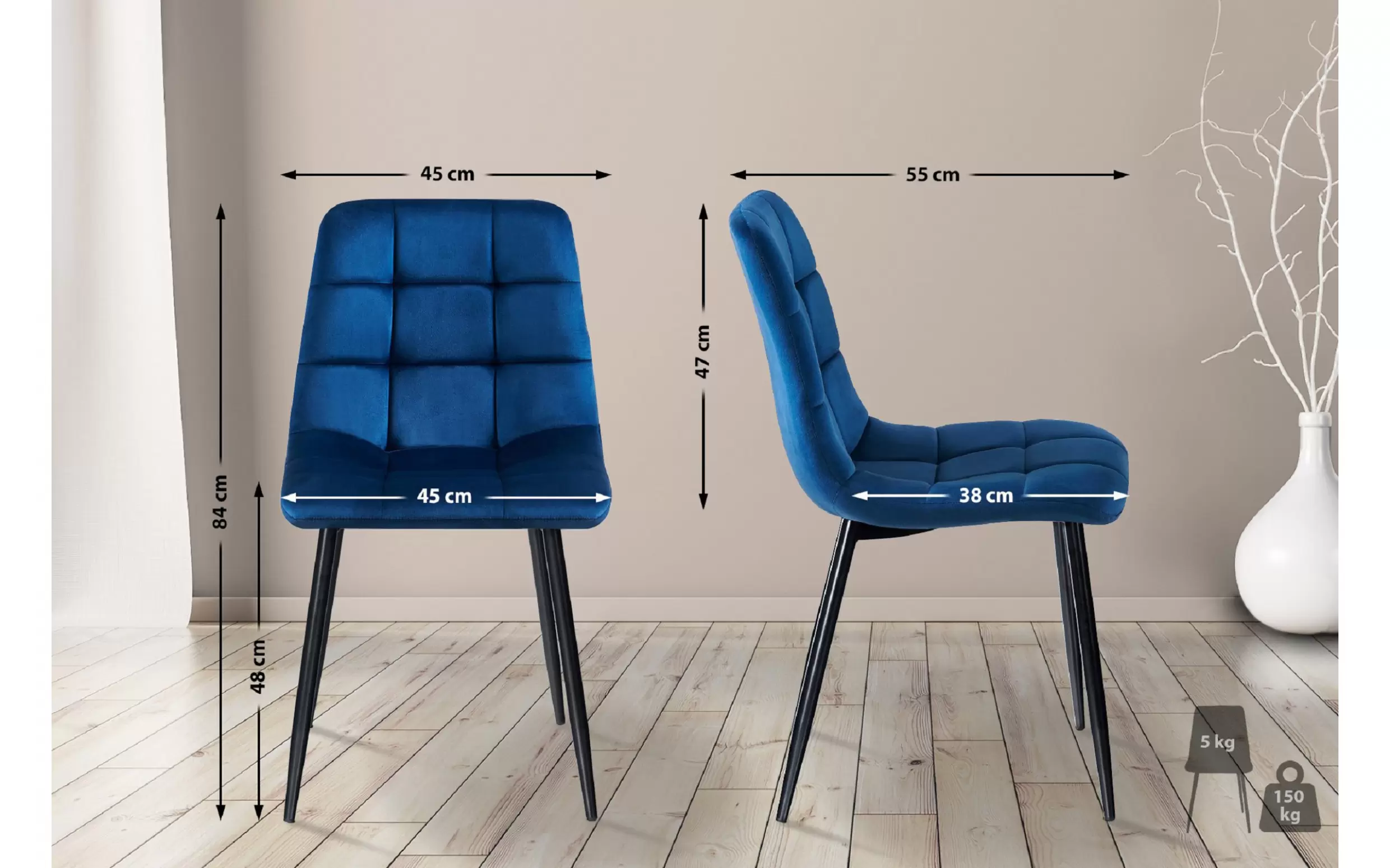 Kluczem do wygodnego siedzenia jest przyjemna tapicerka nad siedziskiem i oparciem. Zarówno siedzisko, jak i oparcie są pokryte łatwym w pielęgnacji i wytrzymałym obiciem z weluru z modnym pikowanym wzorem.