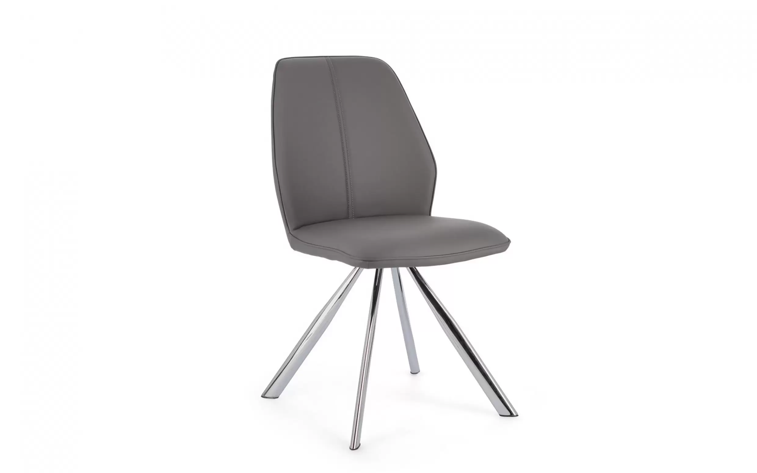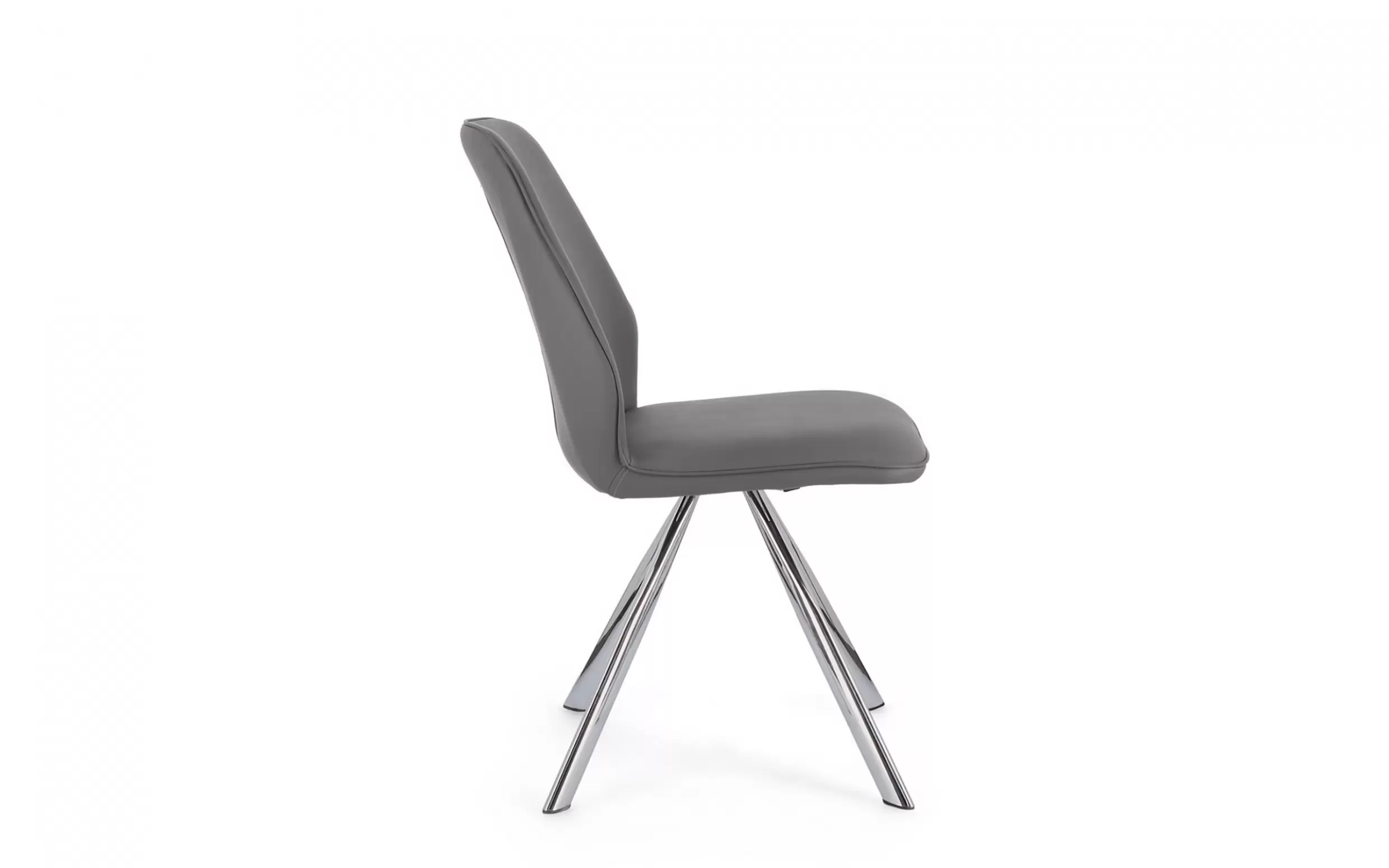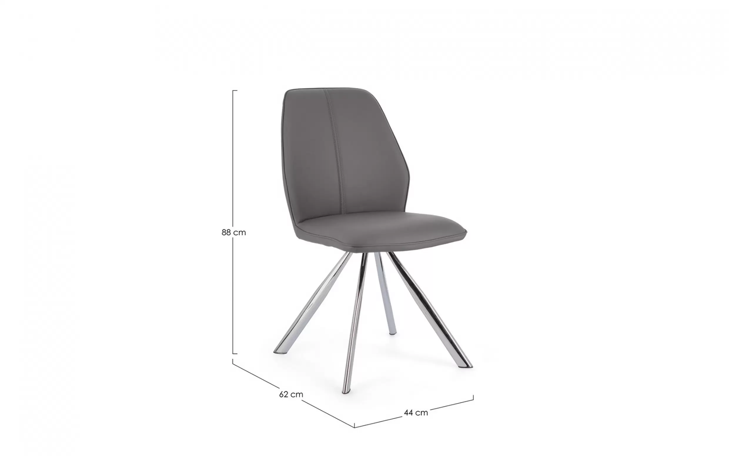 Krzesło MAXWELL marki Bizzotto to nowoczesny mebel przeznaczony do jadalni, salonu lub kuchni. Rama wykonana ze sklejki zapewnia stabilność, a wypełnienie z pianki poliuretanowej gwarantuje komfort użytkowania. Tapicerka z ekoskóry PU w kolorze szarym nadaje elegancki wygląd i jest łatwa w pielęgnacji. Nogi ze stali chromowanej podkreślają współczesny charakter krzesła.