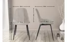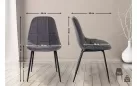 Obicie siedziska zdobione jest dekoracyjnymi szwami i dostępne jest w sztucznej skórze lub tkaninie. Na metalowej podstawie z czterema nogami krzesło zapewnia stabilność.