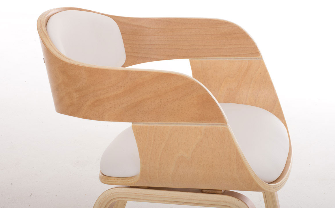 Krzesło dla gości składa się z wytrzymałej drewnianej skorupy oraz miękkiego siedziska/oparcia z tapicerką z ekoskóry.