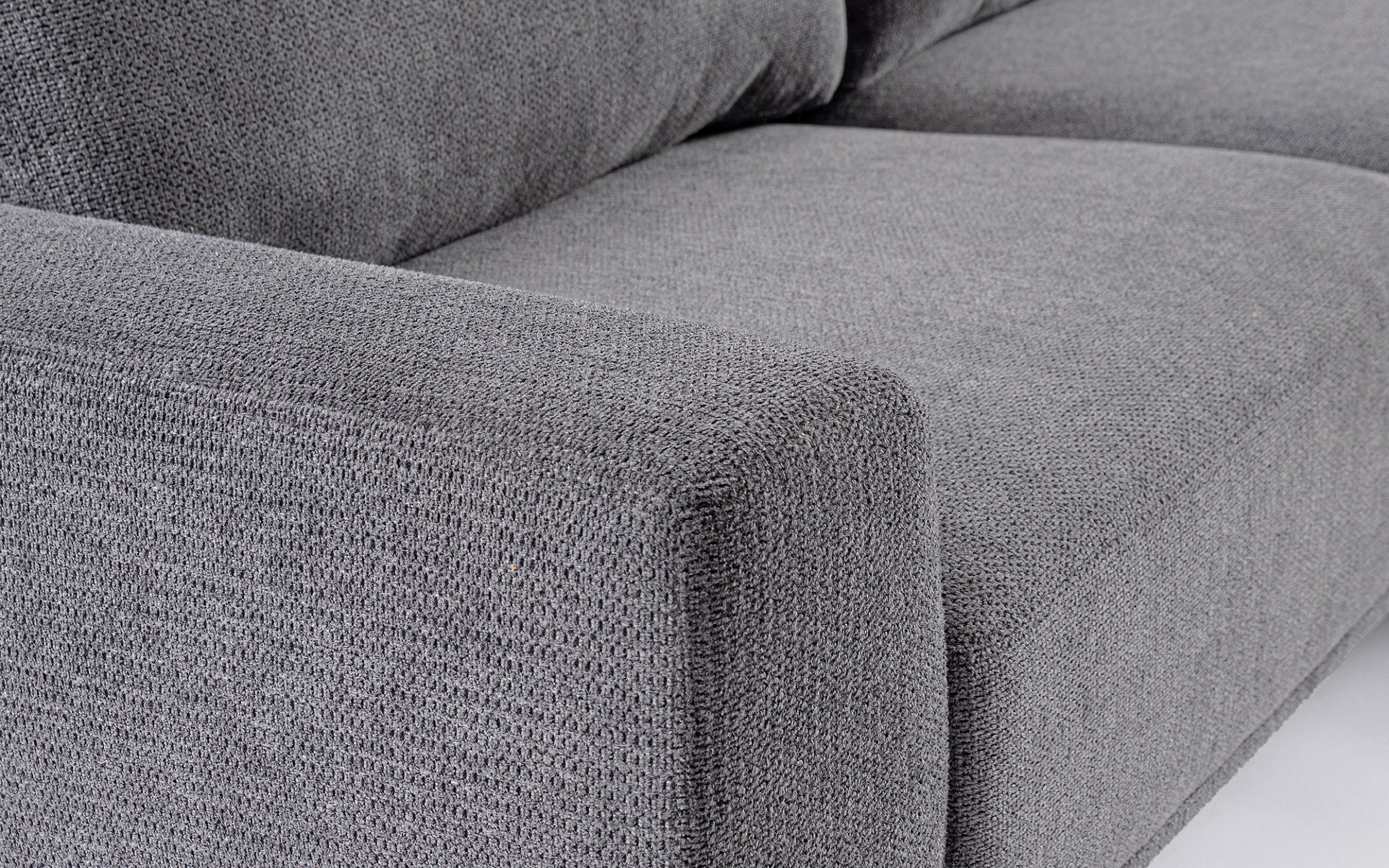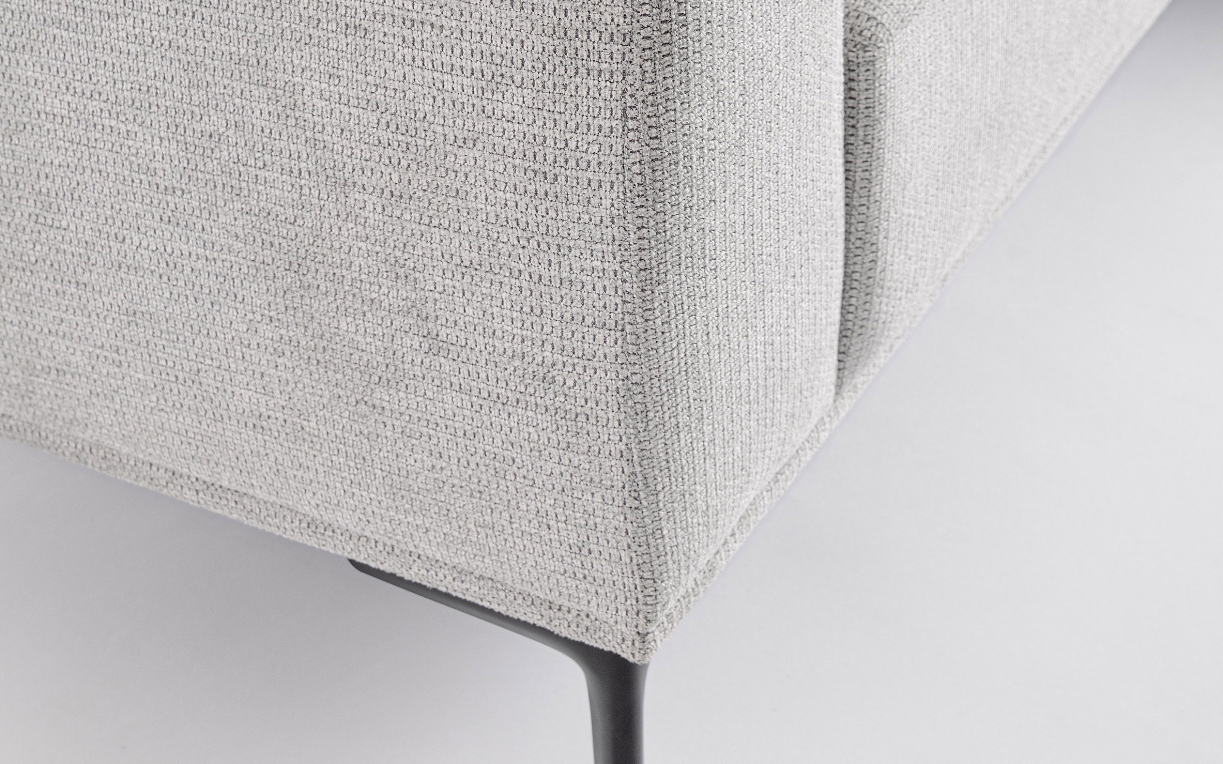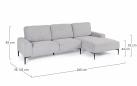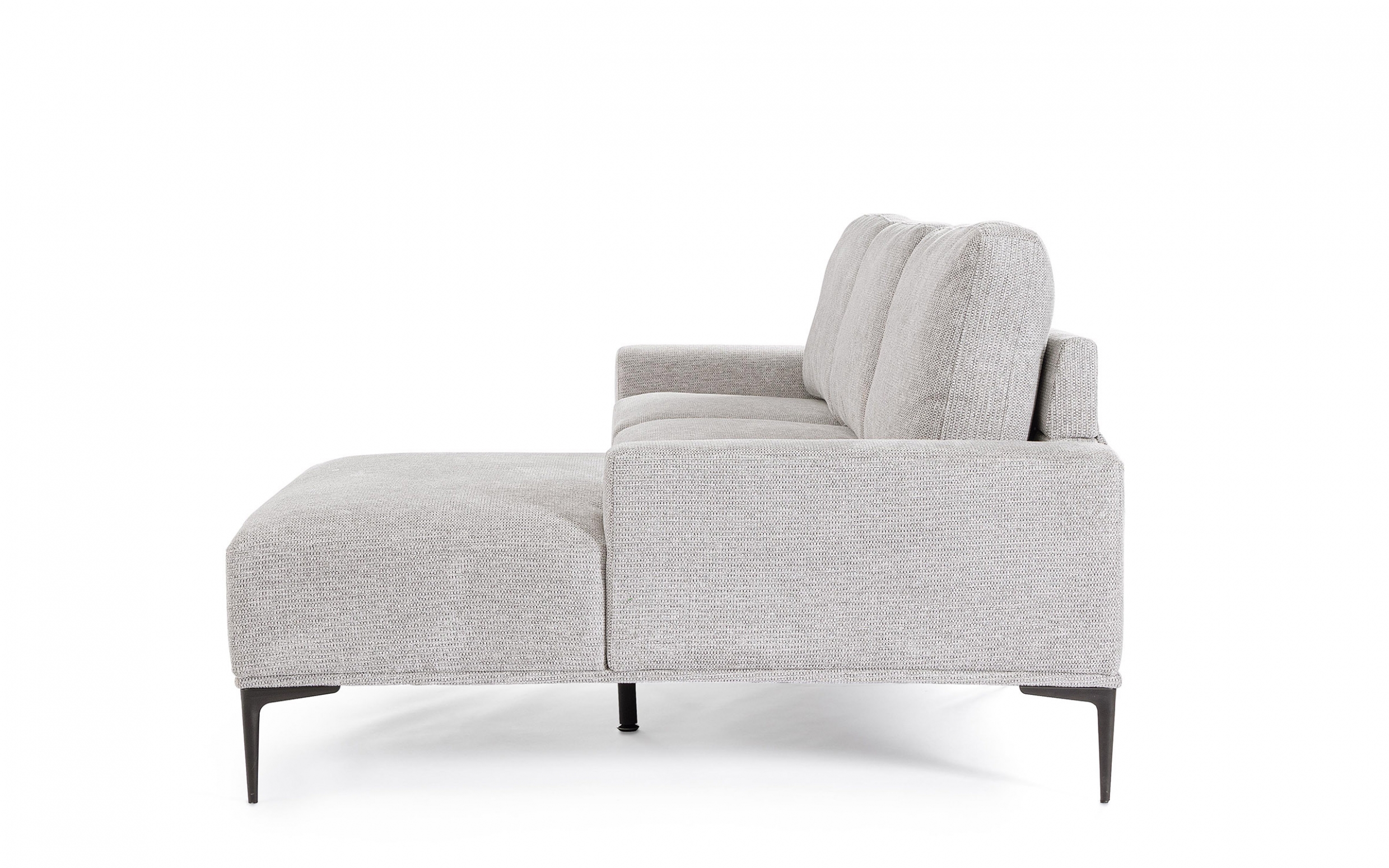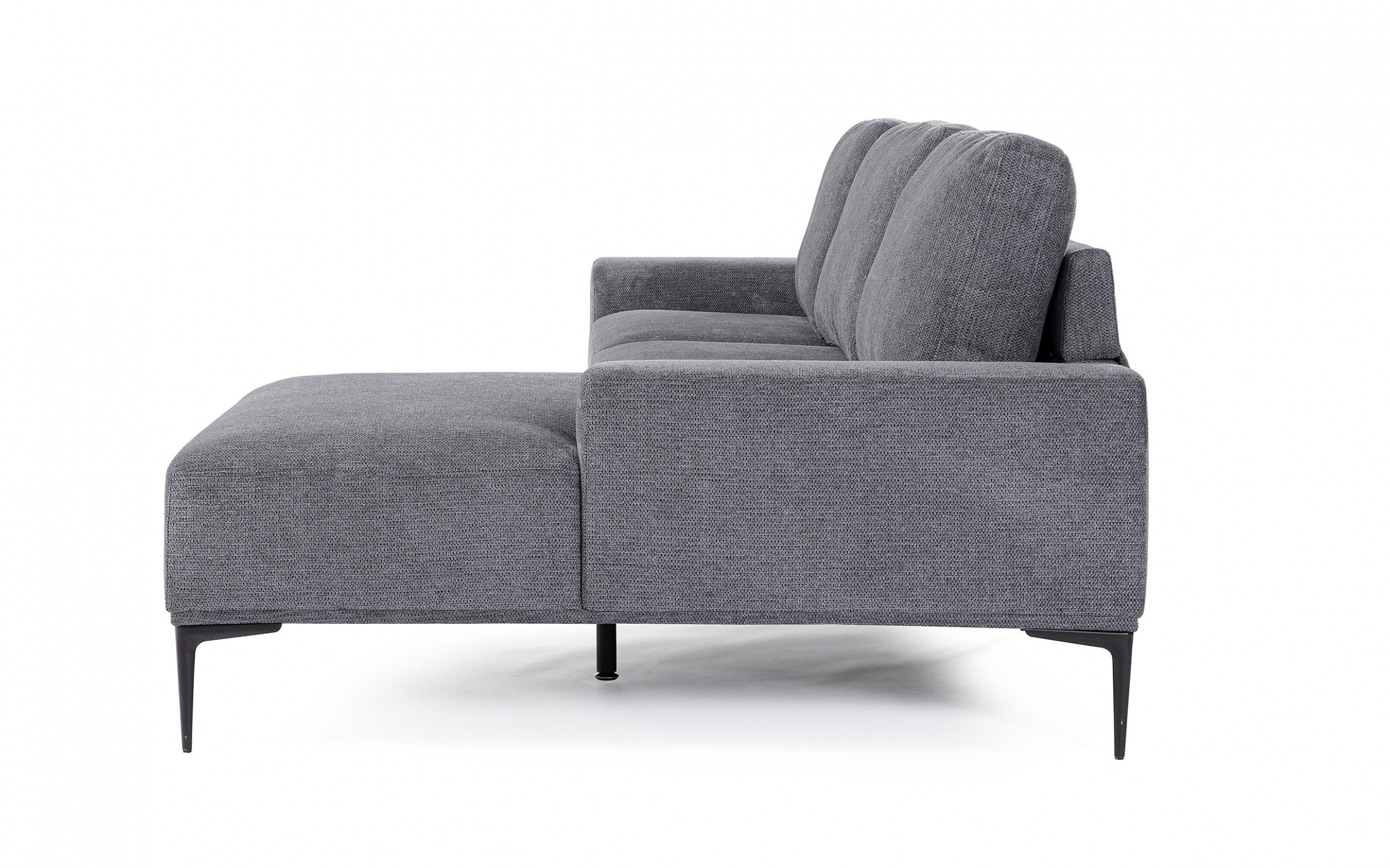 Sofa WASHINGTON to elegancki i nowoczesny mebel wypoczynkowy, który łączy wygodę z wysoką jakością wykonania. Konstrukcja została wykonana z drewna eukaliptusowego, a solidne nogi ze stali malowanej proszkowo w technologii epoksydowej gwarantują stabilność i trwałość. Siedzisko i oparcie wypełniono pianką poliuretanową oraz włóknem polipropylenowym o zróżnicowanej gęstości 22–28 kg/m³, co zapewnia wyjątkowy komfort użytkowania. Do zestawu dołączone są kwadratowe poduszki ze zdejmowanymi pokrowcami, ułatwiające pielęgnację. Sofa WASHINGTON z szezlongiem doskonale sprawdzi się w nowoczesnym salonie, oferując idealne miejsce do relaksu.