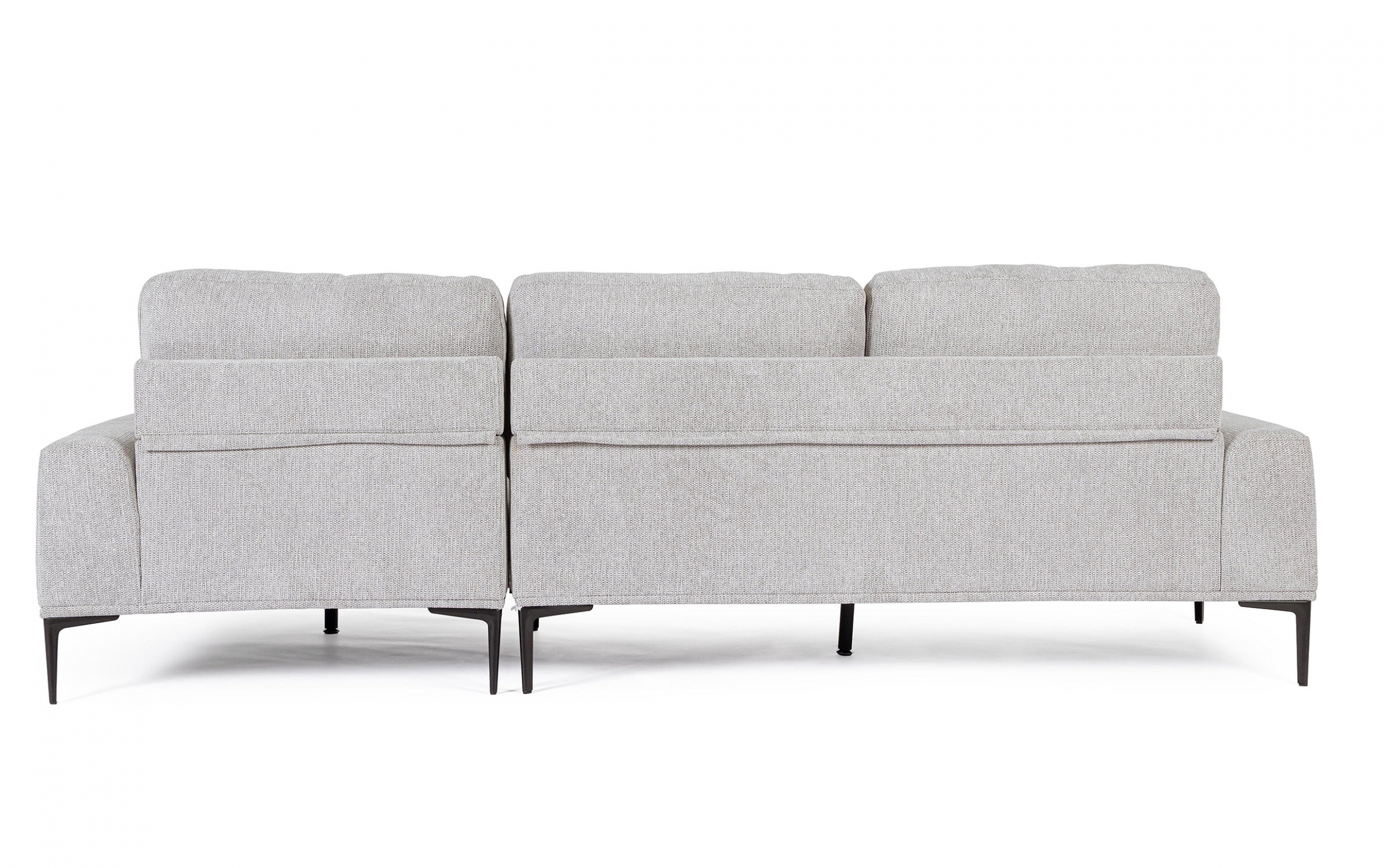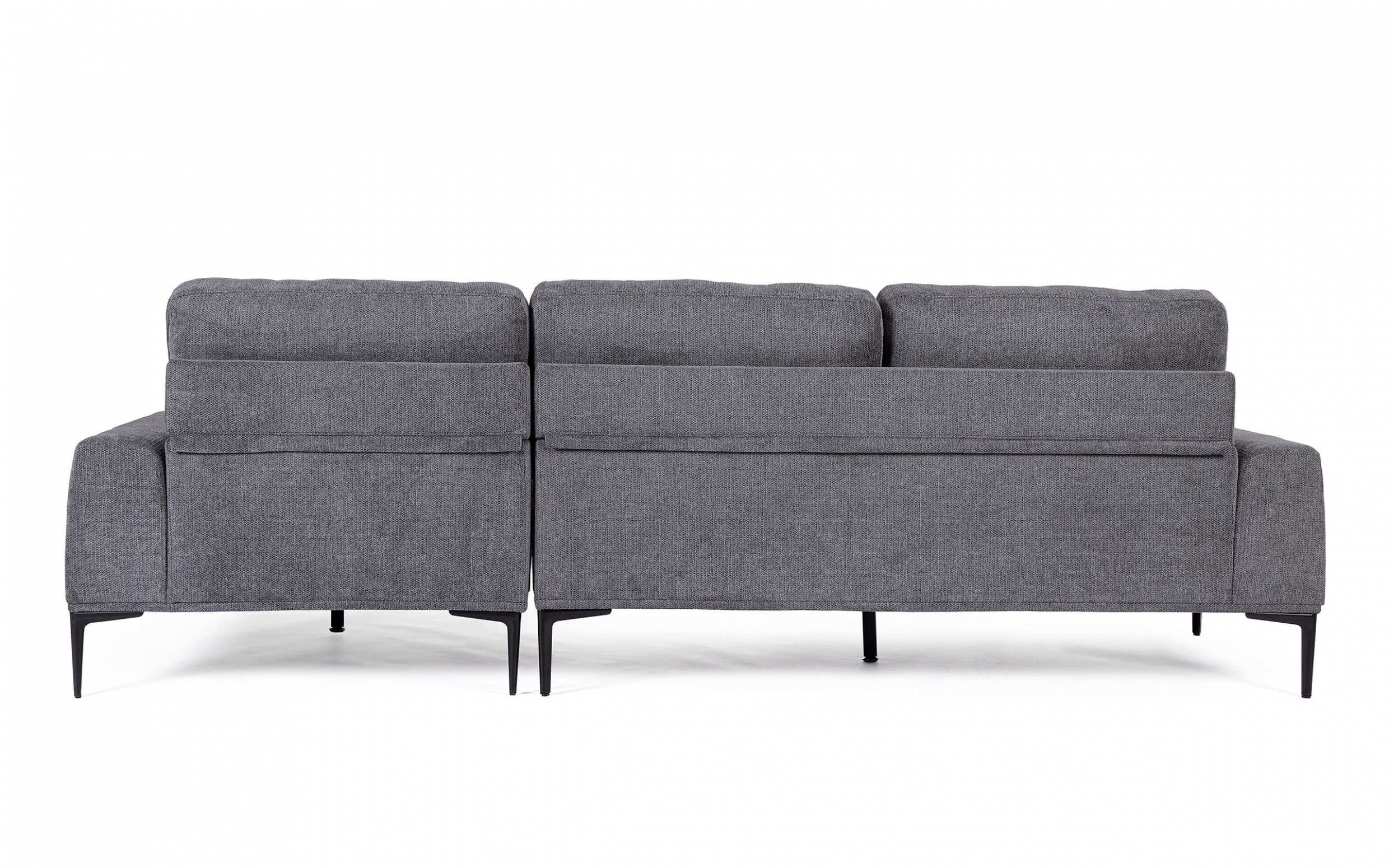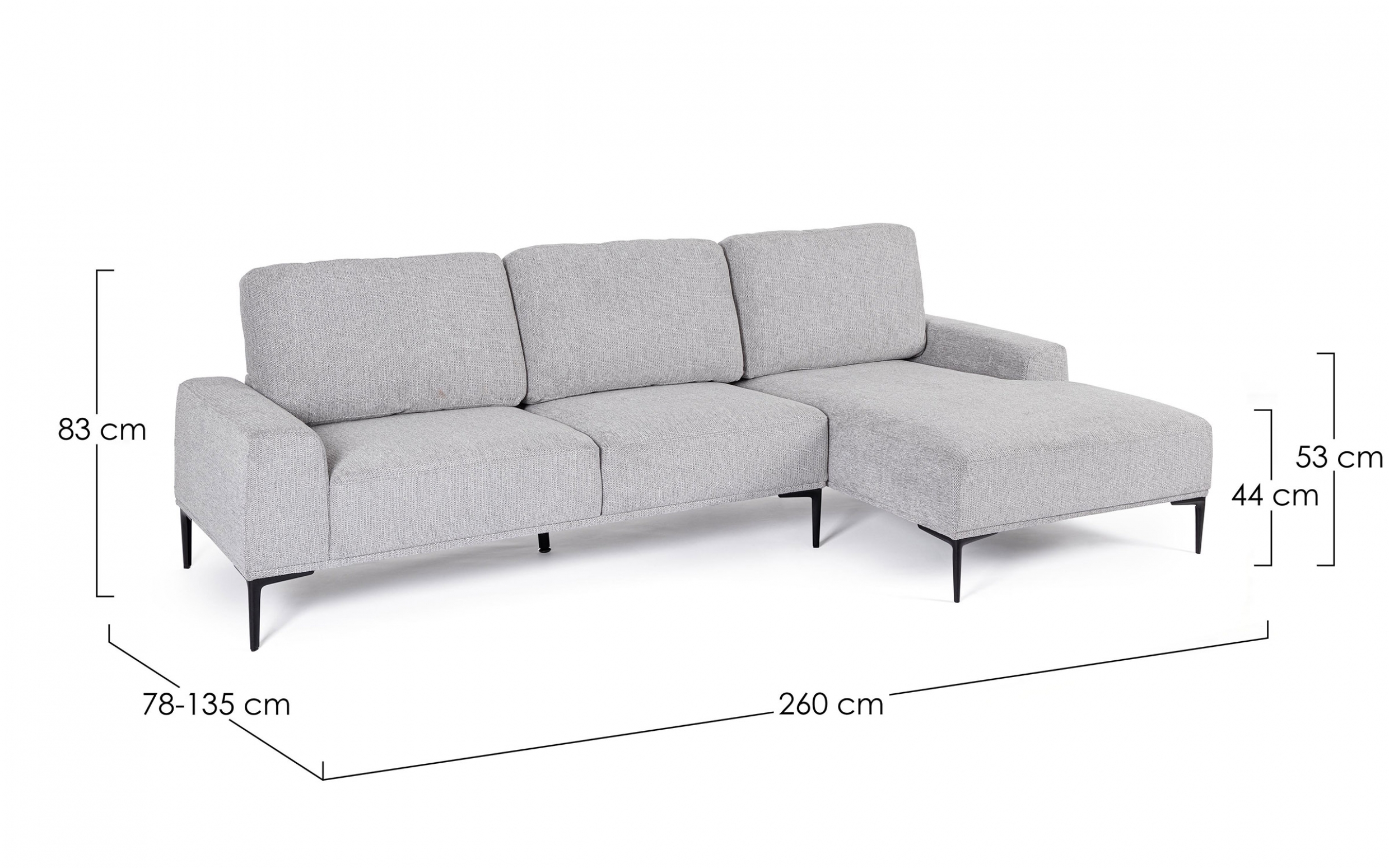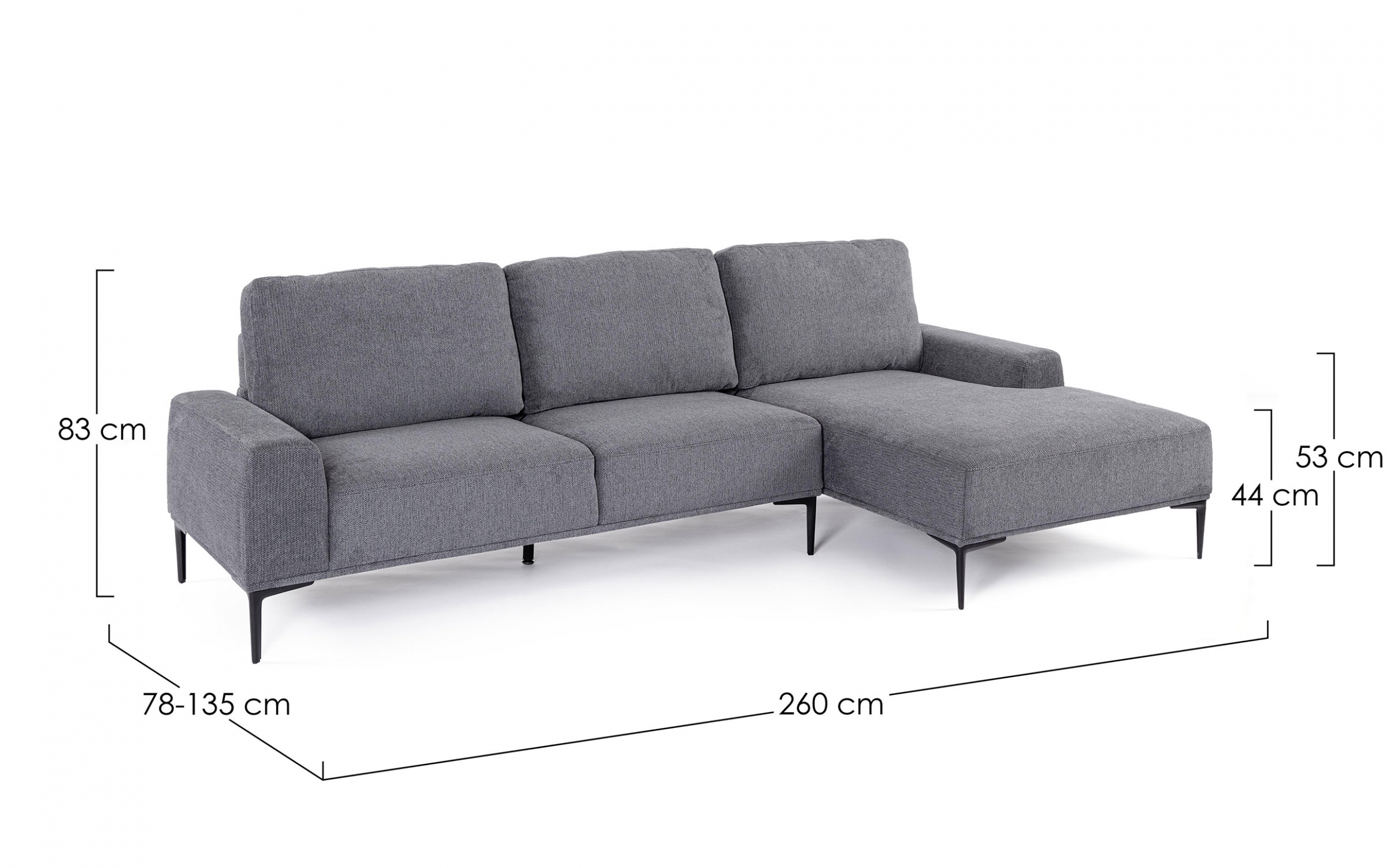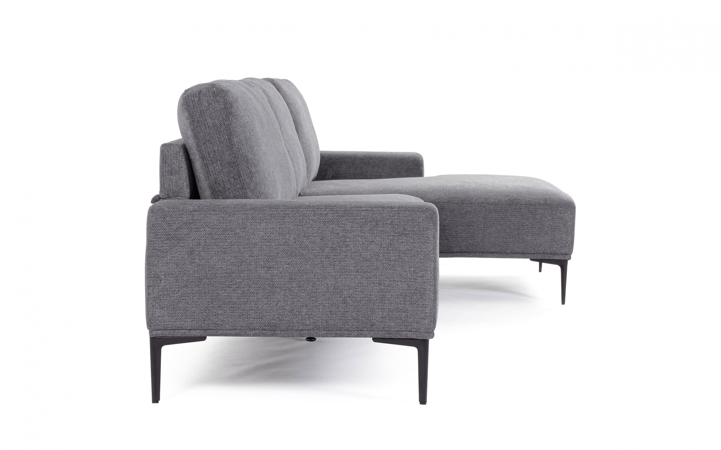 Sofa WASHINGTON to elegancki i nowoczesny mebel wypoczynkowy, który łączy wygodę z wysoką jakością wykonania. Konstrukcja została wykonana z drewna eukaliptusowego, a solidne nogi ze stali malowanej proszkowo w technologii epoksydowej gwarantują stabilność i trwałość. Siedzisko i oparcie wypełniono pianką poliuretanową oraz włóknem polipropylenowym o zróżnicowanej gęstości 22–28 kg/m³, co zapewnia wyjątkowy komfort użytkowania. Do zestawu dołączone są kwadratowe poduszki ze zdejmowanymi pokrowcami, ułatwiające pielęgnację. Sofa WASHINGTON z szezlongiem doskonale sprawdzi się w nowoczesnym salonie, oferując idealne miejsce do relaksu.