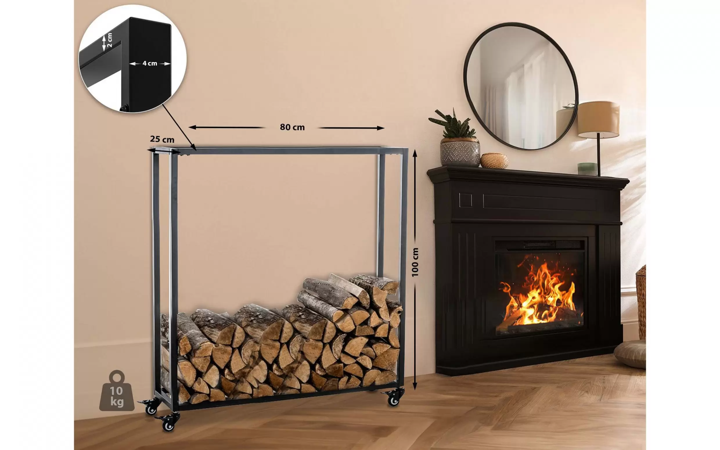 Stojak służy jako praktyczne i czyste rozwiązanie do przechowywania drewna opałowego, a jednocześnie tworzy przyjemną minimalistyczną atmosferę w domu. Przemyślana praktyczna konstrukcja z kółkami pozwala z łatwością przestawiać stojak na drewno opałowe w dowolne miejsce. Kółka rolkowe umożliwiają bezpieczny transport i przechowywanie drewna tuż obok kominka. Możesz bezpiecznie przechowywać drewno, układać je w ramie stojaka i szybko wykorzystać, gdy zajdzie taka potrzeba. Nasz stojak na drewno opałowe jest dostępny w wykonaniu ze stali nierdzewnej lub stali lakierowanej na czarno i w kilku wersjach rozmiarowych.