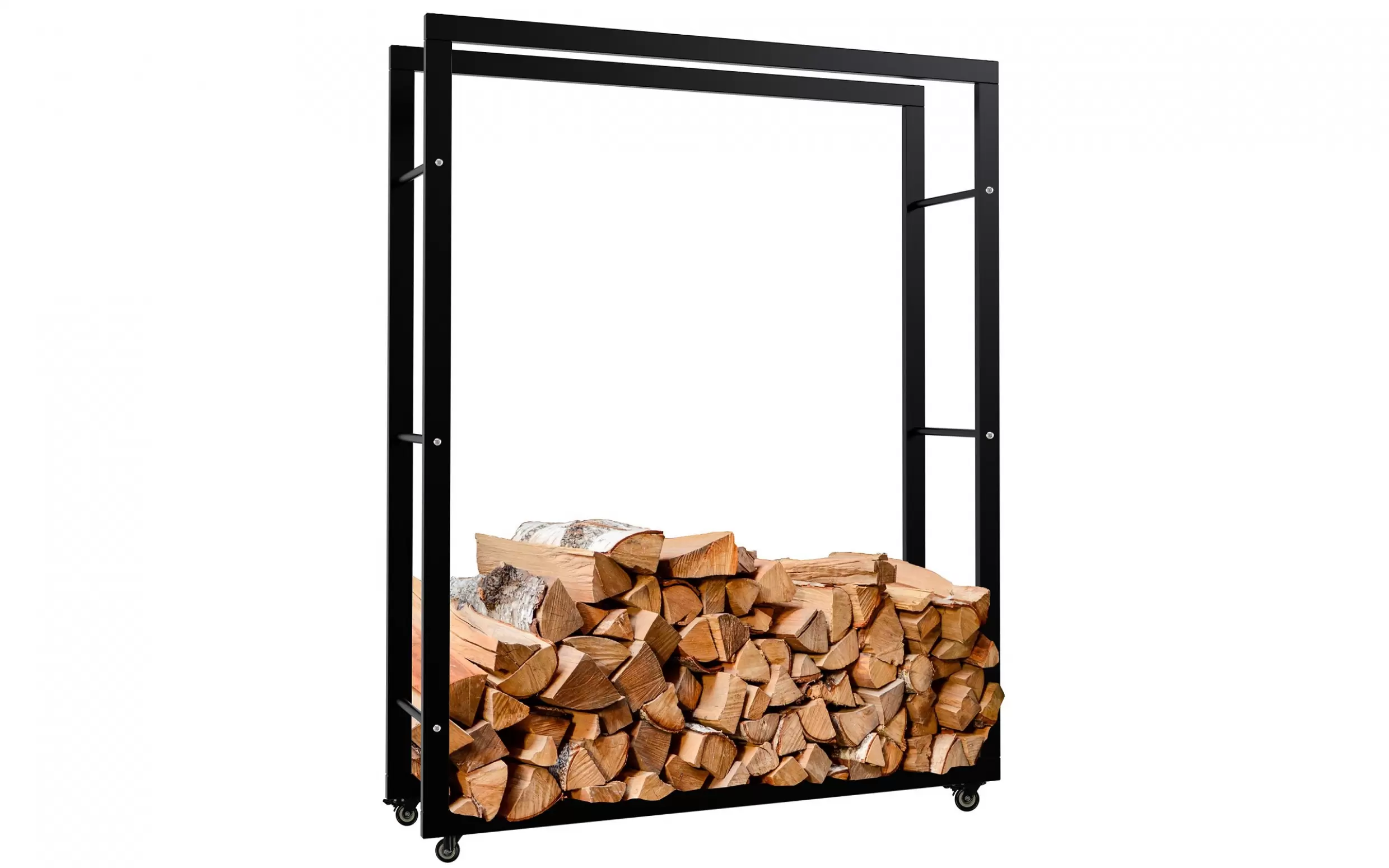 Szczególnie praktyczne są cztery koła, na których znajdują się stojaki do przechowywania drewna opałowego. Oznacza to, że można go łatwo przestawiać. Hamulec blokujący zapobiega przypadkowemu stoczeniu się. Kółka szczególnie nadają się do twardych podłóg i nie uszkadzają ich dzięki gumowej powierzchni.