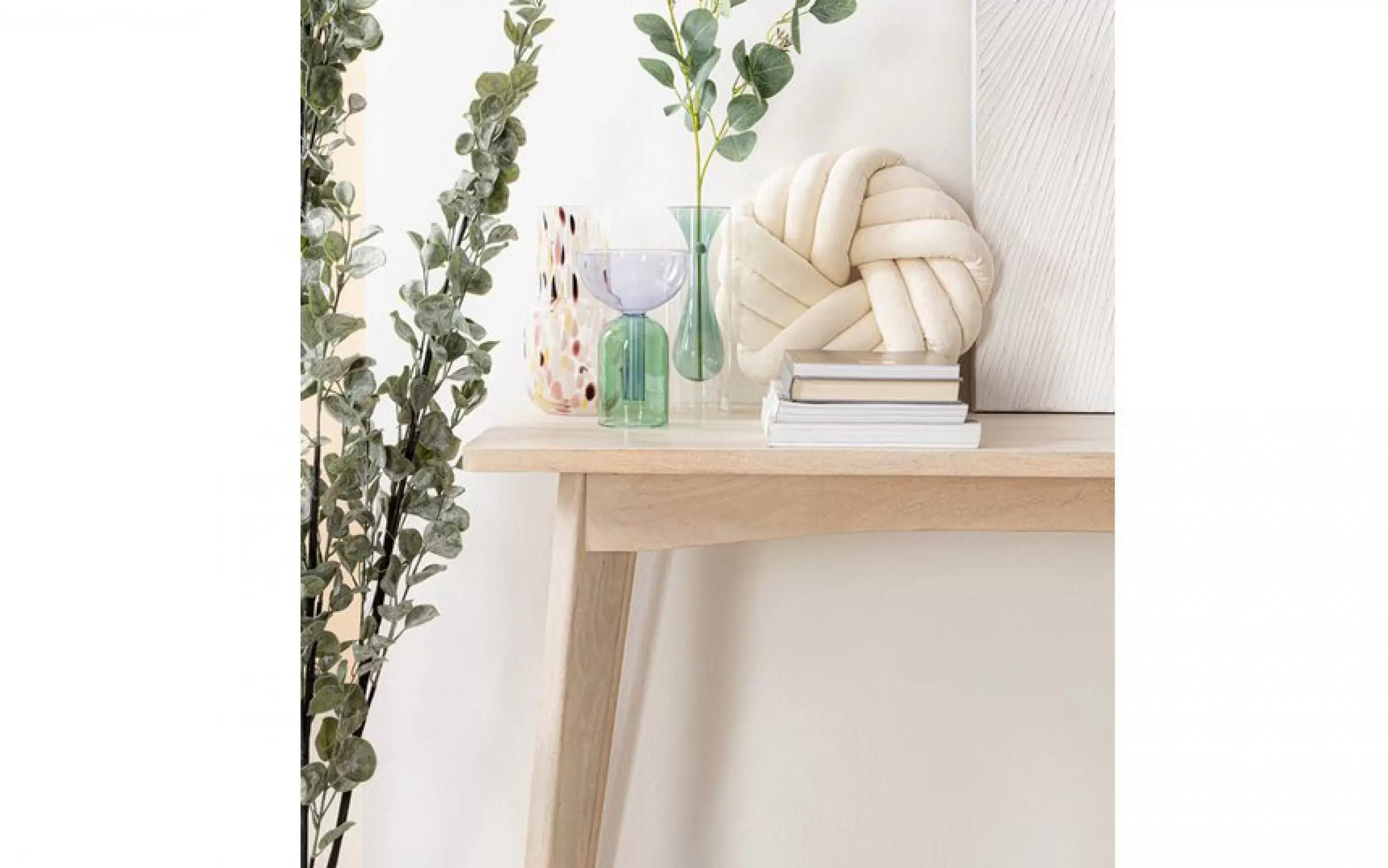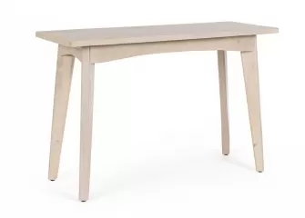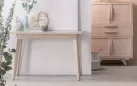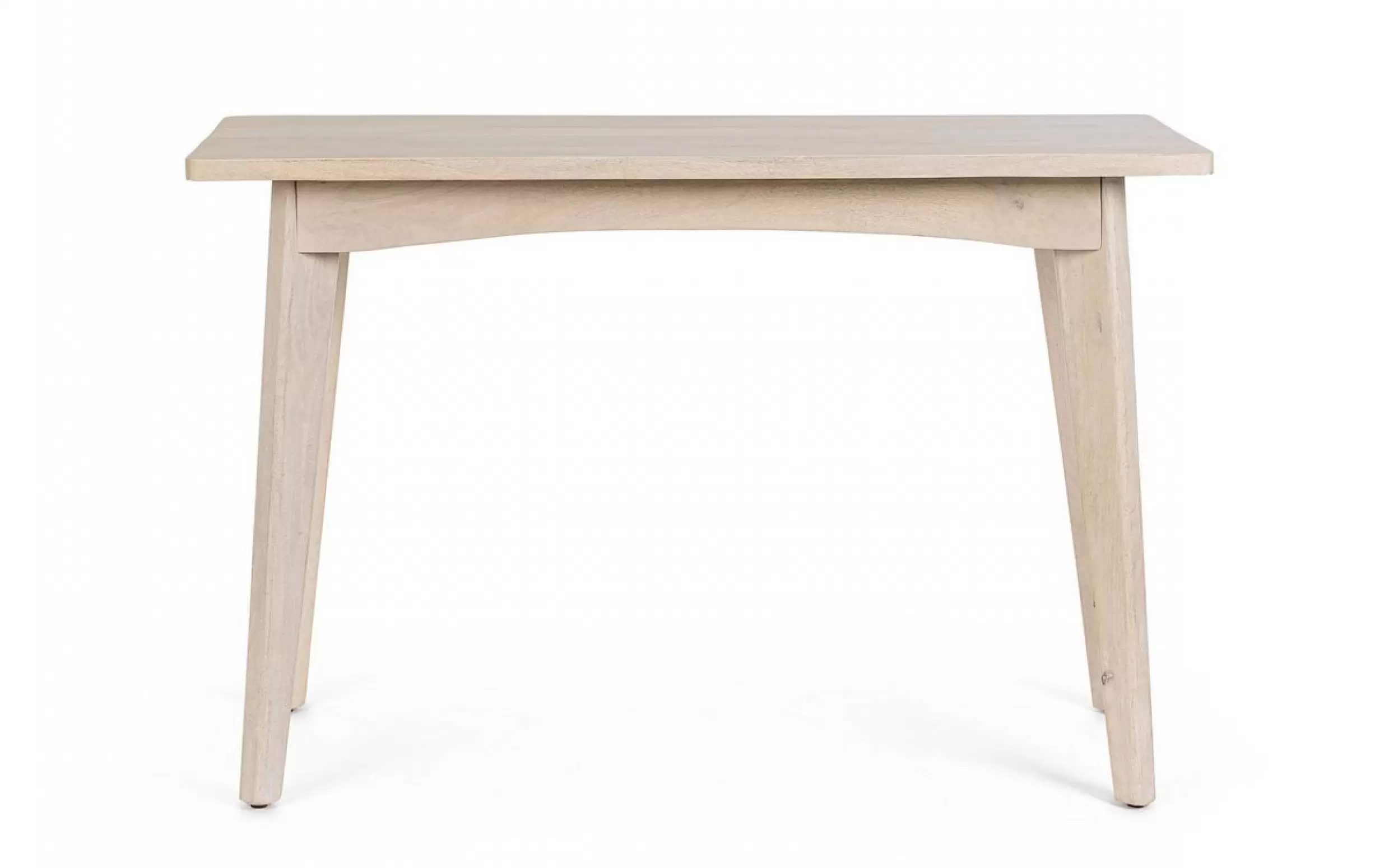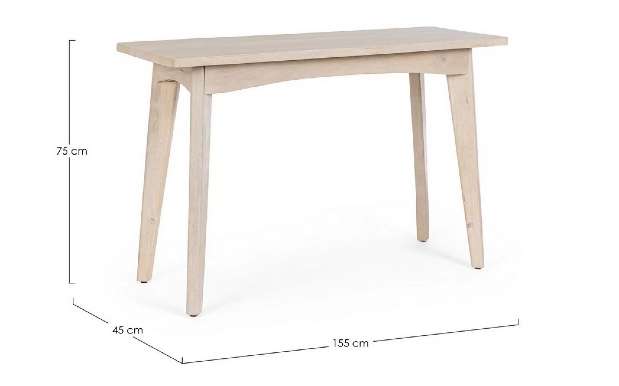 Konsola SAHANA marki Bizzotto to wyjątkowy mebel w naturalnym stylu, który doskonale sprawdzi się w salonie, przedpokoju lub sypialni. Konstrukcja wykonana z drewna mango zapewnia trwałość i elegancki wygląd. Wykończenie white wash podkreśla naturalną strukturę drewna, nadając całości jasny i świeży charakter.