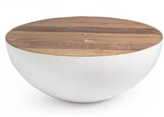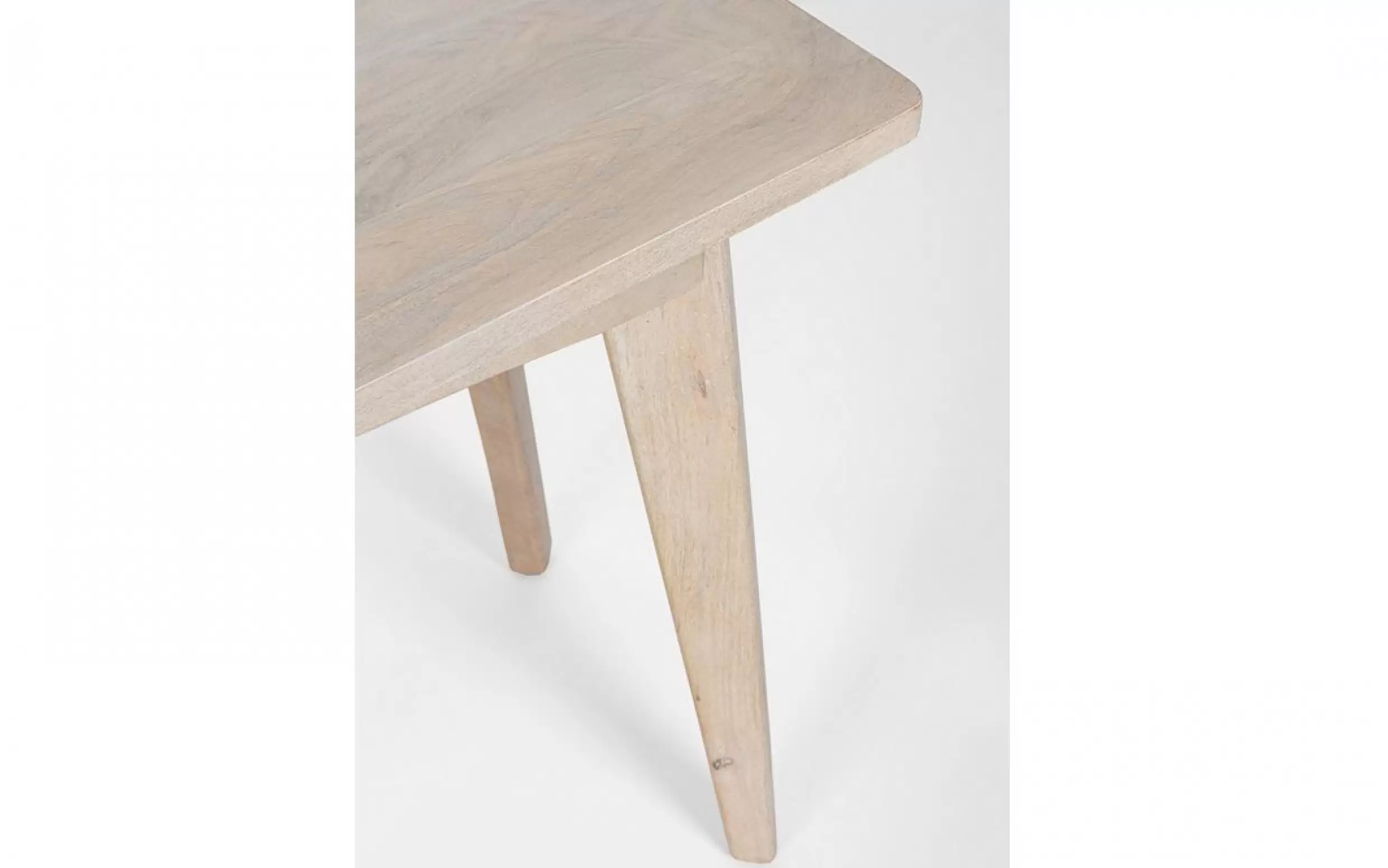 Korpus z drewna mango – trwały, naturalny materiał o wyraźnej strukturze. Wykończenie nitrocelulozowe w kolorze white wash – subtelne rozjaśnienie powierzchni, podkreślające naturalne usłojenie.