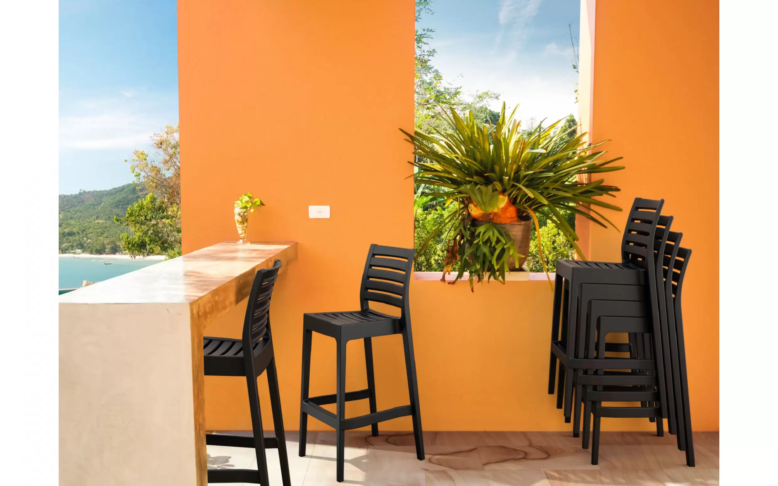 Nawet intensywne światło słoneczne nie powoduje żółknięcia i blaknięcia plastiku. Głębia koloru stołków barowych zostaje zachowana na długo. Stołki świetnie się prezentują się na tarasie lub balkonie.