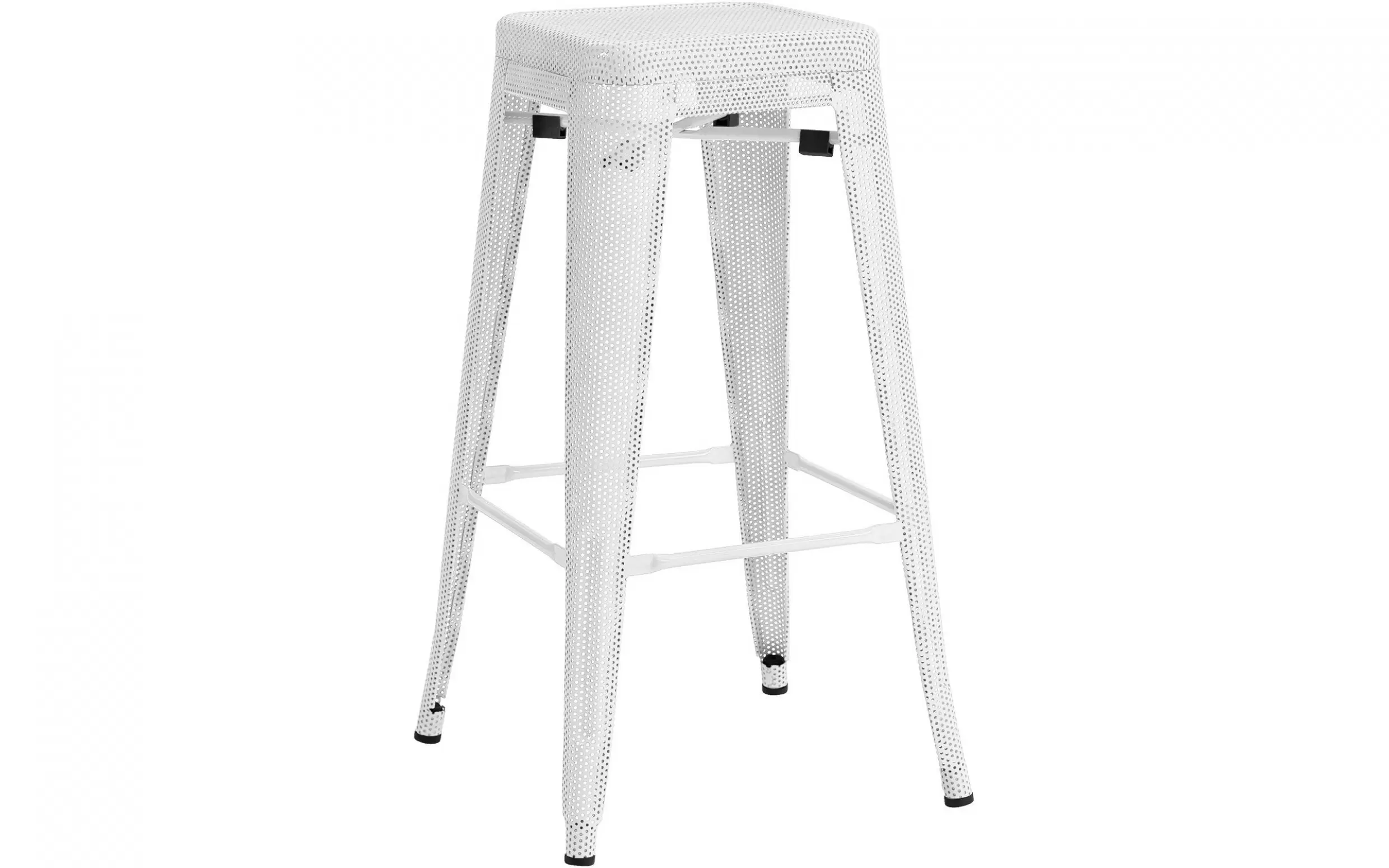 Wyposażony w perforowaną metalową konstrukcję, stołek łączy wizualną lekkość ze stabilnością i wspiera obciążenie do 120 kg. Jest stosunkowo łatwy do przechowywania, ponieważ można go układać w stosy, co czyni go idealnym rozwiązaniem w miejscach o ograniczonej przestrzeni.