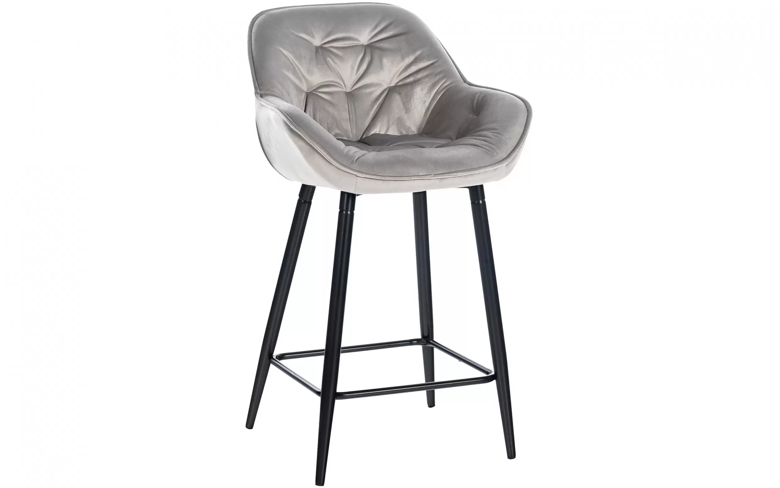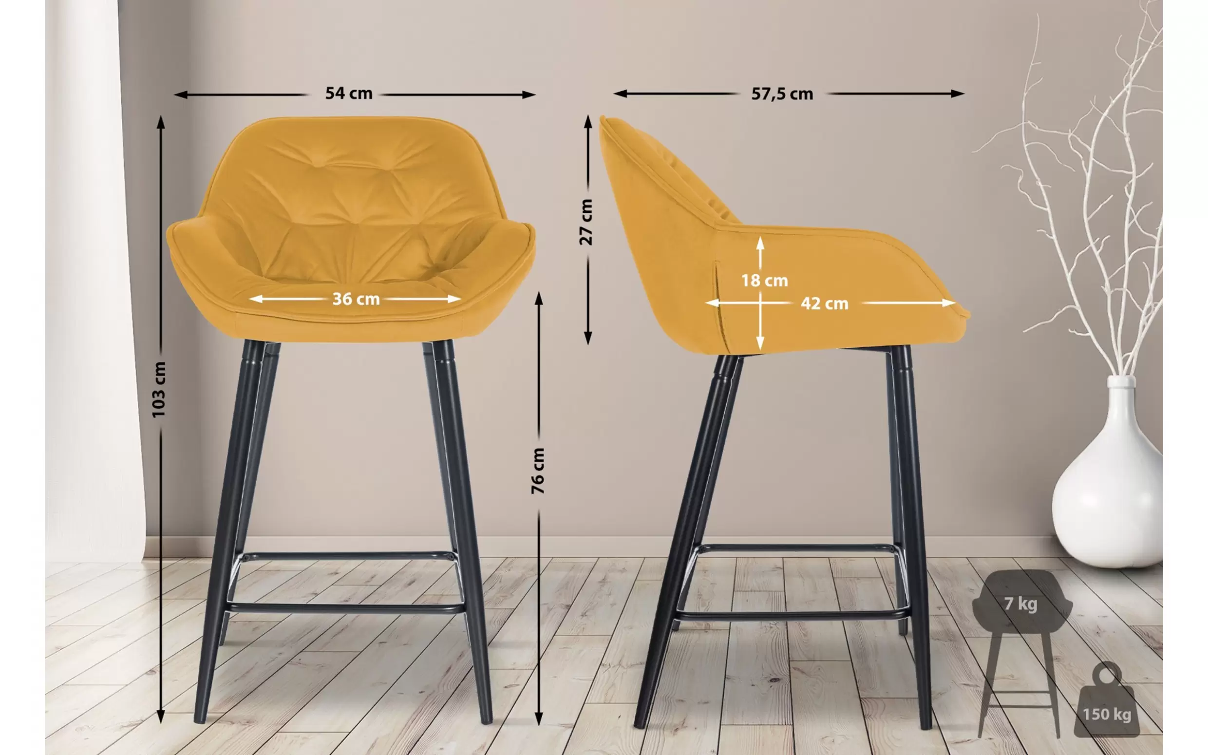 Stołek dostępny są w wersji z pikowanym pokryciem materiałowym lub welurowym oraz w różnych kolorach.