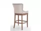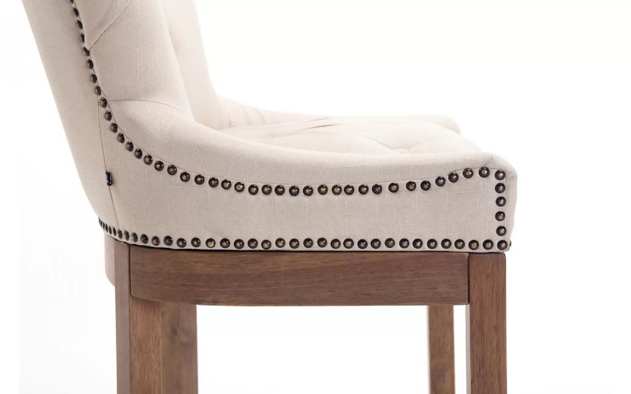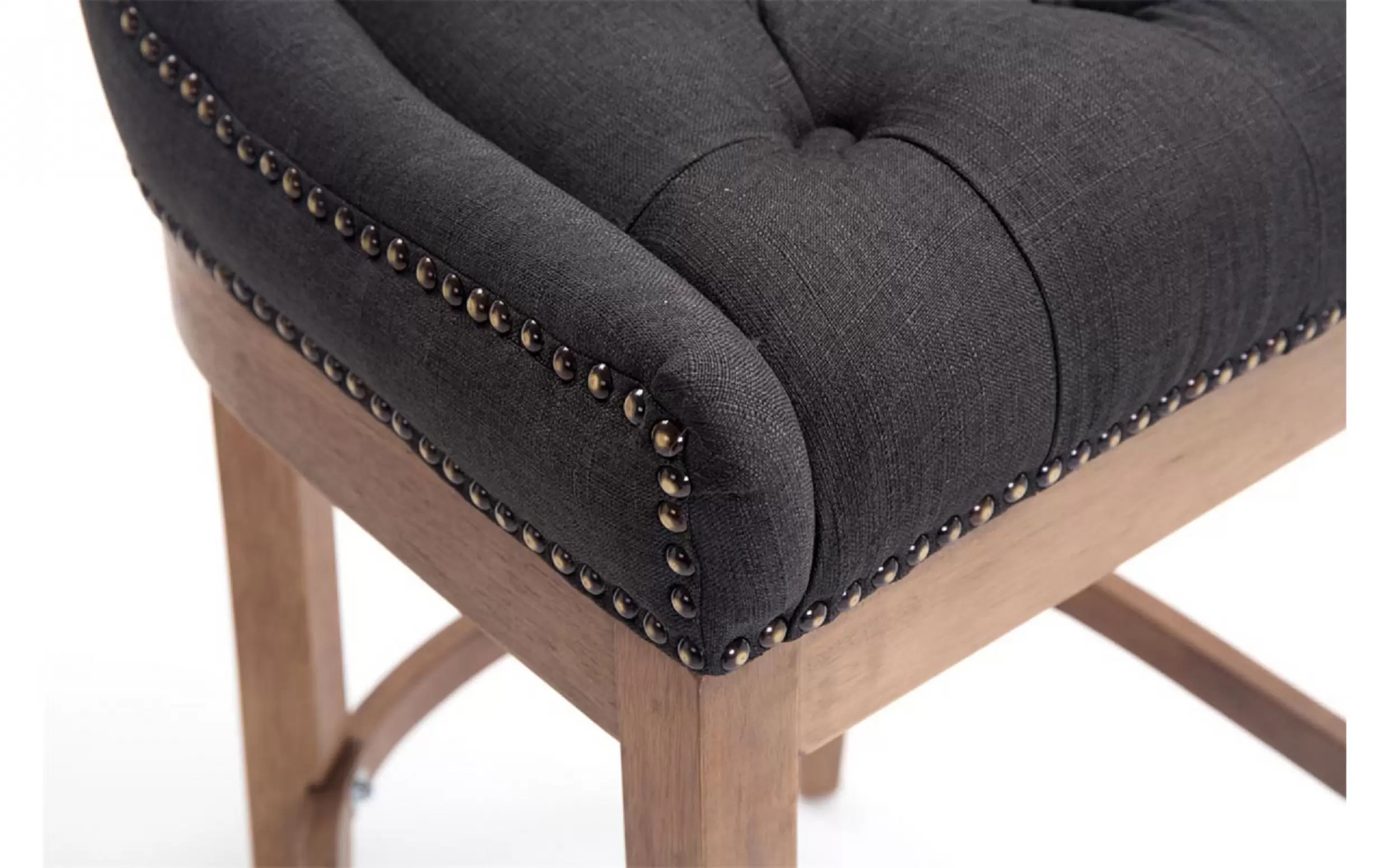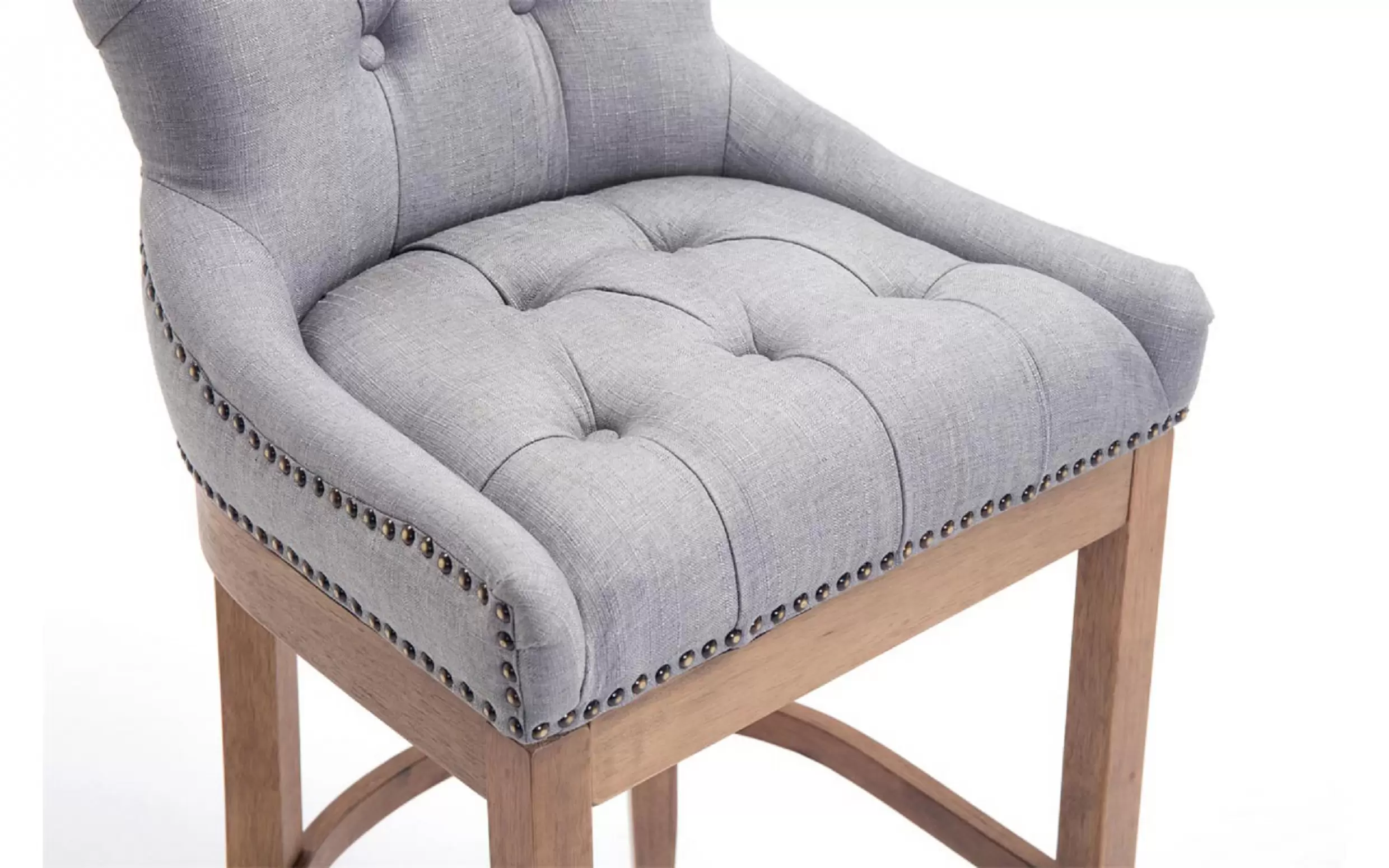 Hoker barowy Lake to drewniany stołek barowy wykonany z drewna kauczukowego. Zachwyca nie tylko wysoką jakością wykonania – stołek przyciąga wzrok również wizualnie. Tapicerowane siedzisko z tkaniny zapewnia najwyższy poziom komfortu siedzenia, a harmonijne zestawienie siedziska i drewnianej ramy wygląda bardzo elegancko i nadaje każdemu barowi wyjątkowy charakter. Ozdobne mosiężne ćwieki biegnące wzdłuż zewnętrznego szwu są efektowne i jednocześnie stylowe. Ćwieki i szwy na siedzisku również uszlachetniają stołek i czynią go wyjątkowym. Wysokie oparcie i podnóżek pozwalają na wygodne siedzenie godzinami.