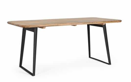 Charakterystyczne połączenie metalowych nóg z drewnianym blatem nadaje wnętrzu loftowy klimat.