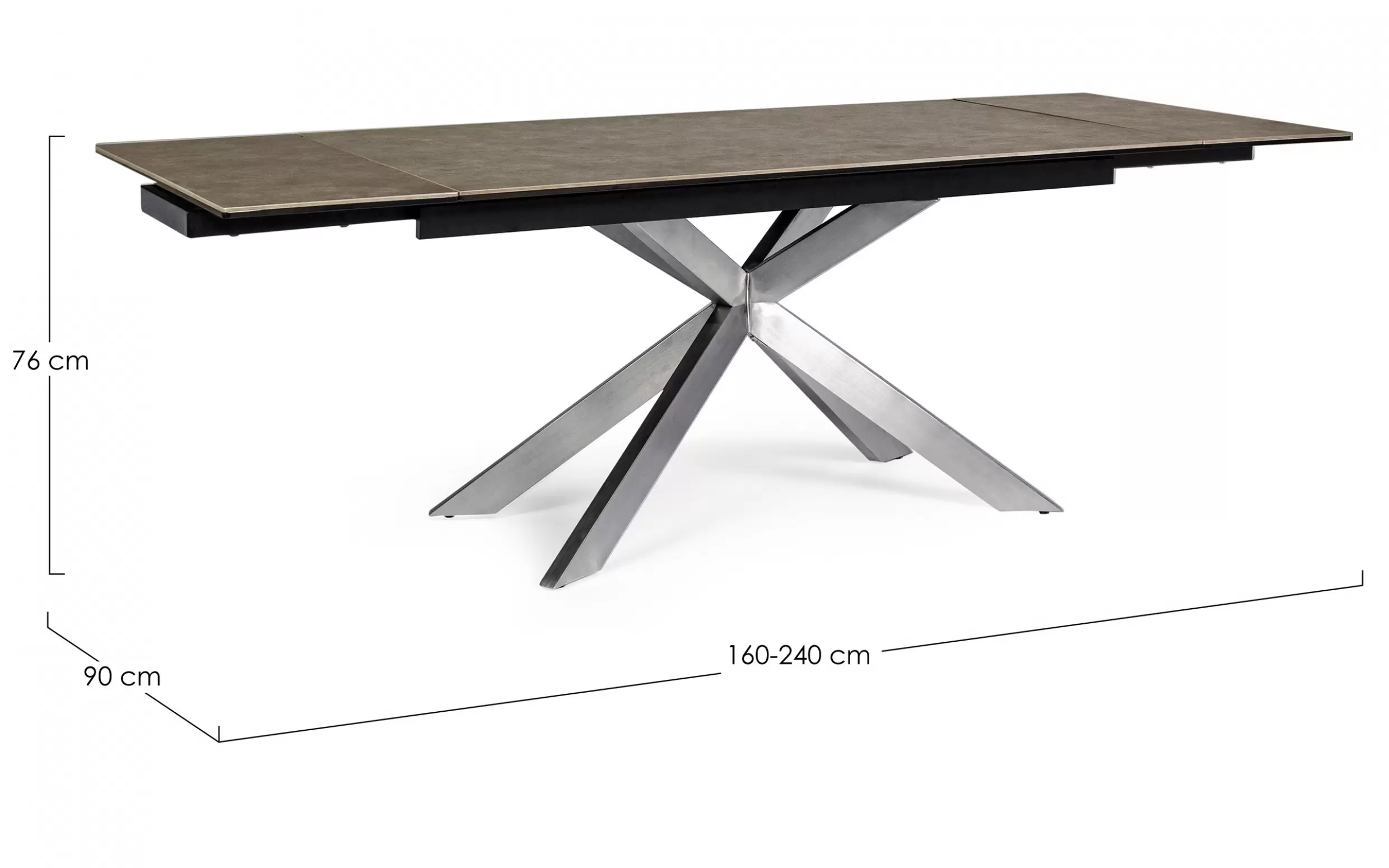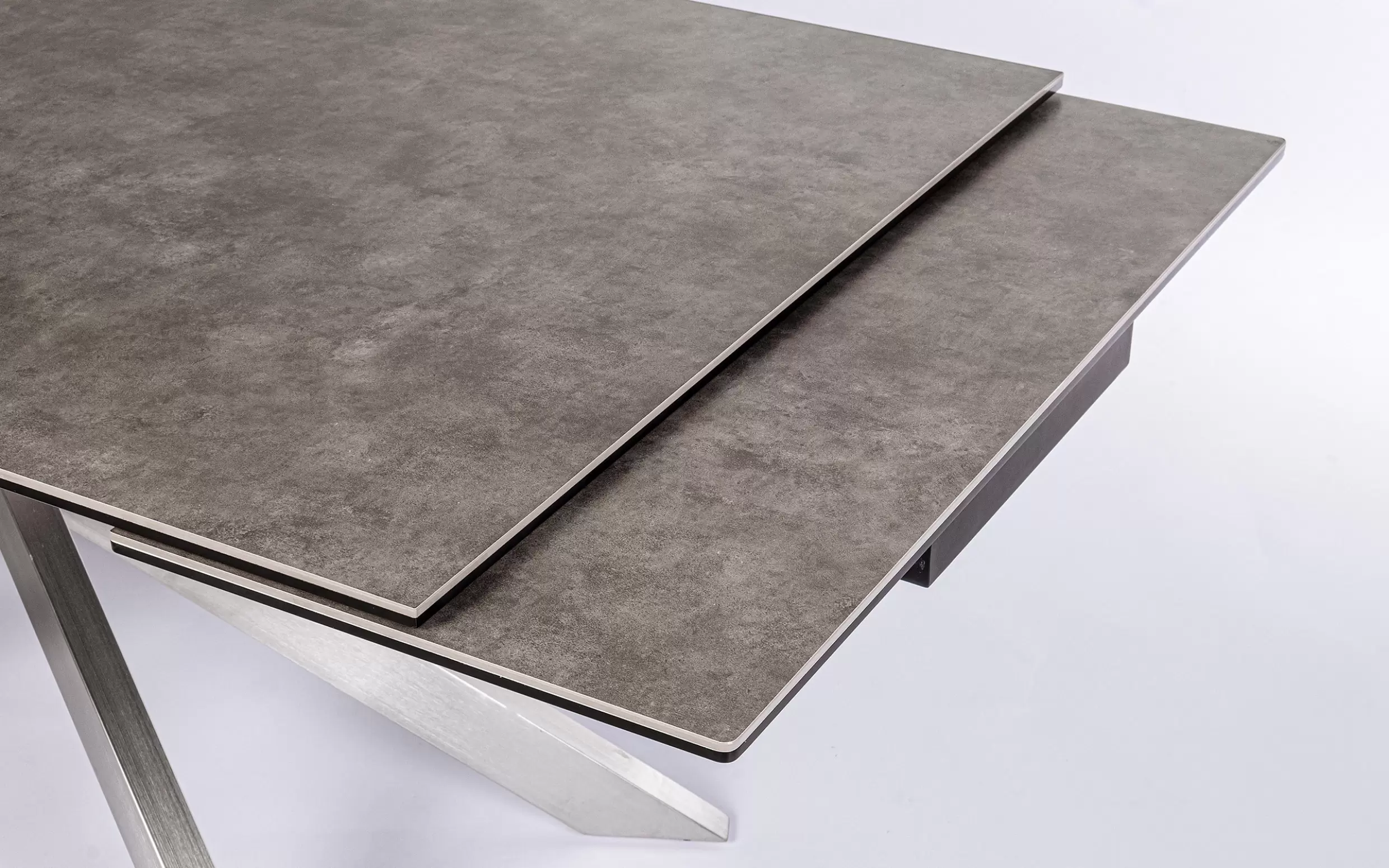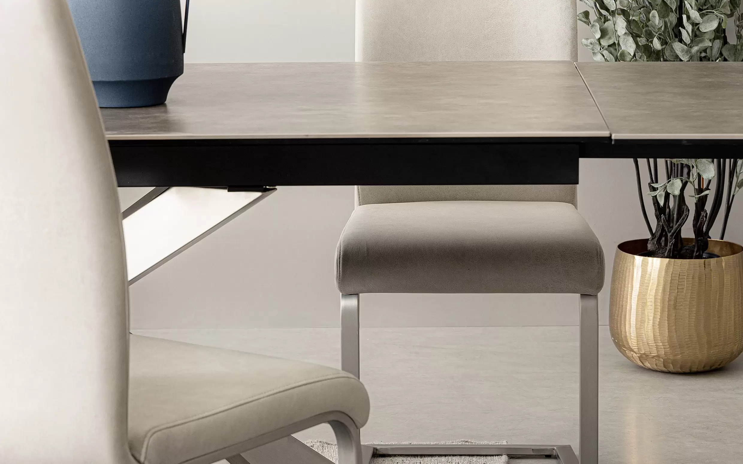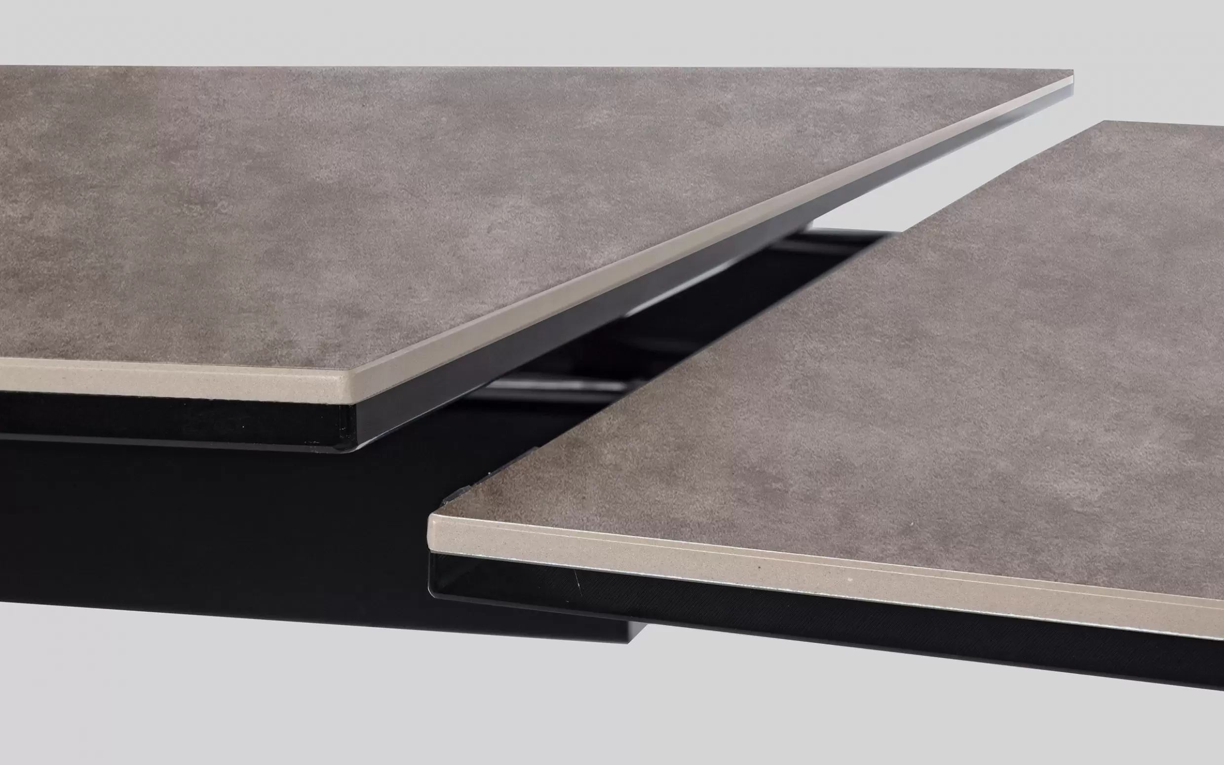 Stół ARZACHEL 160–240×90 to elegancki i praktyczny mebel, który idealnie wpisuje się w nowoczesne wnętrza. Jego stabilna konstrukcja opiera się na ramie ze stali nierdzewnej, zapewniającej trwałość i odporność na korozję. Blat wykonany został z gresu ceramicznego o grubości 5 mm, wspartego szybą z hartowanego szkła o grubości 8 mm, co gwarantuje wyjątkową wytrzymałość. Dzięki funkcji rozkładania stół można łatwo powiększyć z 160 do 240 cm, co sprawia, że jest idealny na rodzinne obiady i spotkania towarzyskie.