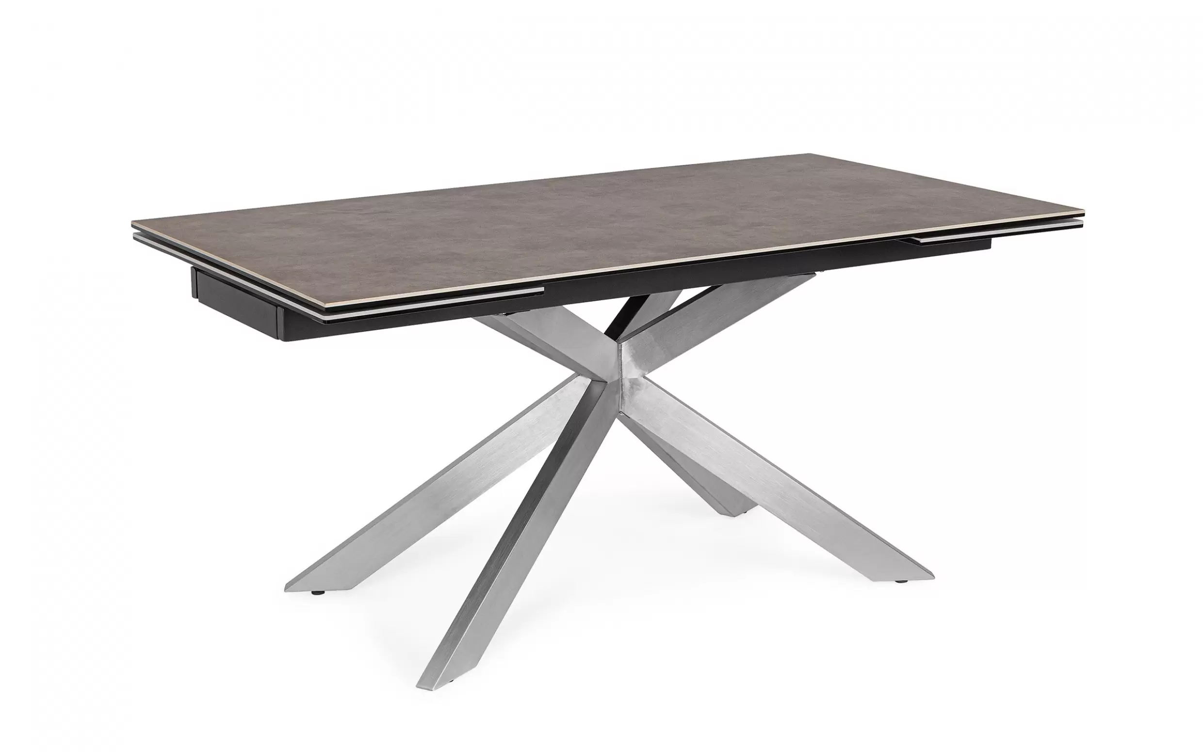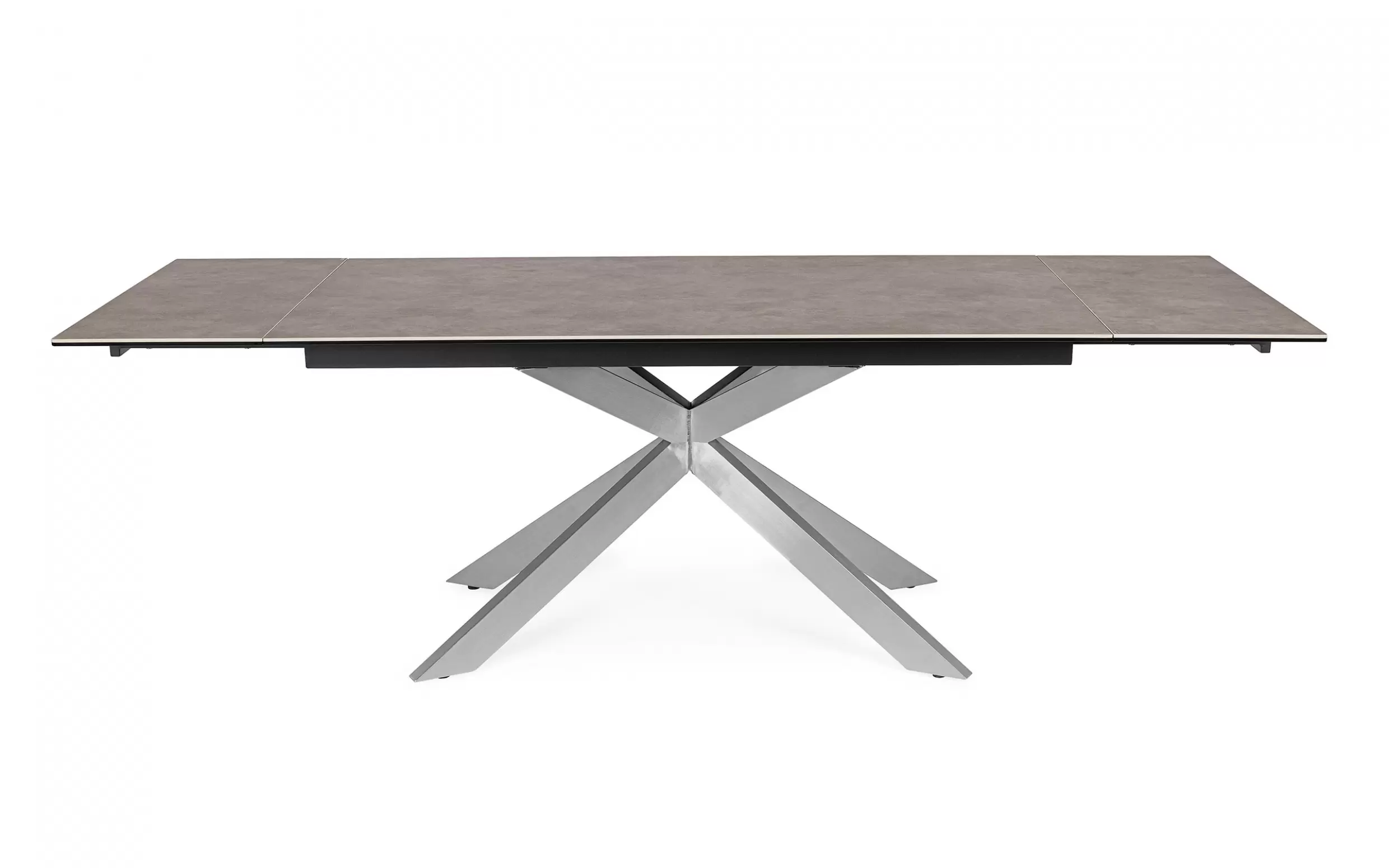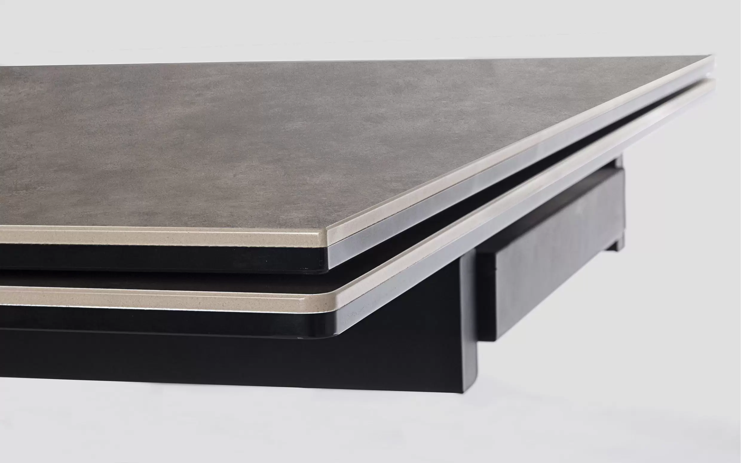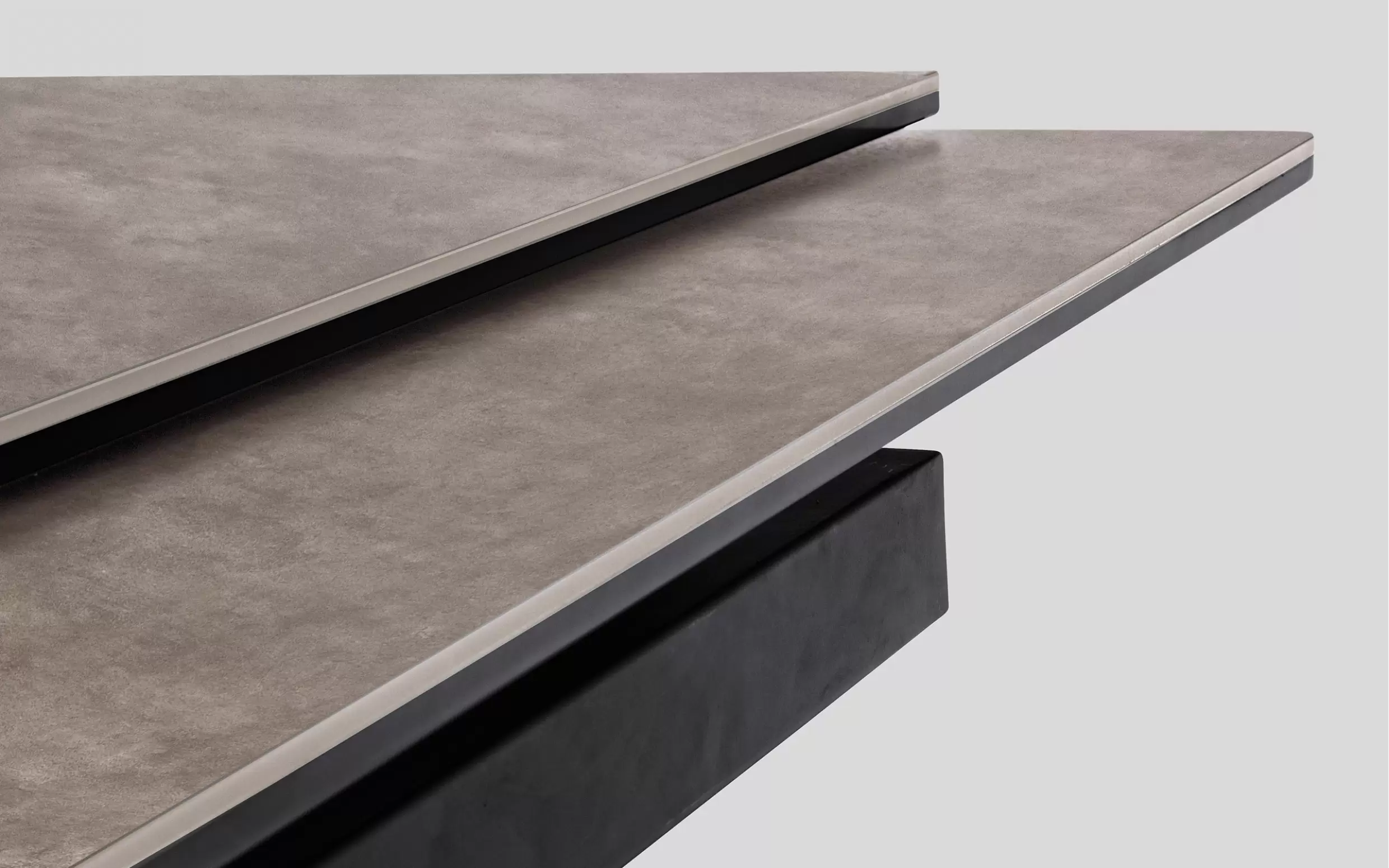 Stół ARZACHEL 160–240×90 to elegancki i praktyczny mebel, który idealnie wpisuje się w nowoczesne wnętrza. Jego stabilna konstrukcja opiera się na ramie ze stali nierdzewnej, zapewniającej trwałość i odporność na korozję. Blat wykonany został z gresu ceramicznego o grubości 5 mm, wspartego szybą z hartowanego szkła o grubości 8 mm, co gwarantuje wyjątkową wytrzymałość. Dzięki funkcji rozkładania stół można łatwo powiększyć z 160 do 240 cm, co sprawia, że jest idealny na rodzinne obiady i spotkania towarzyskie.