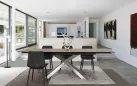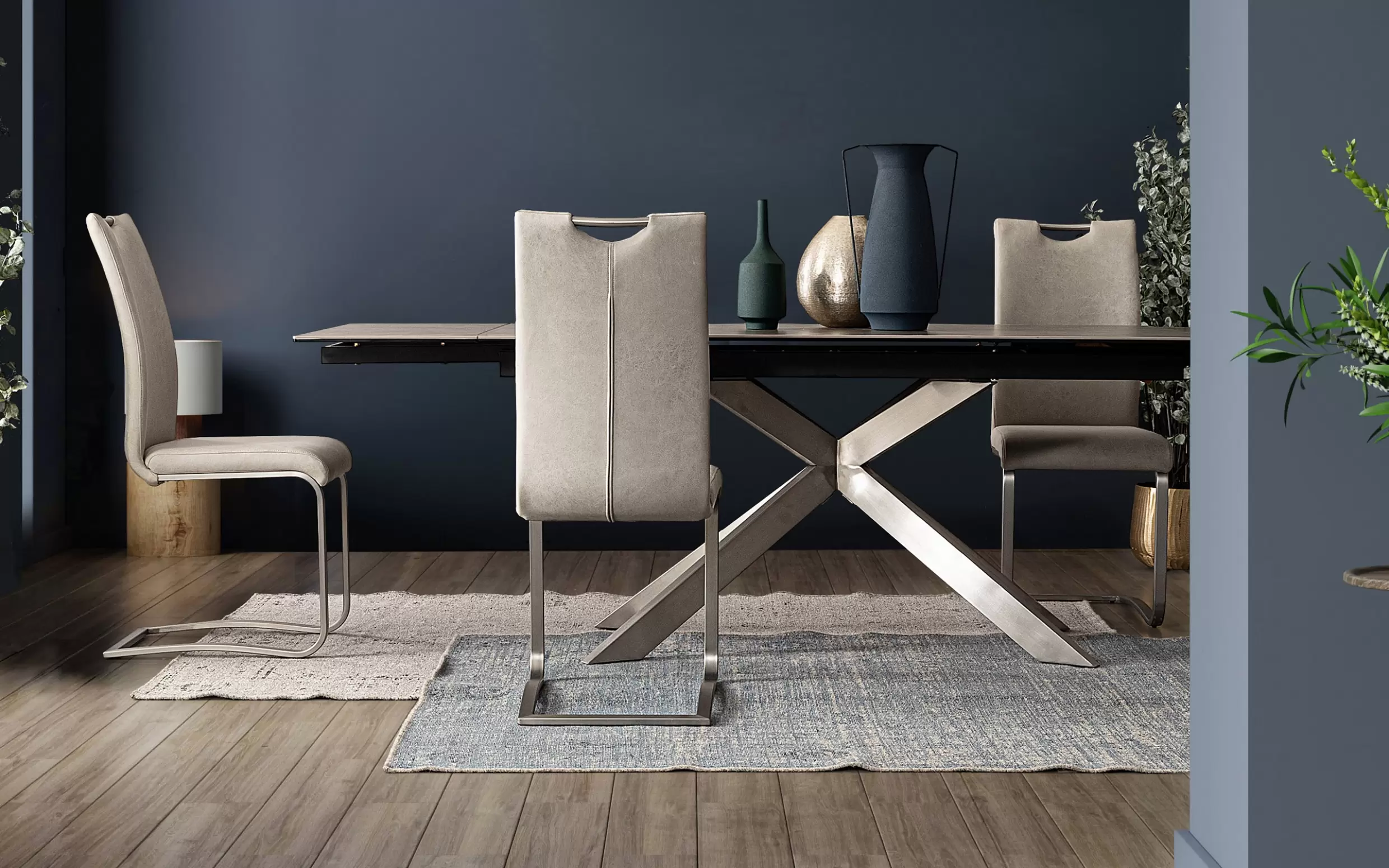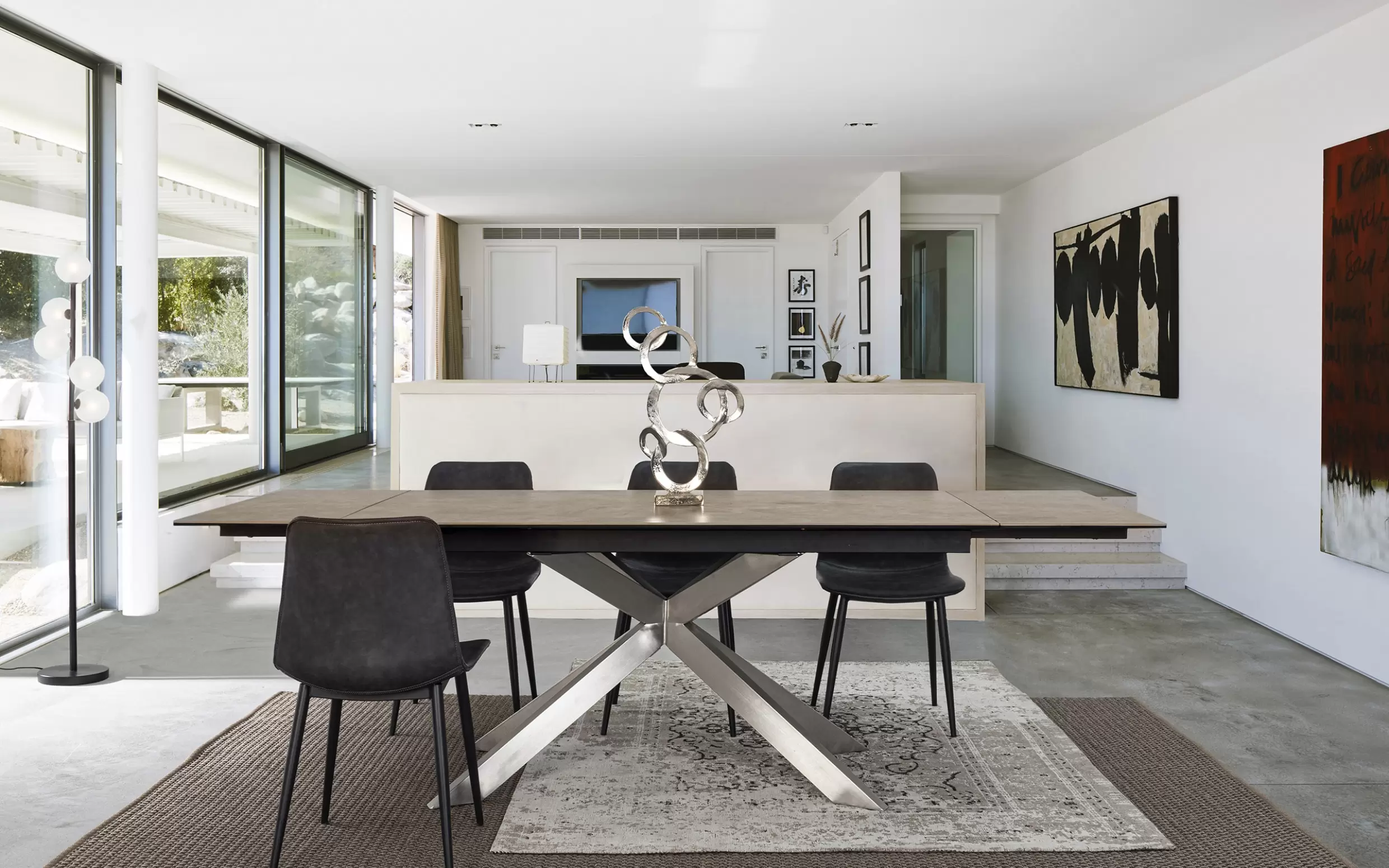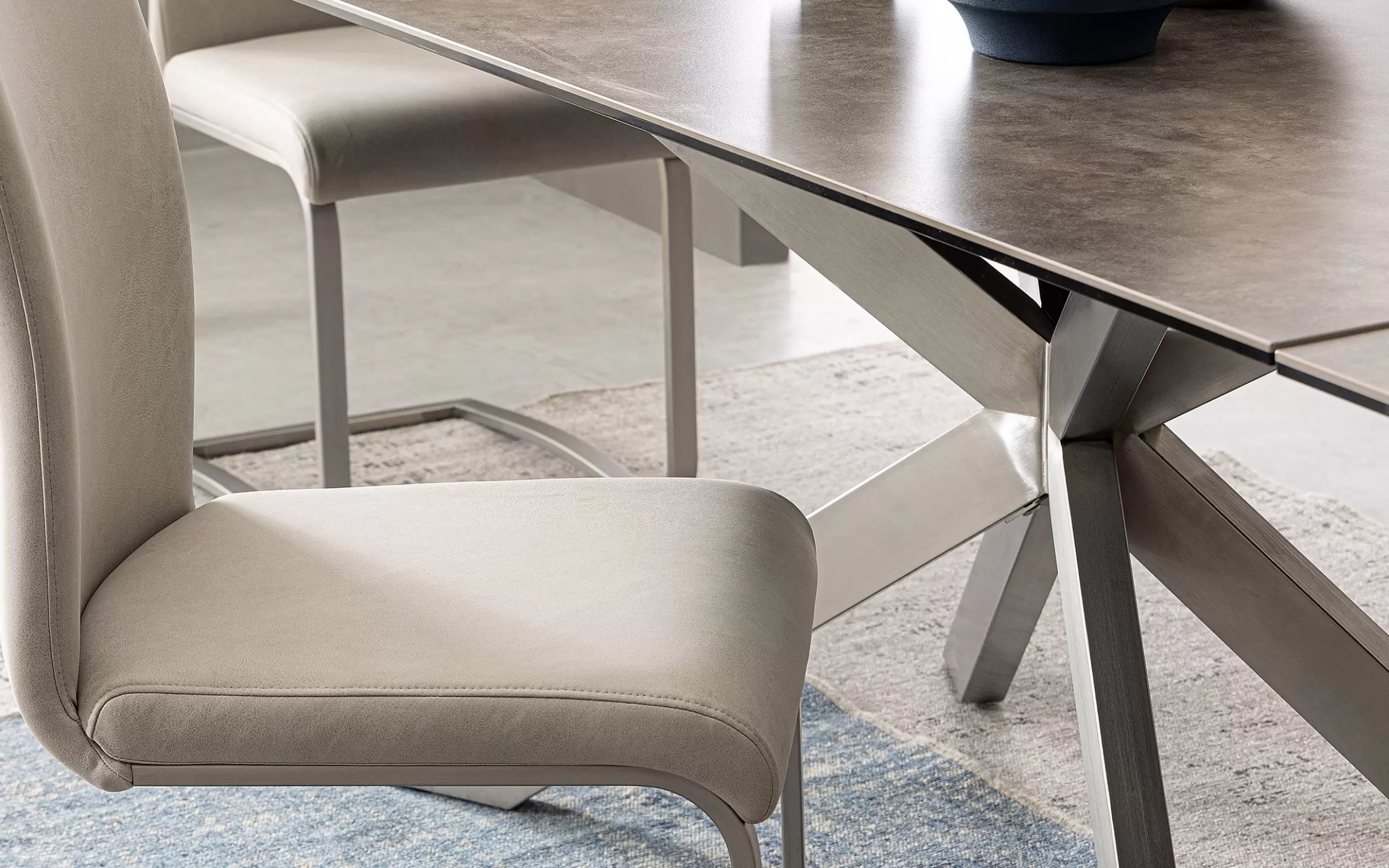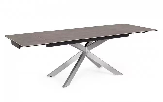 Stół ARZACHEL 160–240×90 to elegancki i praktyczny mebel, który idealnie wpisuje się w nowoczesne wnętrza. Jego stabilna konstrukcja opiera się na ramie ze stali nierdzewnej, zapewniającej trwałość i odporność na korozję. Blat wykonany został z gresu ceramicznego o grubości 5 mm, wspartego szybą z hartowanego szkła o grubości 8 mm, co gwarantuje wyjątkową wytrzymałość. Dzięki funkcji rozkładania stół można łatwo powiększyć z 160 do 240 cm, co sprawia, że jest idealny na rodzinne obiady i spotkania towarzyskie.
