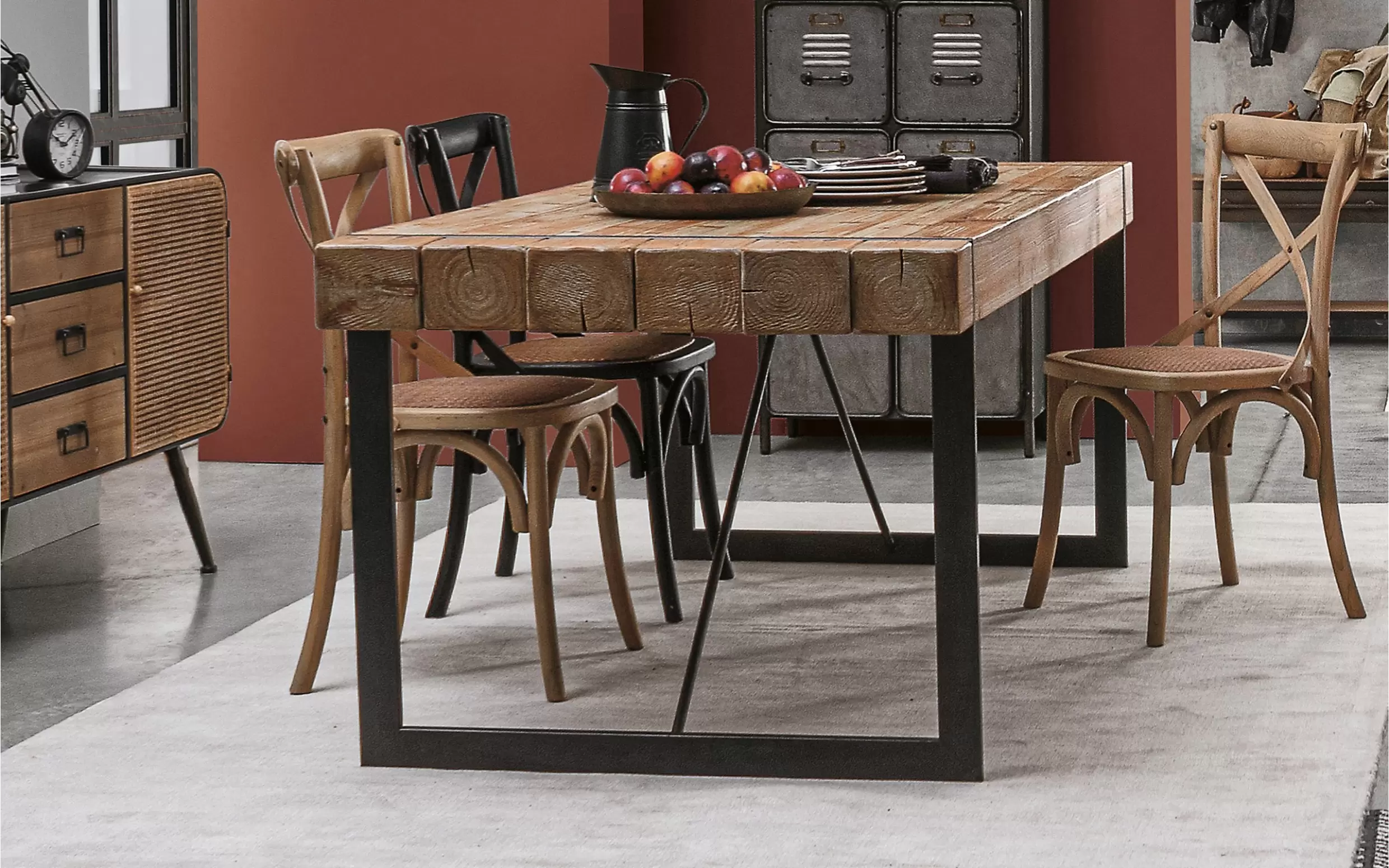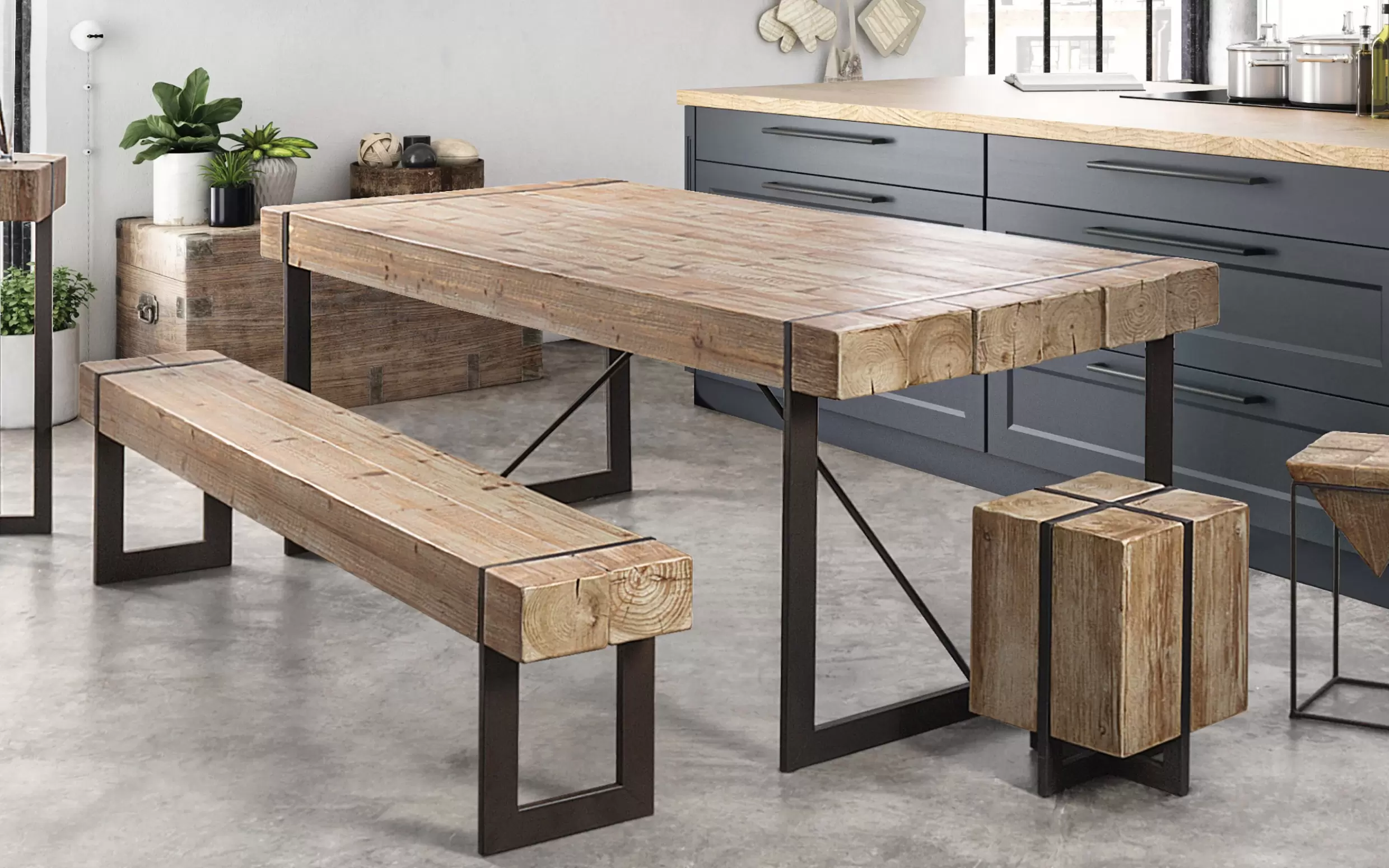 Stół GARRETT 200×90 to propozycja dla osób ceniących industrialny charakter wnętrz. Stabilna rama wykonana jest ze stali malowanej proszkowo, co zapewnia trwałość i wytrzymałość konstrukcji. Blat powstał z drewna jodłowego (nielitego), które nadaje całości naturalnego wyglądu. Stół doskonale sprawdzi się w jadalni, kuchni lub przestrzeni loftowej, tworząc wygodne miejsce do wspólnych posiłków i spotkań.