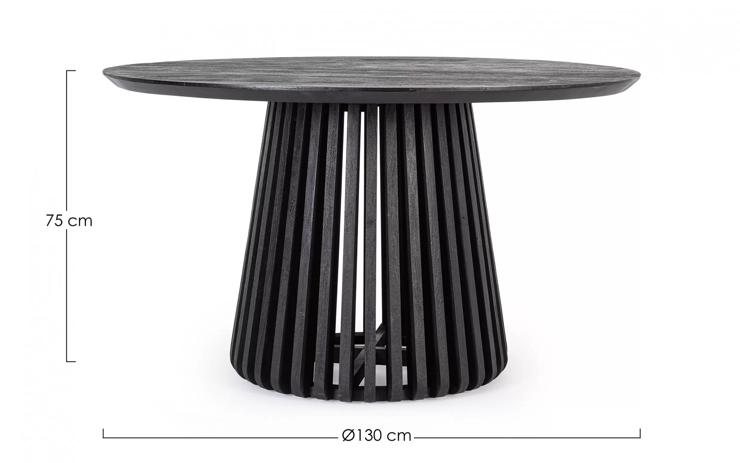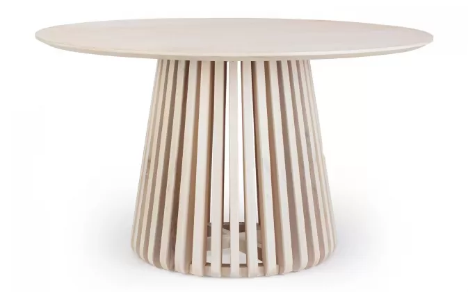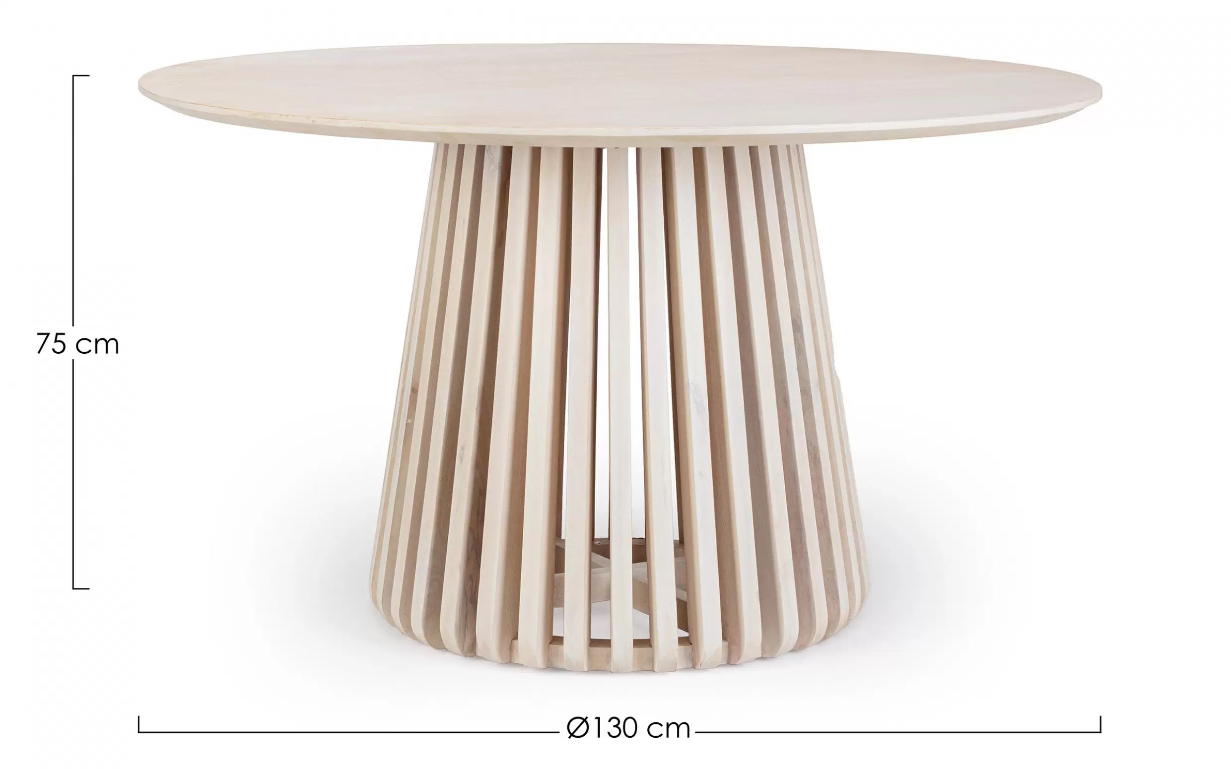 Stół ODION Ø130 to propozycja dla tych, którzy cenią połączenie elegancji i naturalnego drewna. Rama wykonana z litego mango, pokryta wykończeniem nitrocelulozowym, nadaje stołowi wyrazistego charakteru. Średnica Ø130 cm i wysokość 75 cm pozwalają na komfortowe użytkowanie przez 4-6 osób.