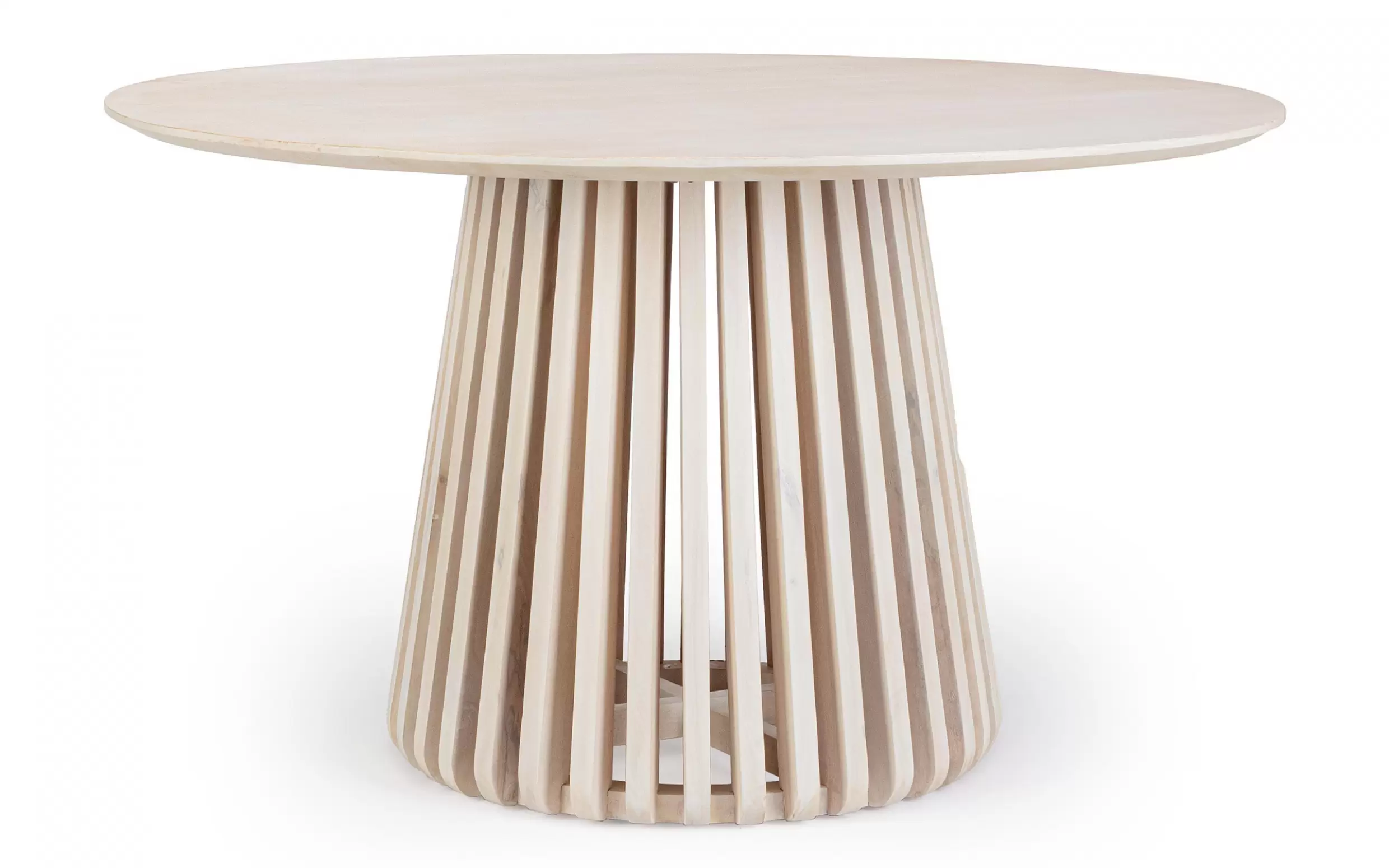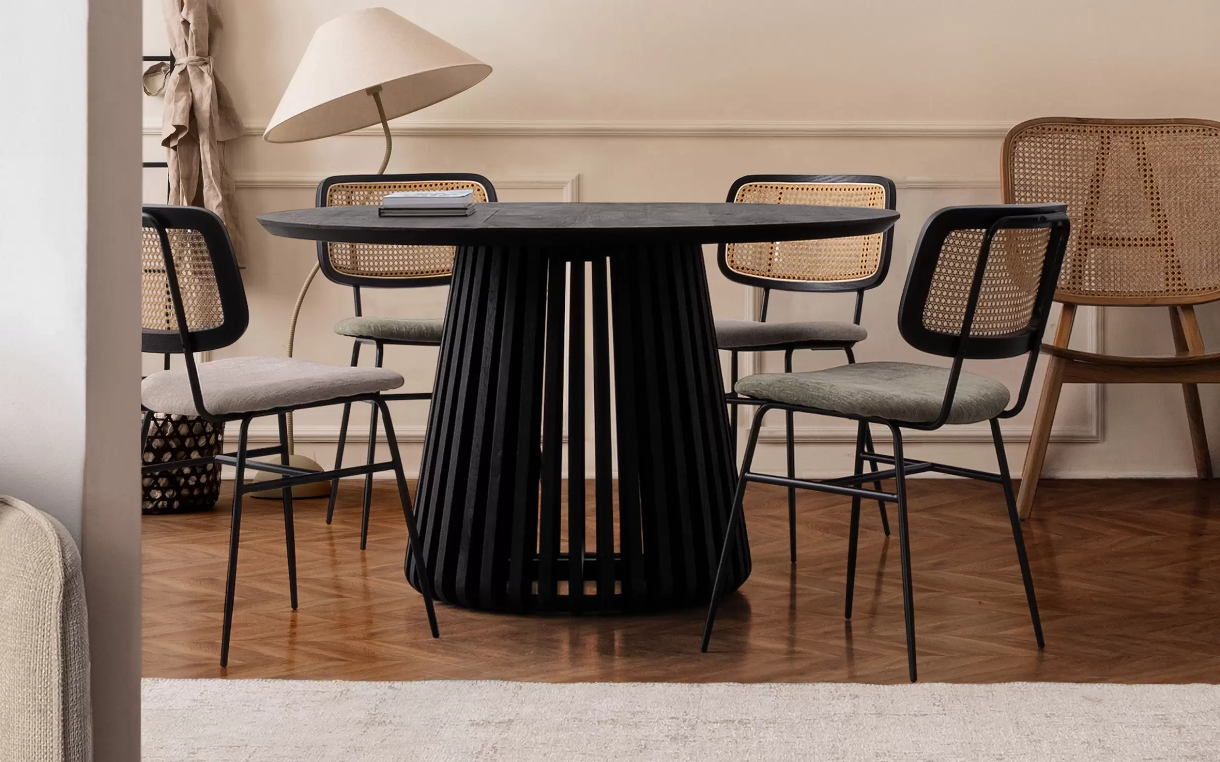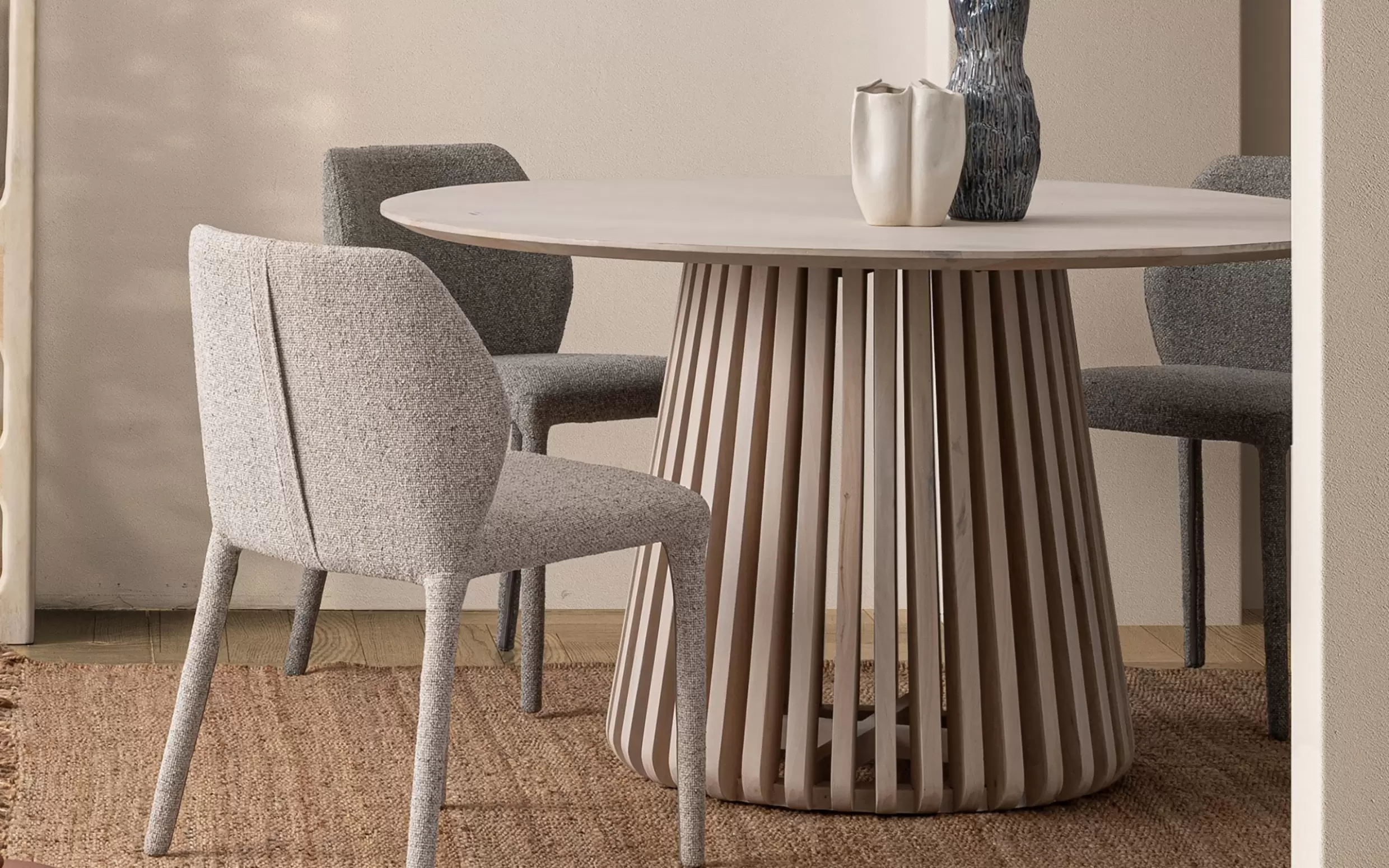 Stół ODION Ø130 to propozycja dla tych, którzy cenią połączenie elegancji i naturalnego drewna. Rama wykonana z litego mango, pokryta wykończeniem nitrocelulozowym, nadaje stołowi wyrazistego charakteru. Średnica Ø130 cm i wysokość 75 cm pozwalają na komfortowe użytkowanie przez 4-6 osób.