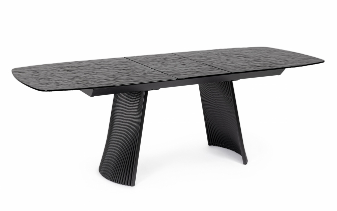 Stół OLIVER 180–220×90 to elegancki mebel, który łączy nowoczesny design ze szlachetnością szkła. Blat wykonany z hartowanego szkła o grubości 10 mm zachwyca efektem groszkowania (bush hammered), który nadaje mu unikalną strukturę i wygląd. Stabilne nogi ze stali malowanej proszkowo w technologii epoksydowej zapewniają trwałość i solidność. Dzięki możliwości rozsunięcia blatu z 180 do 220 cm, stół jest idealnym rozwiązaniem do spotkań rodzinnych i towarzyskich.
