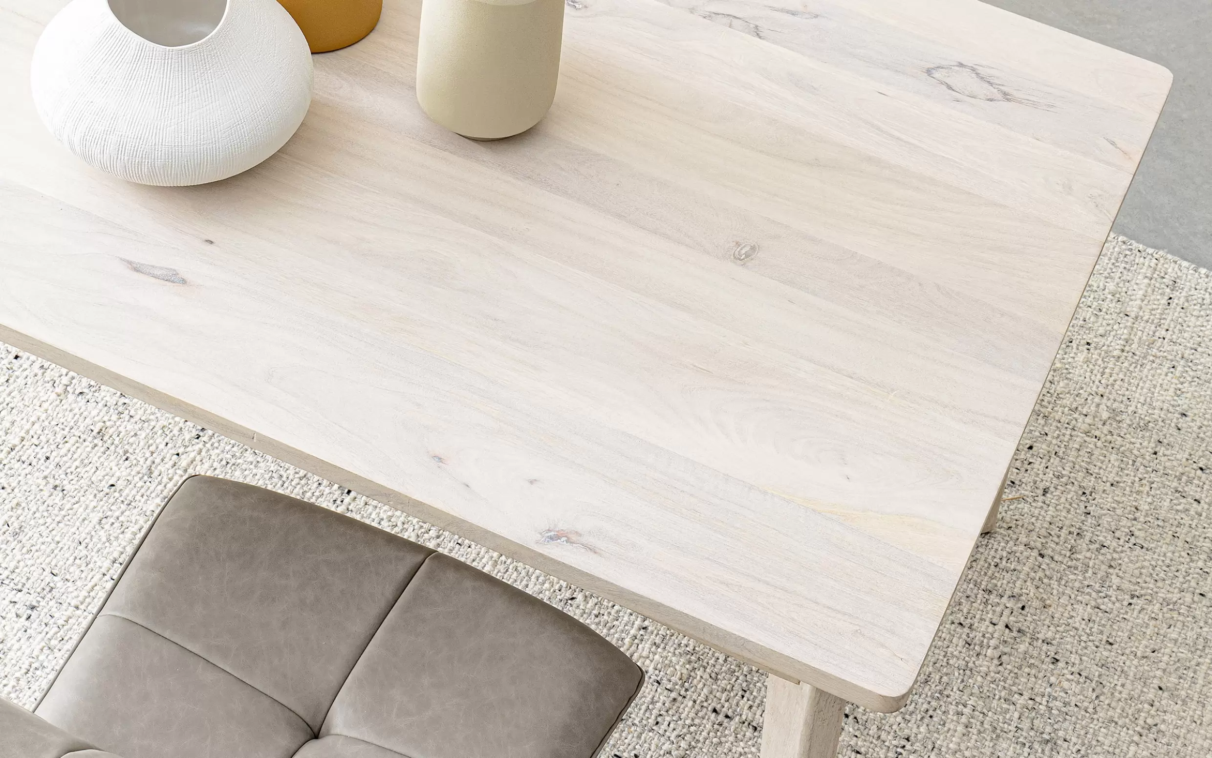 Stół SAHANA 173×90 to elegancka i praktyczna propozycja do jadalni lub salonu. Wykonany z litego drewna mango, wyróżnia się wykończeniem w odcieniu white wash, które nadaje mu lekkości i delikatnego charakteru. Solidna konstrukcja i klasyczna forma sprawiają, że stół doskonale komponuje się zarówno z aranżacjami nowoczesnymi, jak i rustykalnymi. Idealny do codziennych posiłków i spotkań w gronie rodziny.