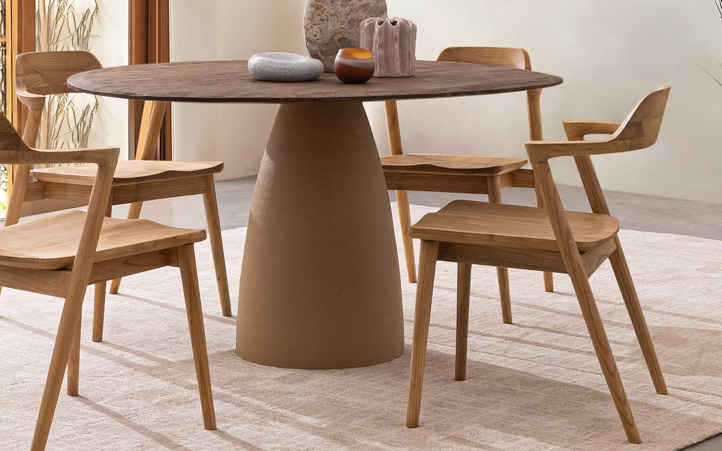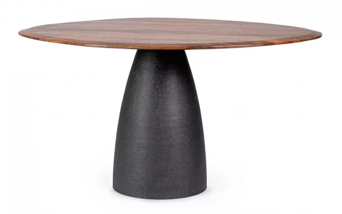 Solidna podstawa ze stali malowanej proszkowo z efektem materiałowym nadaje całości stabilności i nowoczesnego charakteru. Stół świetnie sprawdzi się w jadalni, salonie lub przestrzeni loftowej, tworząc centralny punkt wnętrza.