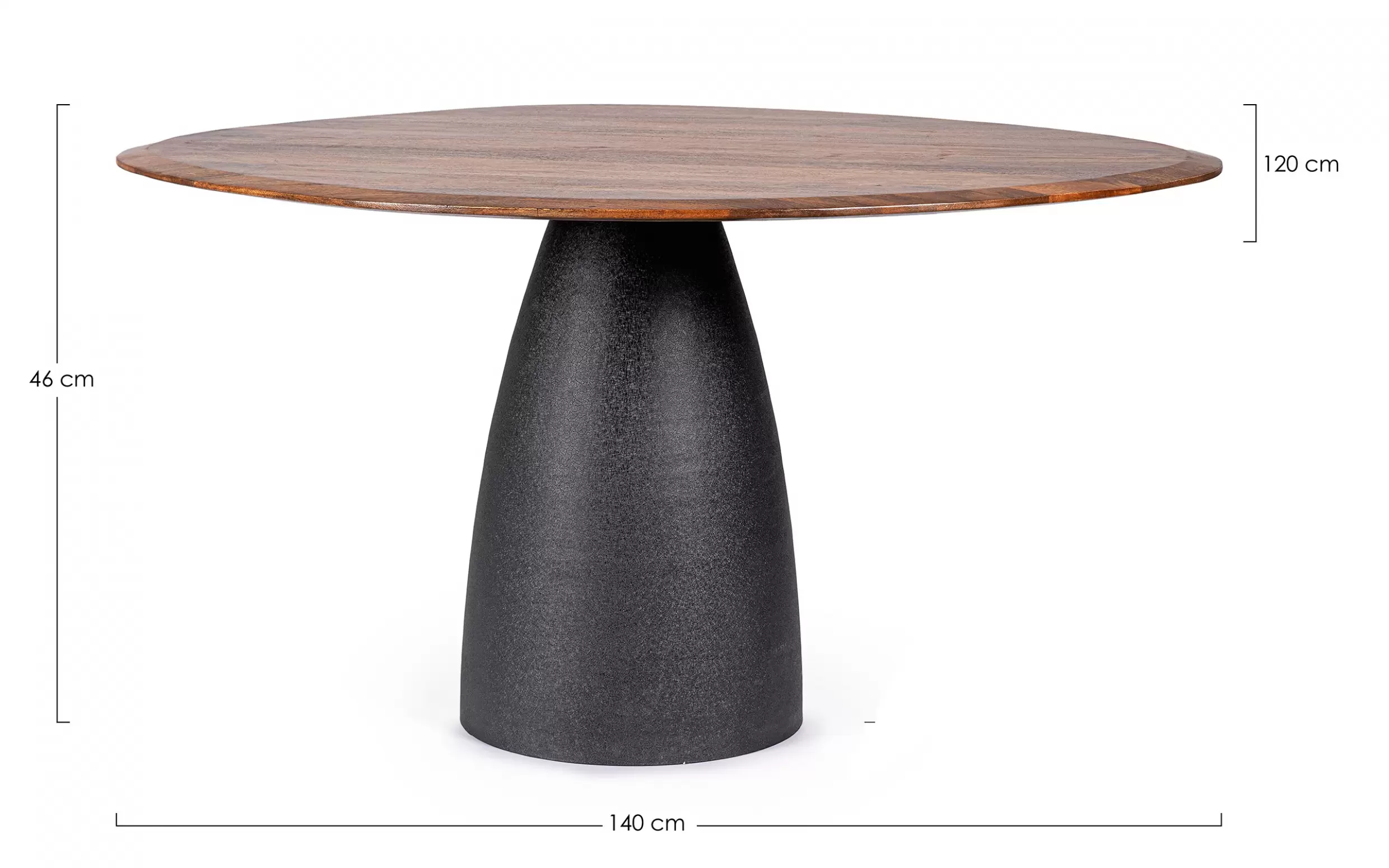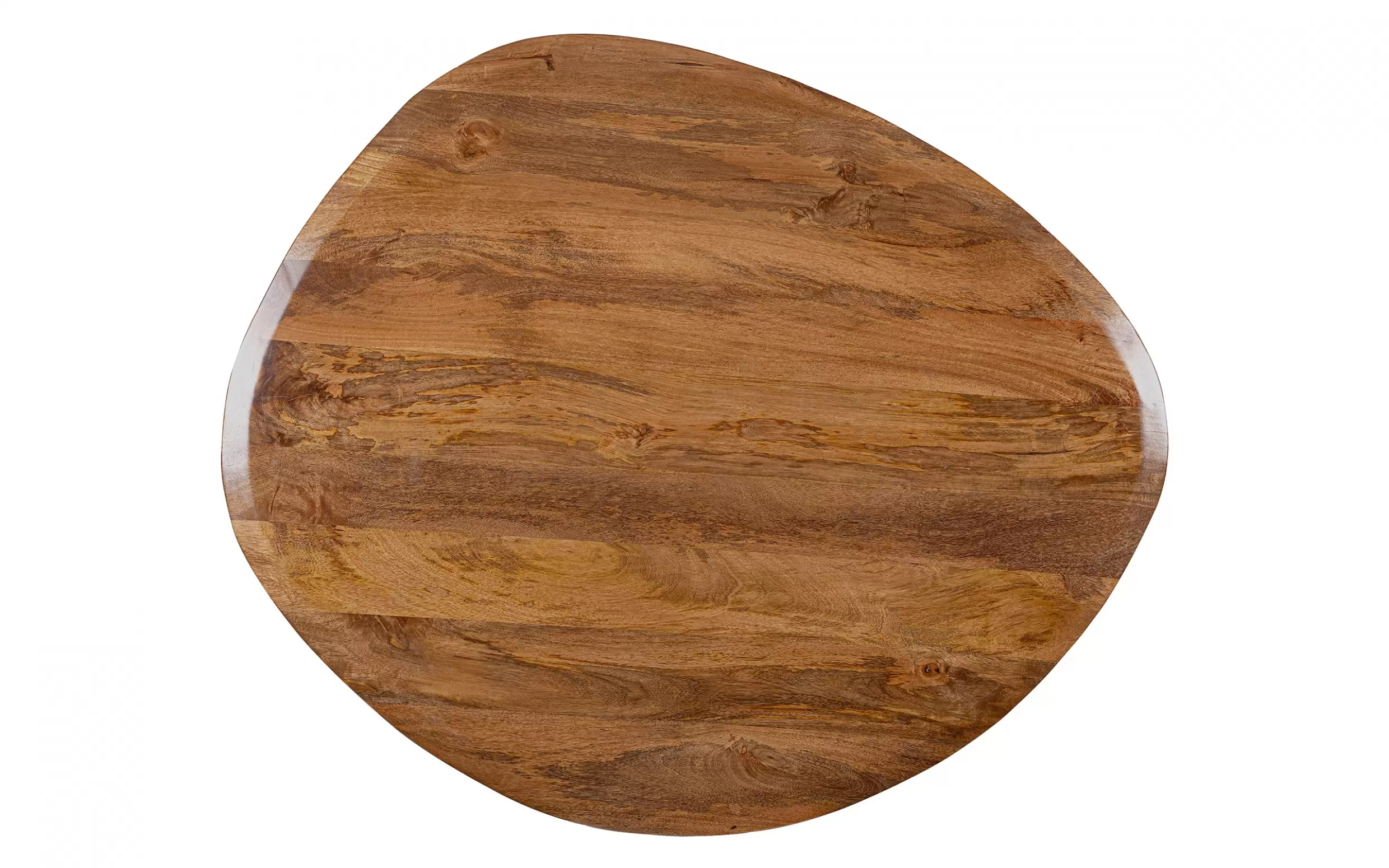 Stół STANLEY 140×120 to oryginalny mebel, który wyróżnia się niepowtarzalnym charakterem. Blat wykonano z drewna mango, zachowując jego naturalny, nieregularny kształt. Drewno wykończone zostało lakierem wodnym i zabezpieczone powłoką nitrocelulozową, co podkreśla jego usłojenie i chroni przed uszkodzeniami. Każdy egzemplarz jest unikatowy dzięki ręcznemu wykonaniu i naturalnym właściwościom drewna.