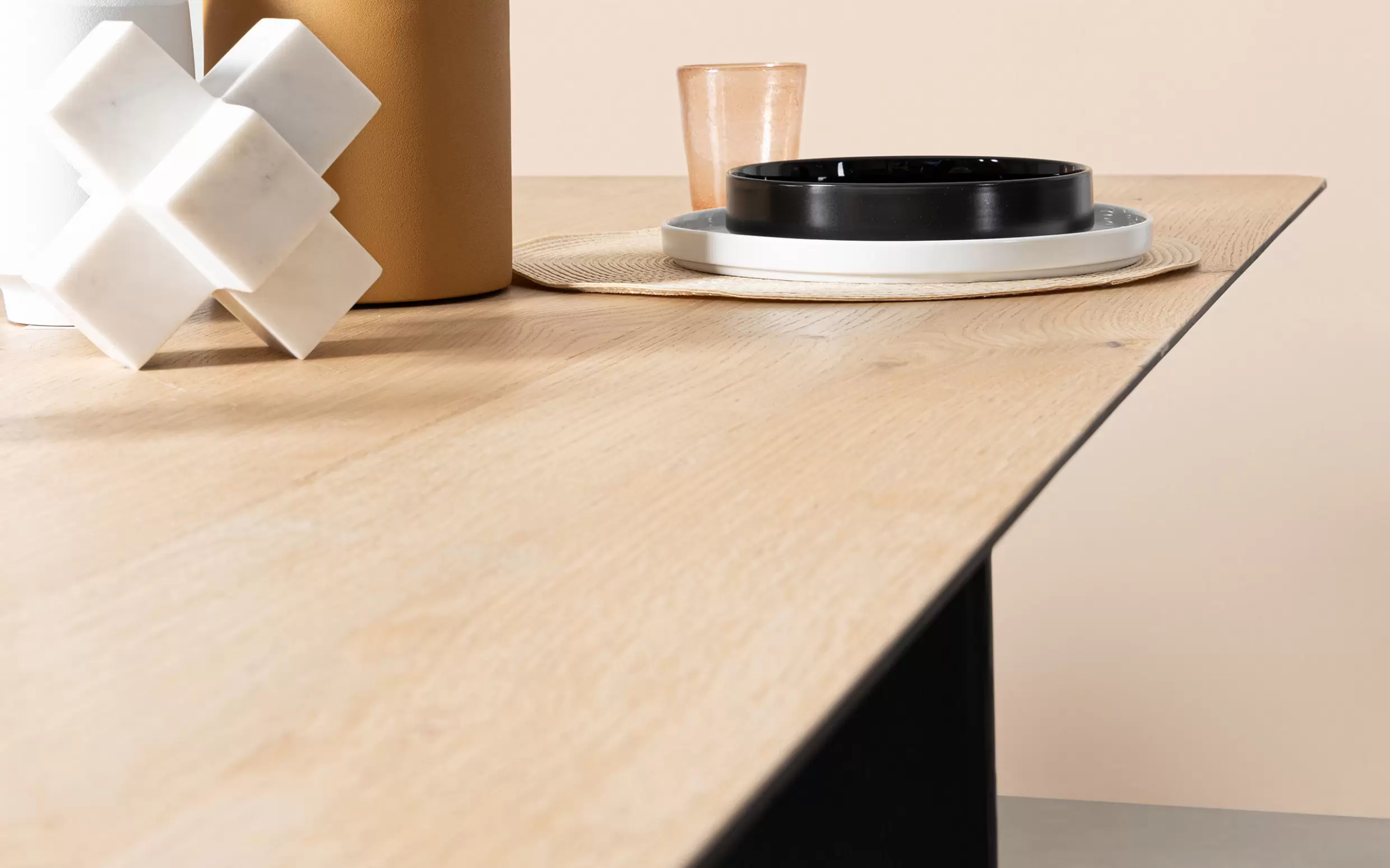 Stół STANWOOD 190×90 to elegancki mebel do jadalni i salonu, który łączy naturalny wygląd dębu z solidną konstrukcją. Blat fornirowany dębem wykończono wodną bejcą, co podkreśla piękno usłojenia drewna, a nogi zabezpieczono wytrzymałym lakierem nitrocelulozowym. Prosta forma i klasyczny charakter sprawiają, że stół doskonale komponuje się z różnymi aranżacjami wnętrz.