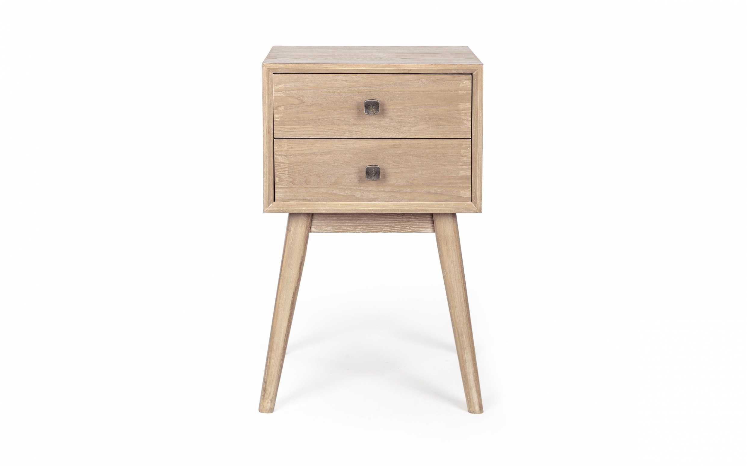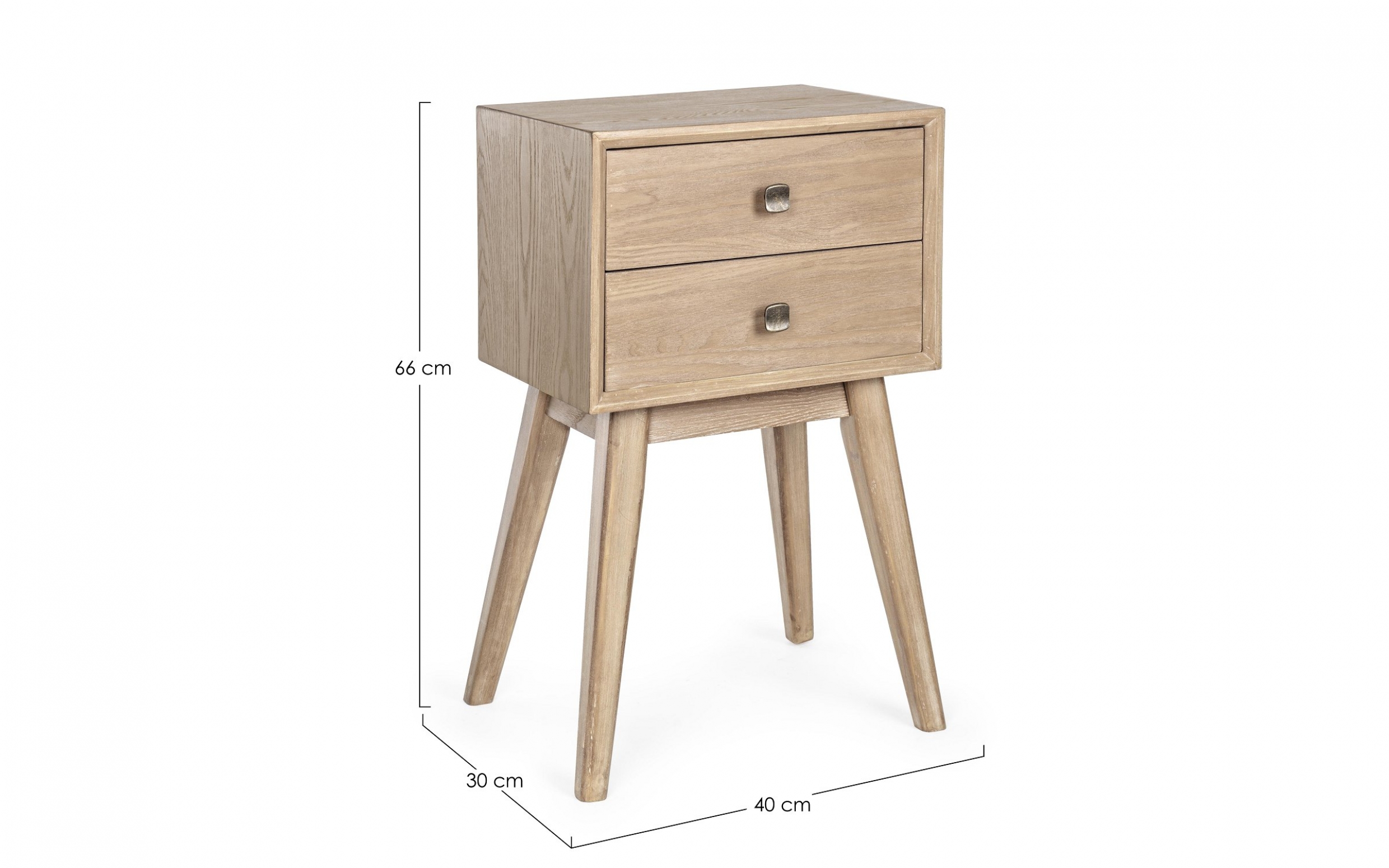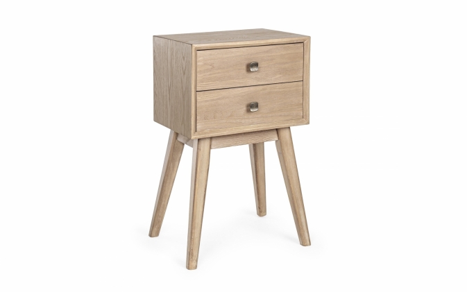 Szafka ALANNIS 2DR to kompaktowy mebel o wysokości 66 cm. Wykonana z drewna jodły i MDF, posiada 2 szuflady z stalowymi uchwytami. Wykończenie wodne podkreśla naturalny wygląd materiałów. Idealna do mniejszych pomieszczeń.